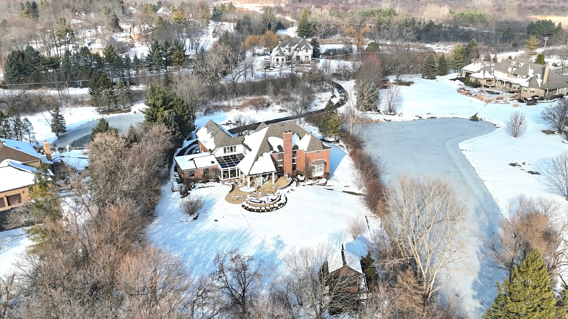 An Architectural Estate Designed for Elevated Living! Privately set on over 2 pristine acres within the coveted Grey Cliffe Estates, this exceptional contemporary estate offers a rare blend of architectural sophistication, resort-style amenities, and natural serenity. Set well back from the road behind a mature vegetation buffer, the home is approached by a long, winding driveway with a circular motor court, creating an immediate sense of privacy, presence, and arrival. Bordering a tranquil shared pond, the property uniquely includes private sandy beach access, offering a true four-season lifestyle-ideal for kayaking, canoeing, fishing, ice skating, or simply enjoying peaceful water views. Professionally landscaped grounds feature an irrigation system and timed landscape lighting, enhancing the park-like setting and complementing the surrounding luxury estates. Spanning approximately 8,708 square feet with nearly 6,000 square feet above grade, the residence showcases dramatic ceiling heights, expansive sightlines, and walls of glass throughout. A desirable southern rear exposure fills the home with natural light, creating an open yet warm living environment that balances architectural impact with everyday comfort. The architectural centerpiece is the breathtaking two-story great room, featuring soaring ceilings, a gas fireplace, custom built-ins, and a striking 240-gallon saltwater aquarium integrated as a living work of art. This space flows seamlessly into the chef's kitchen, appointed with extensive white cabinetry, generous counter space, a substantial center island with Thermador cooktop, double ovens, Sub-Zero refrigerator/freezer, and breakfast bar seating. A sunlit breakfast area offers backyard views and access to the covered patio, while a separate formal dining room provides an elegant setting for entertaining. An atrium-style family room with a full wall and ceiling of glass creates a dramatic indoor-outdoor connection rarely found. The first-floor primary suite is a private retreat featuring custom walk-in closets and a spa-inspired bath with dual vanities, soaking tub, and full-body glass and tile shower. A first-floor office with custom built-ins and an updated powder room complete the main level. The second floor features a glass-railed gallery overlooking the living space below, spacious secondary bedrooms including a Jack-and-Jill arrangement, and an additional en-suite bedroom. A separate second-floor wellness retreat, accessed by its own stairwell, includes heated floors, steam room and shower, sauna, full bath, bonus room ideal for yoga or meditation, and a sitting area-perfect for wellness-focused living. The finished lookout basement is designed as an extension of the home's entertaining and lifestyle spaces, offering a sprawling recreation area ideal for gatherings, game nights, or casual lounging. A private theater room creates an immersive viewing experience, while the wet bar, fitness room, fifth bedroom, and full bath provide comfort and versatility for guests. A temperature-controlled wine cellar and generous storage complete the lower level. Additional highlights include an oversized heated 5-car garage, large mudroom and laundry area, plantation shutters, multiple zoned HVAC systems, whole-house generator, reverse osmosis water system, integrated security system, and whole-home audio. Outdoor living features a covered patio with built-in grill, stone paver patio with firepit, expansive lawn space, and a custom elevated fort/playhouse with electricity. Highly regarded Barrington schools! Close proximity to the South Barrington Conservancy and Stillman Nature Center. Despite its secluded, estate-like setting, the home is just minutes from I-90, the Arboretum of South Barrington, premier shopping, dining, entertainment, and everyday conveniences. This is not simply a home-it is a destination estate, thoughtfully designed for those who value architecture, wellness, entertaining, and nature.