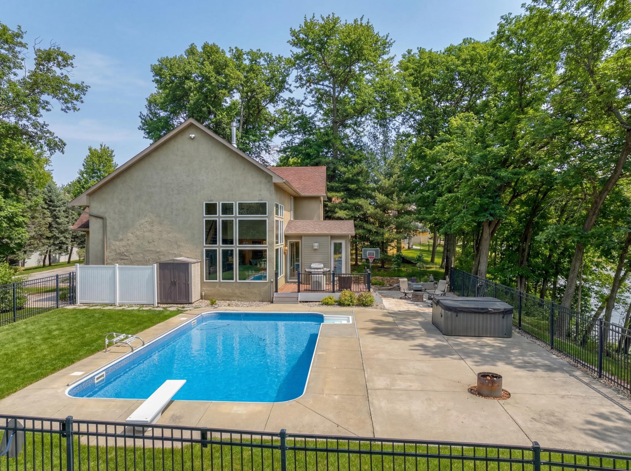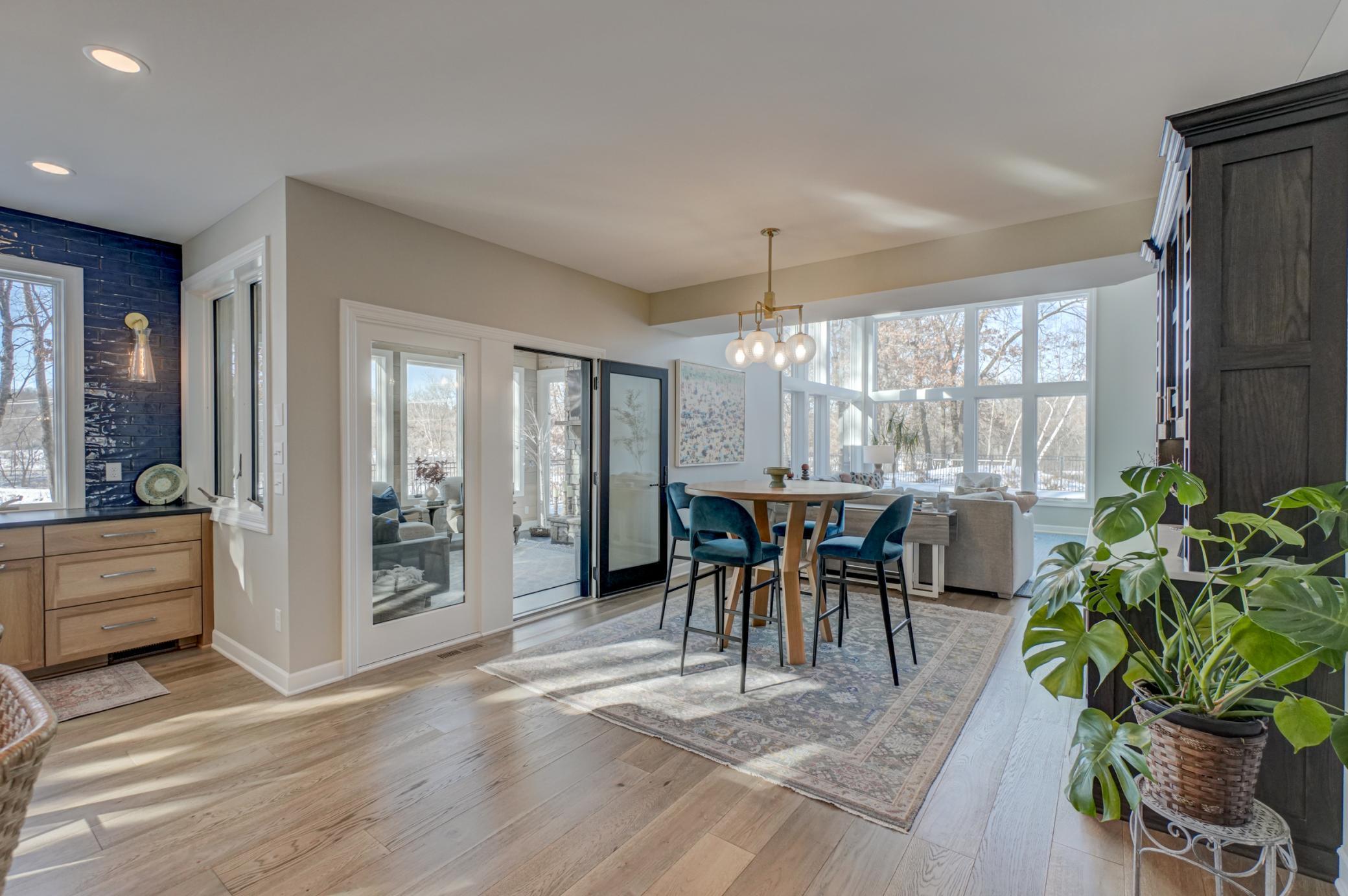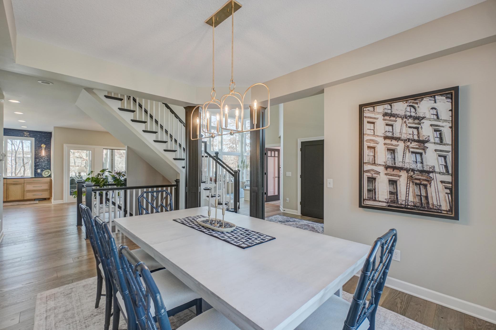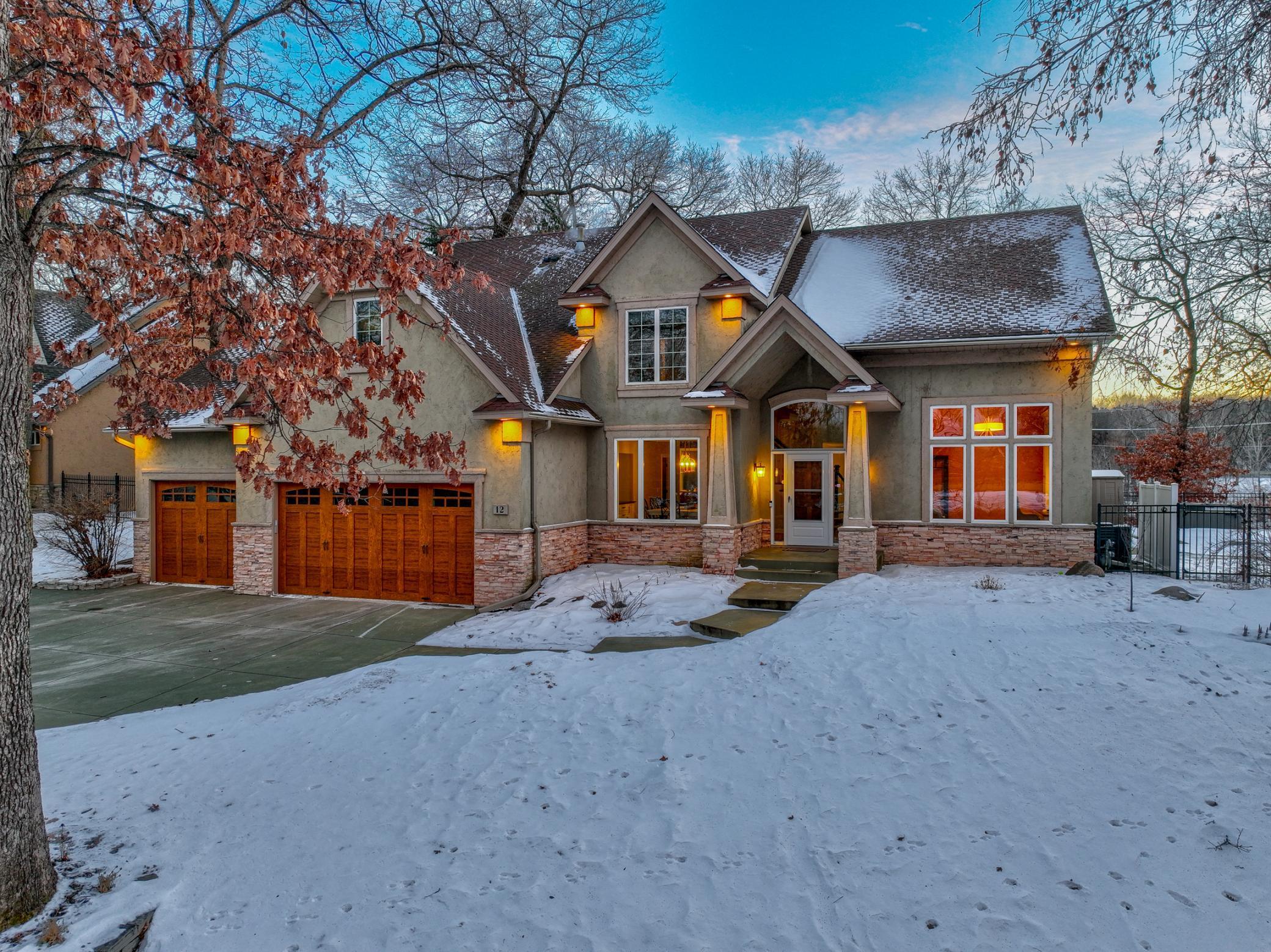Welcome to 12 Forest Trail, an exceptional home offering serene water views from nearly every window. Recently redesigned by Eminent Design and renovated by Moser Homes, this residence showcases timeless design, quality craftsmanship, and finishes that truly live better than new construction. The two-story living room features walls of windows and striking floor-to-ceiling gas fireplace. The kitchen includes high-end appliances, custom white oak and painted cabinetry, large island and quartz countertops, wide-plank flooring, and an oversized window at the sink with water views. A walk-in pantry and mudroom with laundry with custom cabinetry are conveniently located nearby. A sunroom addition with cozy gas fireplace and in-floor heat connects to the deck and pool, creating a comfortable year-round retreat. Formal and informal dining spaces and a private office complete the main level. Upstairs, the primary suite offers a spa-like bath with walk in shower, large closet, and private washer/dryer. Three additional bedrooms and a full bath complete the level. The lower level includes an entertainment area, two bedrooms, and new bath with in floor heat. Nearly every surface has been expertly touched, including gorgeous custom lighting, new carpet, trim, doors, hardware. Additional features include irrigation, heated garage, and heated driveway and 50-year shingled roof new in 2017. Set on nearly 1 acre, outdoor amenities include an in-ground pool, hot tub, sport court/basketball area, and private pond ideal for year-round recreation. Located in the heart of Mahtomedi, this rare property offers unparalleled privacy and recreation. A truly remarkable property where design, quality, and livability come together in a most exceptional offering.