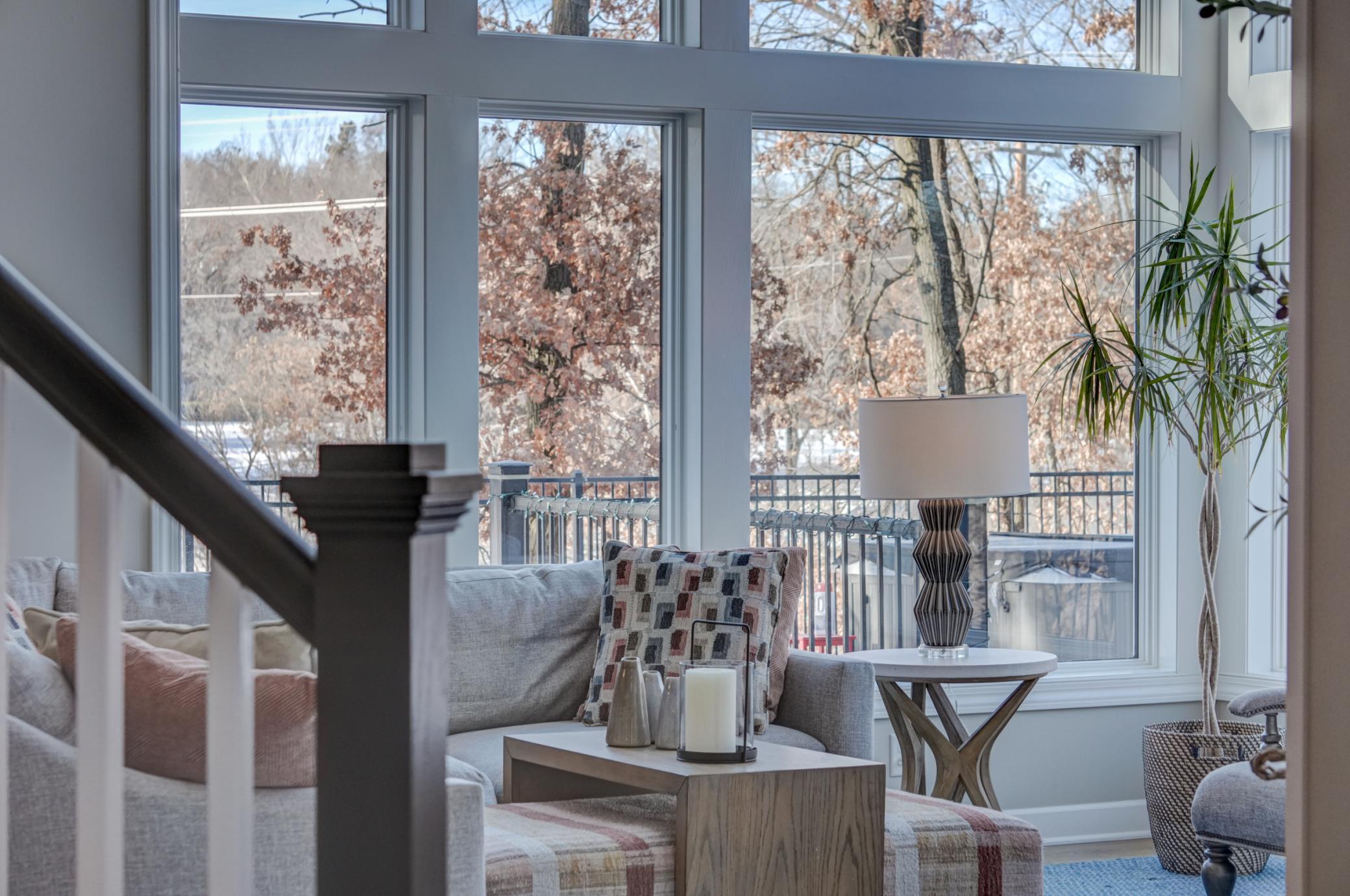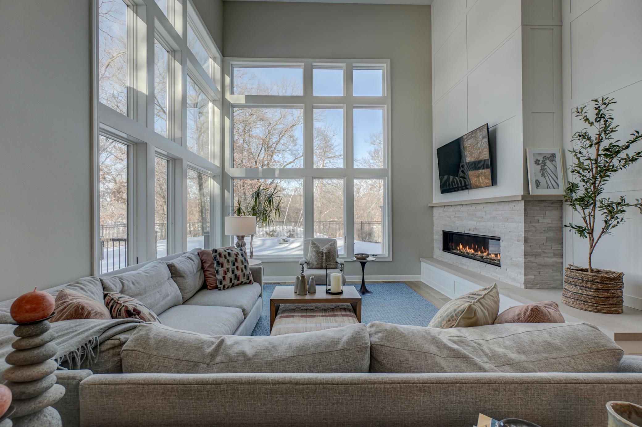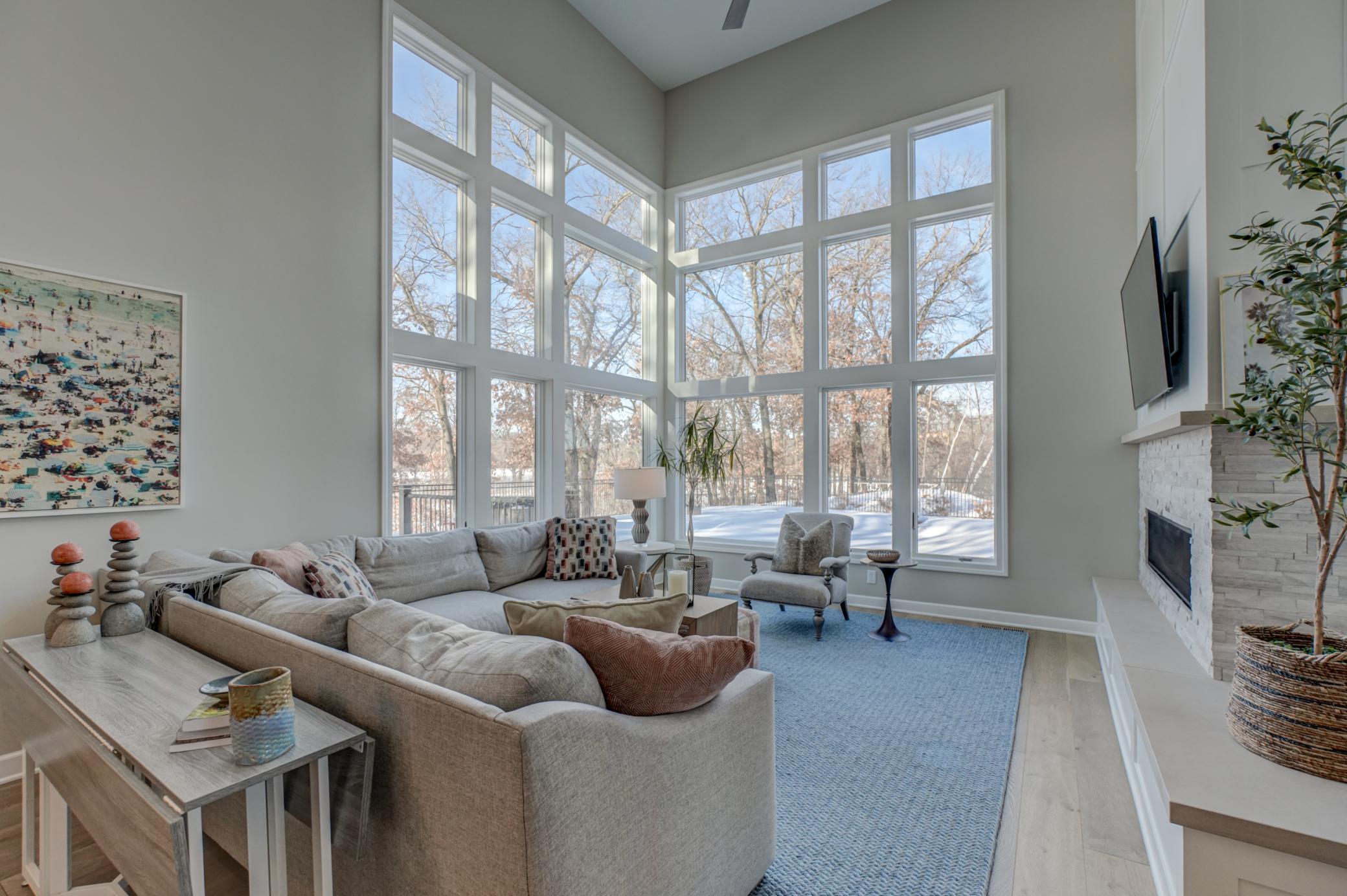 Welcome to 12 Forest Trail, an exceptional home offering serene water views from nearly every window. Recently redesigned by Eminent Design and renovated by Moser Homes, this residence showcases timeless design, quality craftsmanship, and finishes that truly live better than new construction. The two-story living room features walls of windows and striking floor-to-ceiling gas fireplace. The kitchen includes high-end appliances, custom white oak and painted cabinetry, large island and quartz countertops, wide-plank flooring, and an oversized window at the sink with water views. A walk-in pantry and mudroom with laundry with custom cabinetry are conveniently located nearby. A sunroom addition with cozy gas fireplace and in-floor heat connects to the deck and pool, creating a comfortable year-round retreat. Formal and informal dining spaces and a private office complete the main level. Upstairs, the primary suite offers a spa-like bath with walk in shower, large closet, and private washer/dryer. Three additional bedrooms and a full bath complete the level. The lower level includes an entertainment area, two bedrooms, and new bath with in floor heat. Nearly every surface has been expertly touched, including gorgeous custom lighting, new carpet, trim, doors, hardware. Additional features include irrigation, heated garage, and heated driveway and 50-year shingled roof new in 2017. Set on nearly 1 acre, outdoor amenities include an in-ground pool, hot tub, sport court/basketball area, and private pond ideal for year-round recreation. Located in the heart of Mahtomedi, this rare property offers unparalleled privacy and recreation. A truly remarkable property where design, quality, and livability come together in a most exceptional offering.