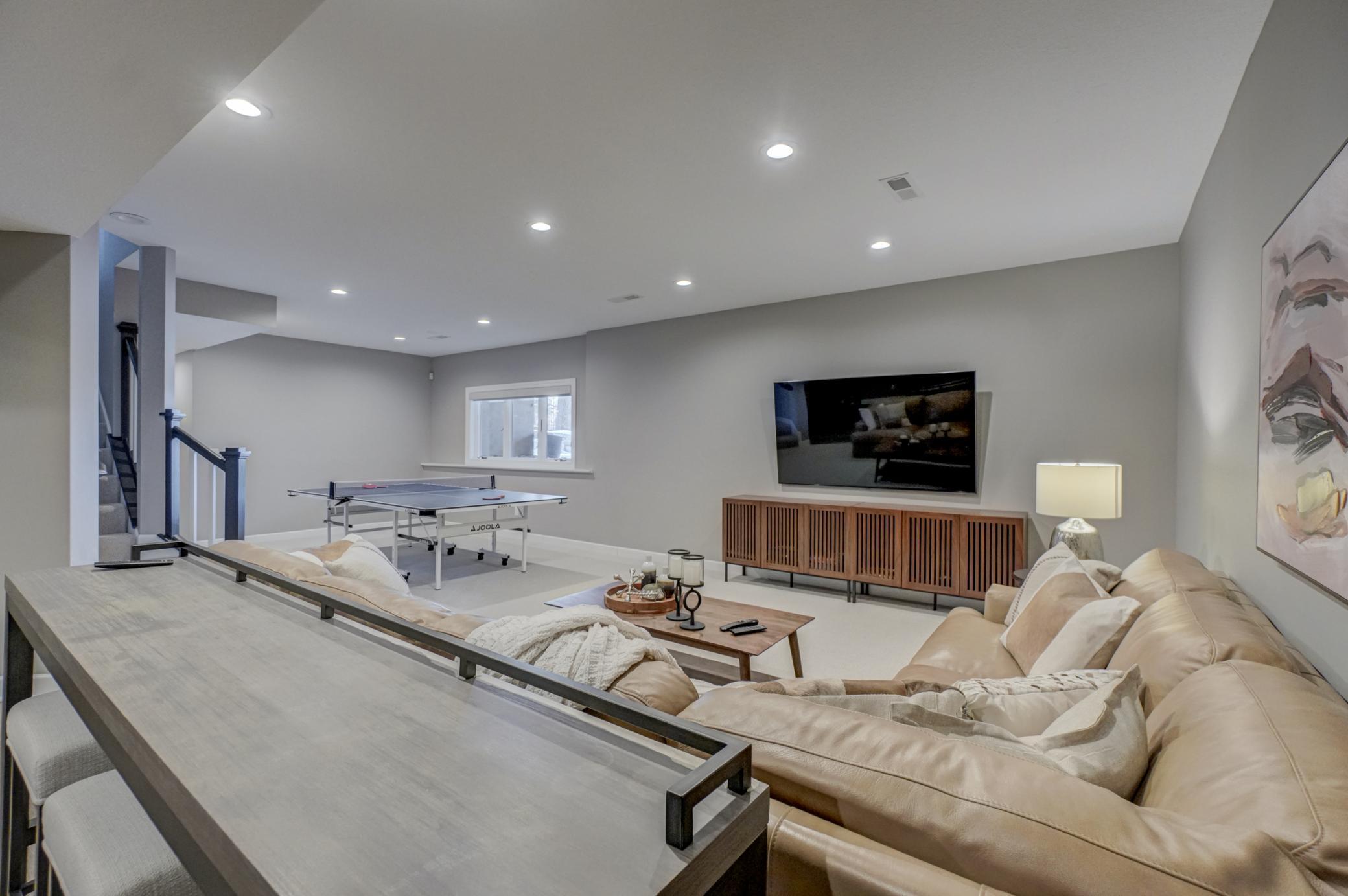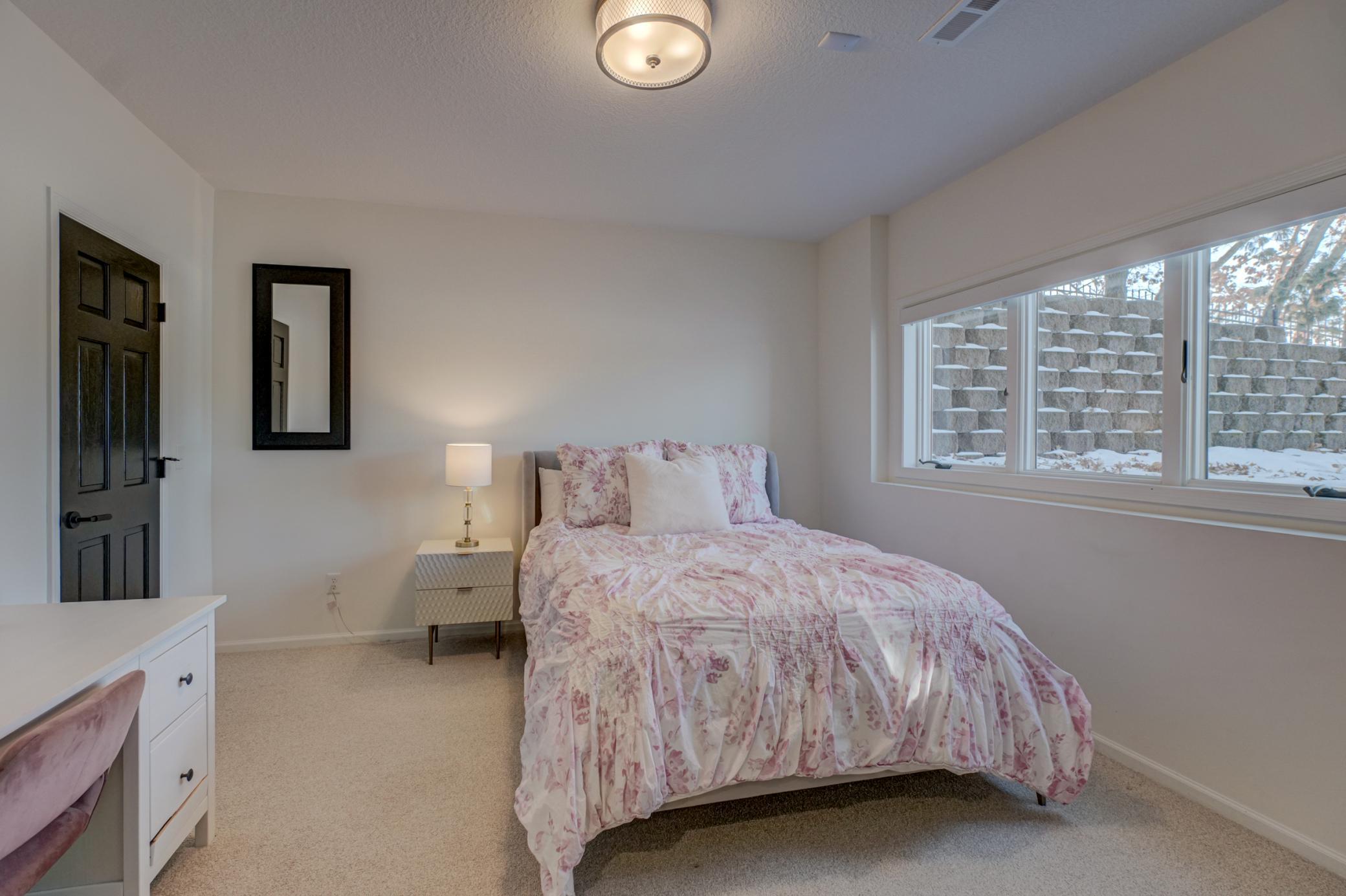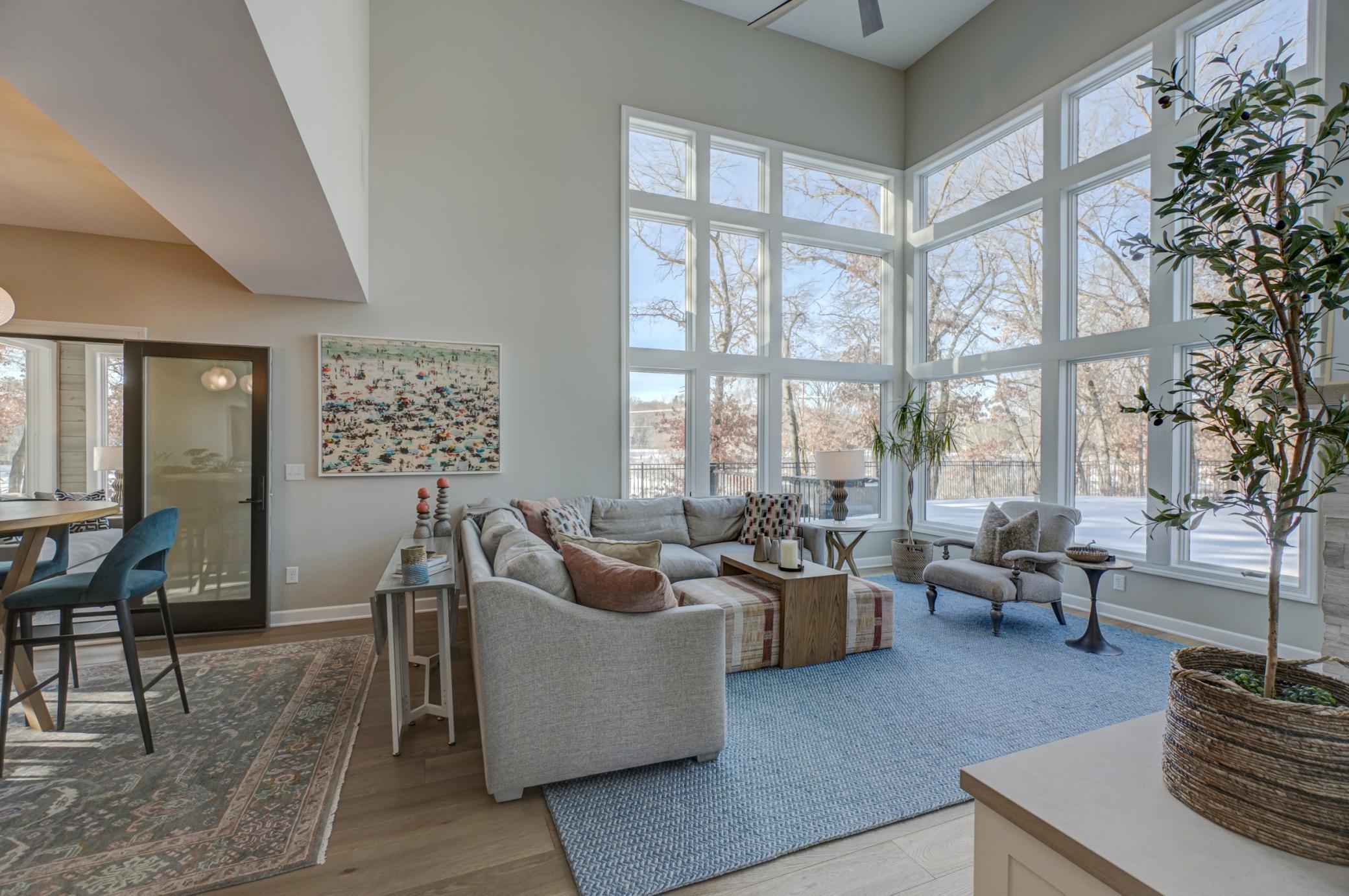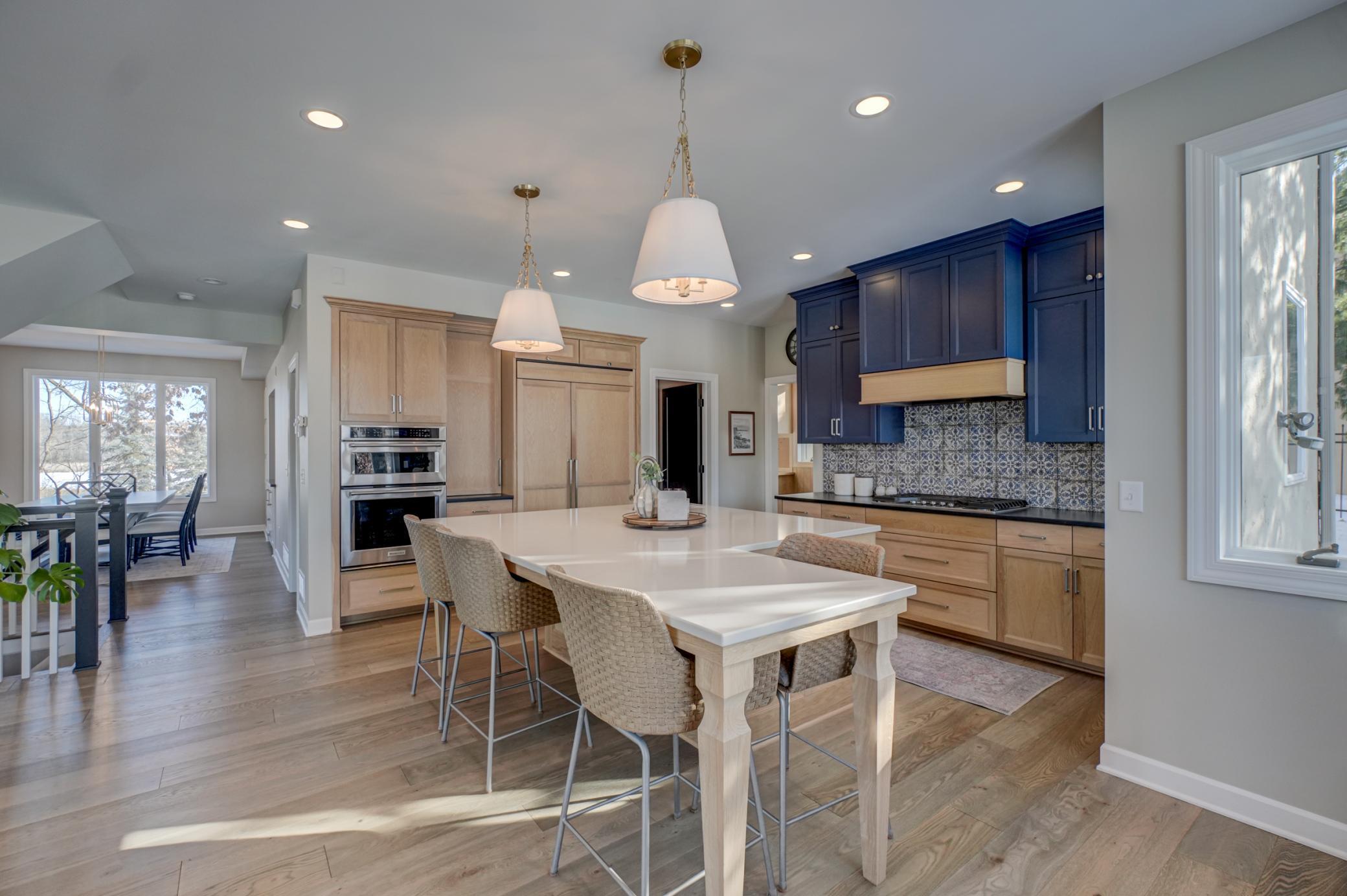 Welcome to 12 Forest Trail, an exceptional home offering serene water views from nearly every window. Recently redesigned by Eminent Design and renovated by Moser Homes, this residence showcases timeless design, quality craftsmanship, and finishes that truly live better than new construction. The two-story living room features walls of windows and striking floor-to-ceiling gas fireplace. The kitchen includes high-end appliances, custom white oak and painted cabinetry, large island and quartz countertops, wide-plank flooring, and an oversized window at the sink with water views. A walk-in pantry and mudroom with laundry with custom cabinetry are conveniently located nearby. A sunroom addition with cozy gas fireplace and in-floor heat connects to the deck and pool, creating a comfortable year-round retreat. Formal and informal dining spaces and a private office complete the main level. Upstairs, the primary suite offers a spa-like bath with walk in shower, large closet, and private washer/dryer. Three additional bedrooms and a full bath complete the level. The lower level includes an entertainment area, two bedrooms, and new bath with in floor heat. Nearly every surface has been expertly touched, including gorgeous custom lighting, new carpet, trim, doors, hardware. Additional features include irrigation, heated garage, and heated driveway and 50-year shingled roof new in 2017. Set on nearly 1 acre, outdoor amenities include an in-ground pool, hot tub, sport court/basketball area, and private pond ideal for year-round recreation. Located in the heart of Mahtomedi, this rare property offers unparalleled privacy and recreation. A truly remarkable property where design, quality, and livability come together in a most exceptional offering.