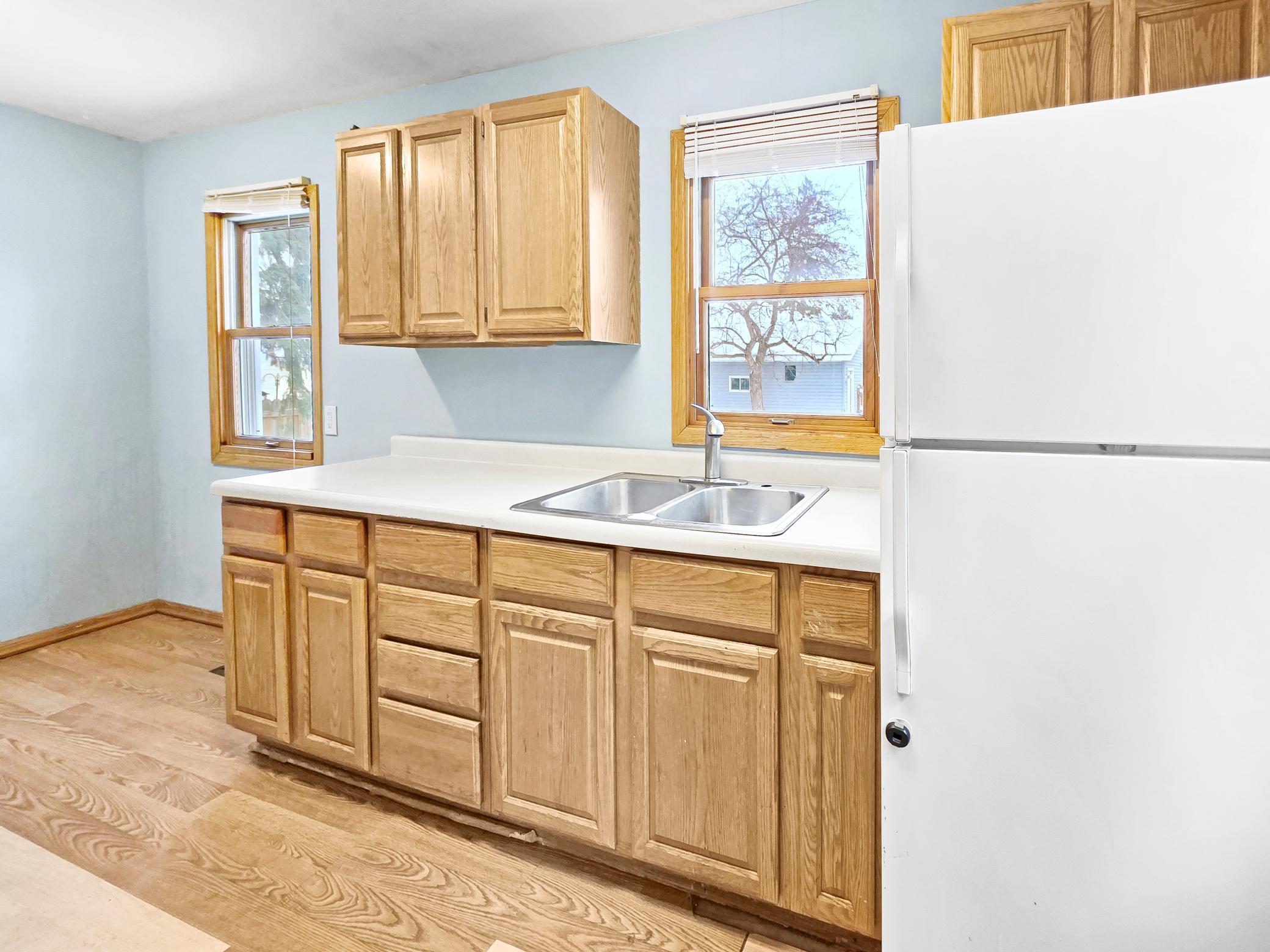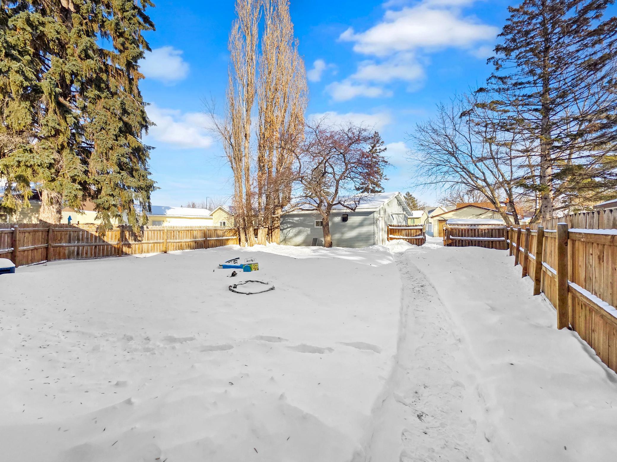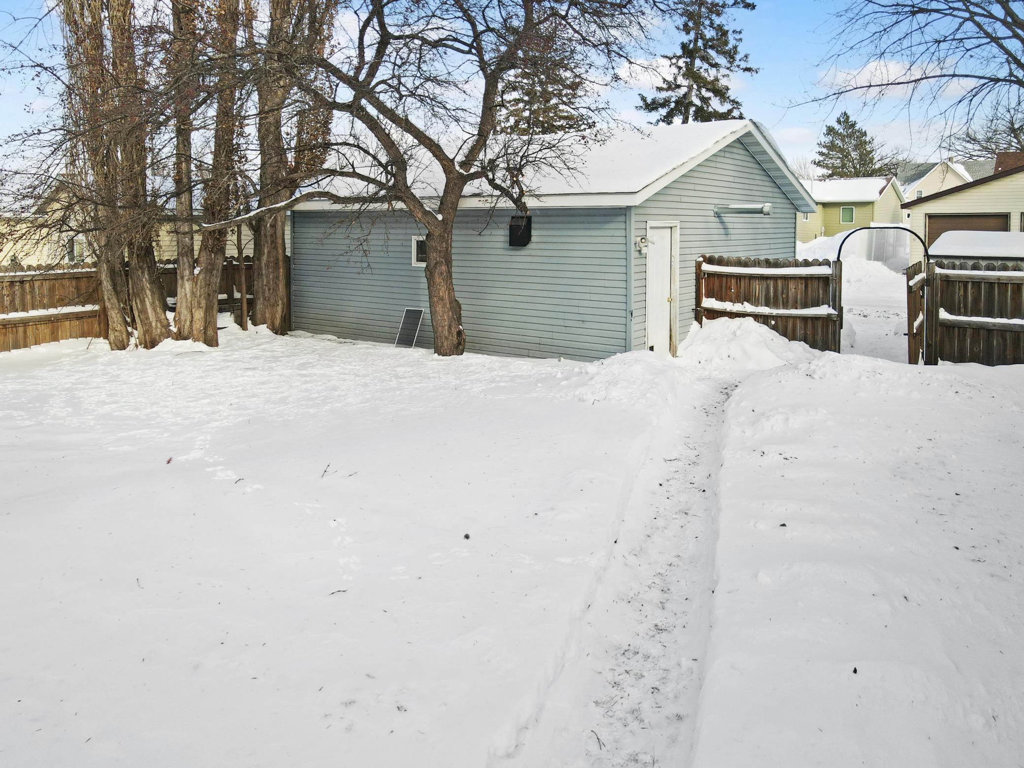 One-level single-family home offering approximately 784 finished square feet with two bedrooms and one full bathroom. The main floor includes a living room, kitchen, and both bedrooms, providing a straightforward single-level layout. The property features forced-air heating with natural gas, central air conditioning, city water and sewer connections, and a full basement for storage and utility space. Exterior features include vinyl siding, an asphalt shingle roof, a fully fenced yard, and a detached one-stall garage. The home is located within the city of Thief River Falls in a residential neighborhood with convenient access to surrounding streets and services.