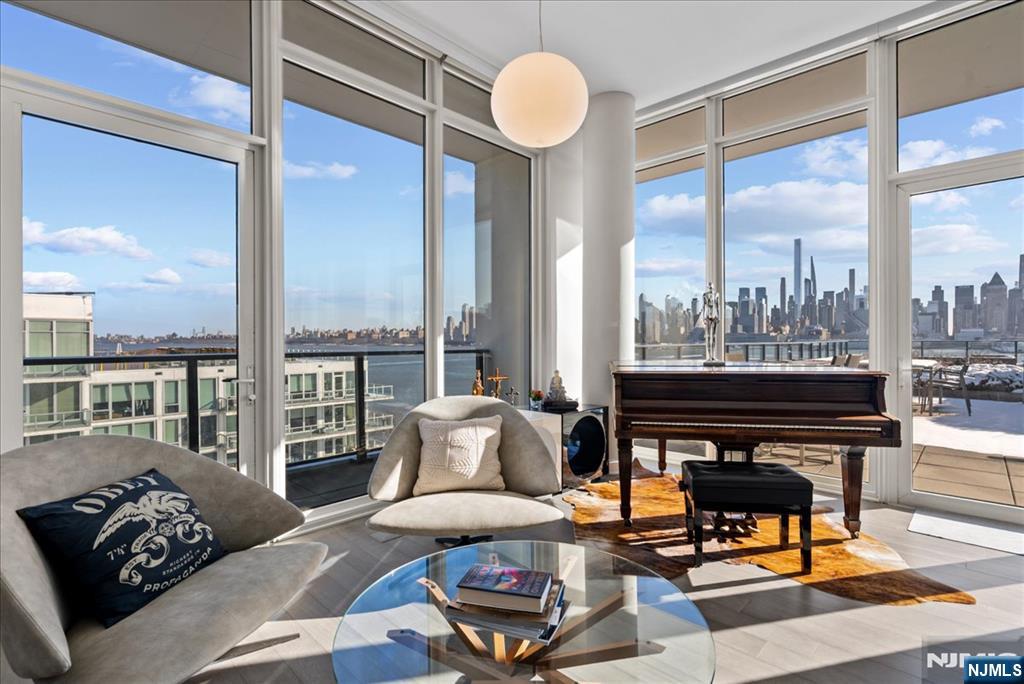 Gorgeous Hudson River Penthouse with amazing views of NYC skyline. Enormous 1500 sq/ft terrace jutting out to the river is an entertainers dream, allowing for large gathering of 75 guests or more. Your guests will be amazed with incredible views from the George Washington Bridge to the Verazano Narrows Bridge. Pamper yourself in the primary bathroom which features large walk in rain shower with glass stall, large soaking tub with ceiling water flow, and double sink. Owner invested over $100,000 in press button window shades while floor to ceiling glass panes allow for plenty of natural light. Amazing 10" floor to ceiling windows with the best views of NYC around.Residents enjoy an ultra modern gymnasium, rooftop swimming pool, media room and lounge. Kitchen has a built-in cigar refrigerator. Unit comes with two parking spots in gated secure garage and two storage units on second floor. Terrace garden maintenance is included in HOA fee.