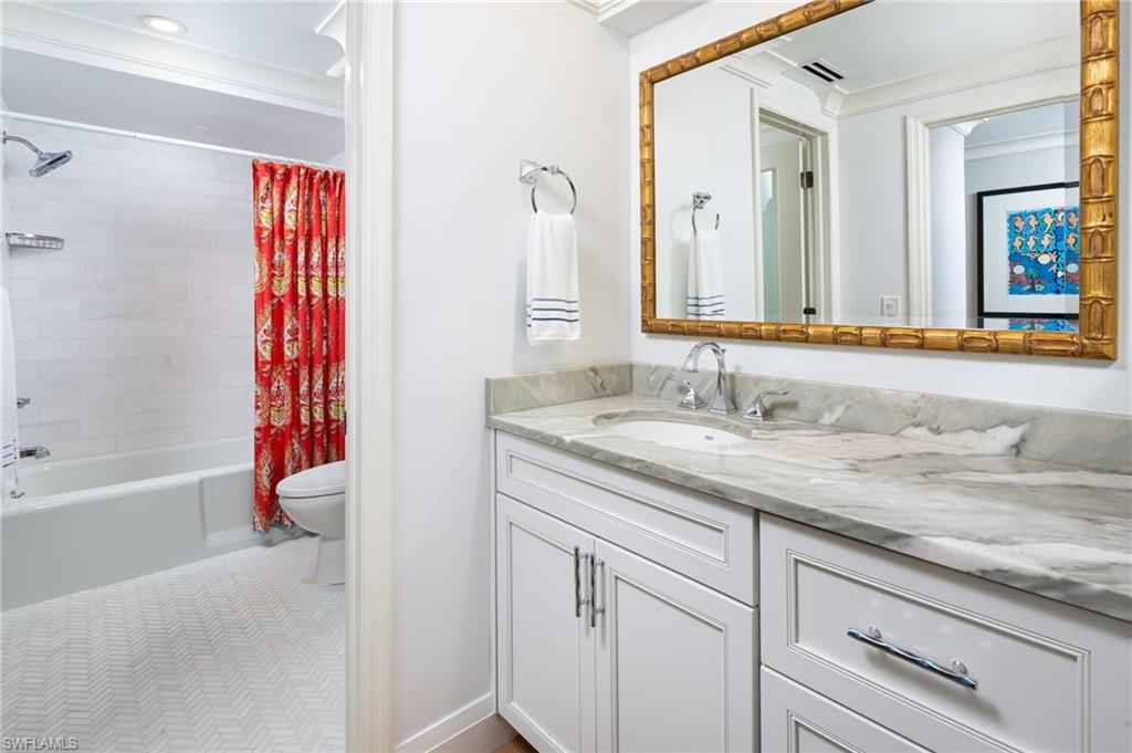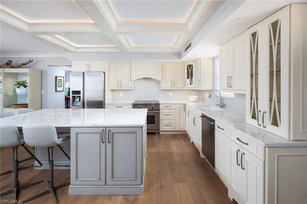 Sunsets, sea breezes, and the ultimate Naples lifestyle await in this fully reimagined top-floor penthouse at The Parador, offering 2302 square feet of exceptional indoor-outdoor living. West-facing exposures flood the residence with natural light and capture iconic Naples sunsets, while a 213-square-foot private covered terrace and an expansive 315-square-foot rooftop deck overlooking the Gulf create unforgettable spaces for entertaining, stargazing, or quiet coastal mornings. A dedicated under-building two-car garage adds rare convenience. Thoughtfully redesigned from top to bottom, the three-bedroom, two-bath open-concept layout blends modern luxury with timeless coastal charm. Interior highlights include Legno Bastone wood flooring throughout, coffered ceilings, custom crown molding, louvered doors, motorized shades, and spa-inspired baths, including one with a therapeutic air tub. The chefx2019;s kitchen is a true centerpiece, featuring custom cabinetry, a large center island, Wolf induction cooktop, premium refrigeration, quality countertops, and a timeless backsplash. Offered furnished, the residence delivers true move-in-ready comfort and style.xD;xA;Located just one block from Lowdermilk Beach Park and the new Naples Beach Club, A Four Seasons Resort & Residences, The Parador is a boutique, low-density building with only 18 residences. Amenities include a secure lobby and mailroom, air-conditioned storage, private pool, outdoor grills, covered carport parking, and guest spaces. Moments from 5th Avenue South, boutique shopping, dining, boating, and cultural attractions, this is a rare opportunity to own a beautifully reimagined penthouse where timeless design meets modern coastal luxury.xD;xA;Life here is about balance, tranquil days, vibrant evenings, and sunsets youx2019;ll never forget.