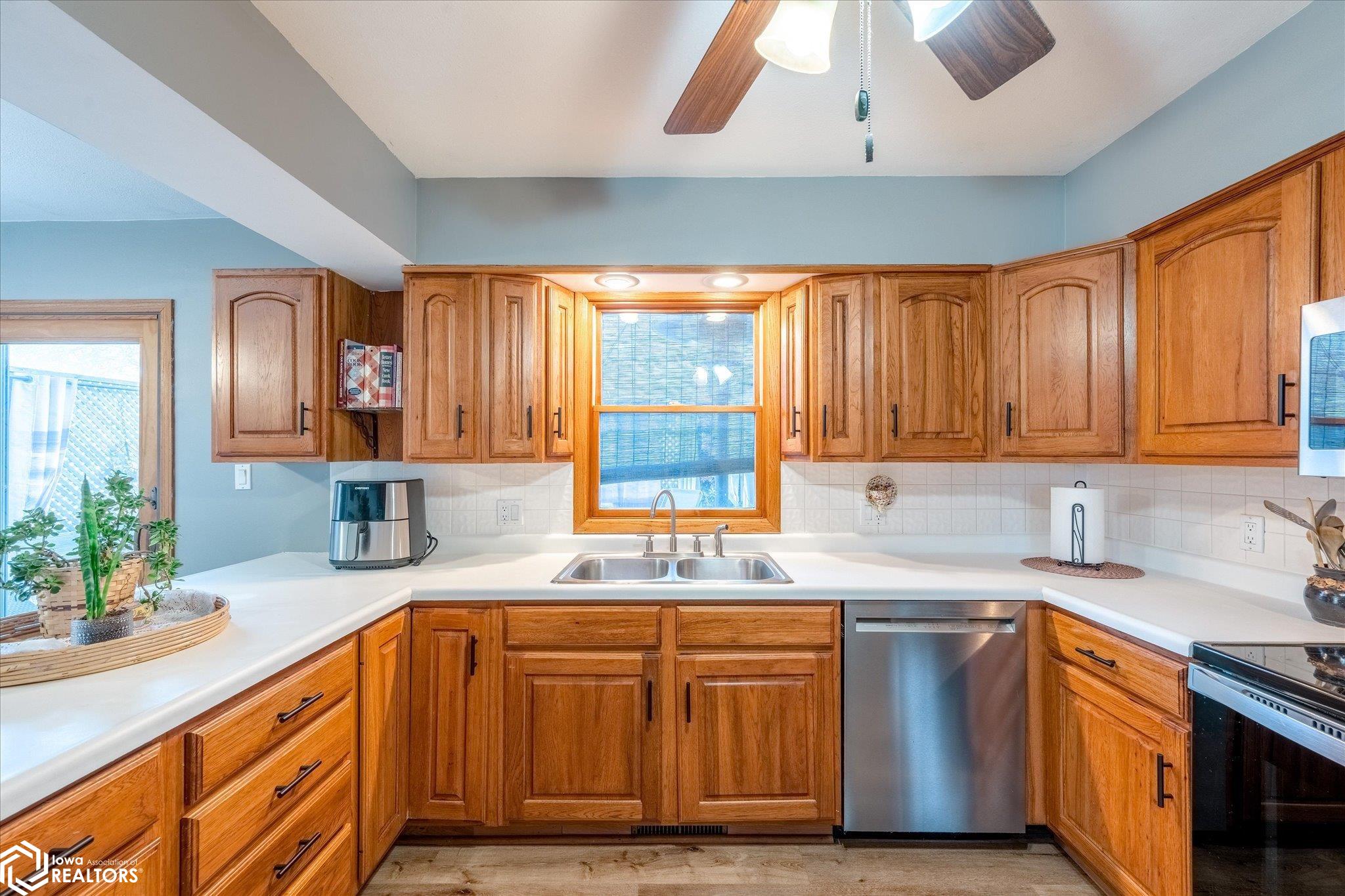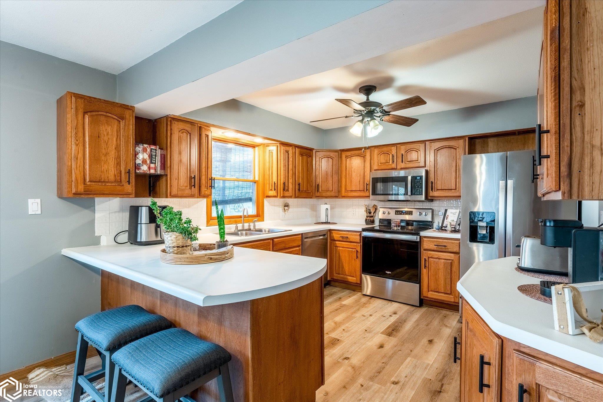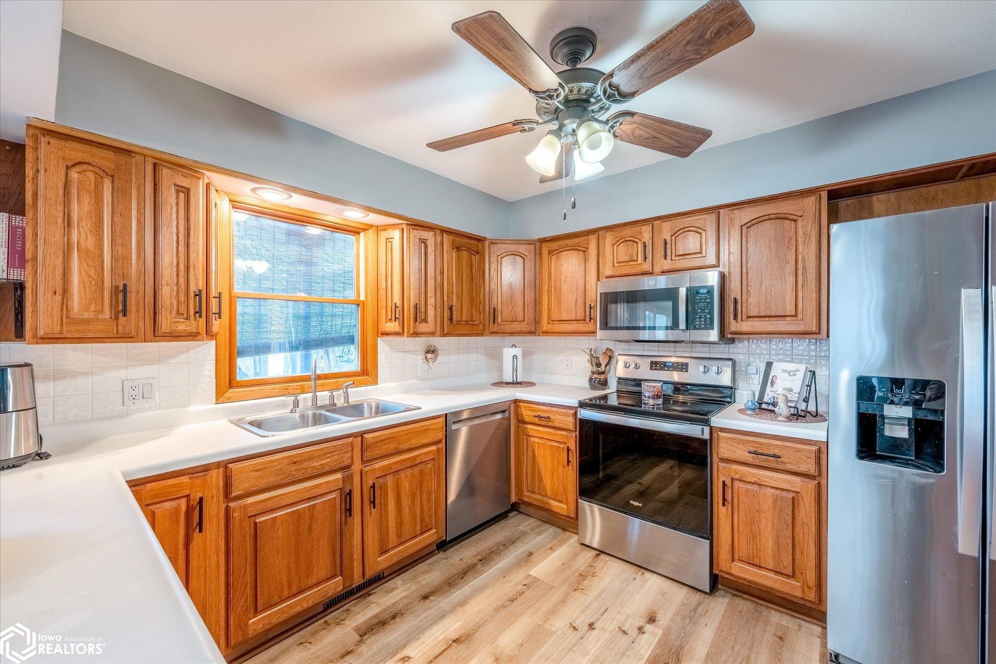 Enjoy this great 5-bedroom, 3-bath home with two garages on a corner lot just a half block from grade, middle, and high schools you cant beat that kind of location for a growing household! Entry level features a generous foyer, half bath, and a comfortable TV room with French doors leading to the privacy fenced backyard. Main level offers a living room with an efficient wood-burning fireplace, a kitchen with included appliances that opens to a dining room with French doors to a private, enclosed deck. Upper level includes three bedrooms and a spacious full bath with dual vanities. Third level provides a primary bedroom, bath with walk-in shower, and a den or 5th bedroom. The Basement offers an L-shaped family room and a laundry room. Possible 4th bath in laundry room with minimal work. Washer, dryer, refrigerator, and freezer on this level are included. Enjoy the back yard with private deck and privacy fencing that rounds out this practical, well-located home the kind of property with many nice updates that works hard for a family and holds its value over time. --- 24 Hours Notice to Show ---