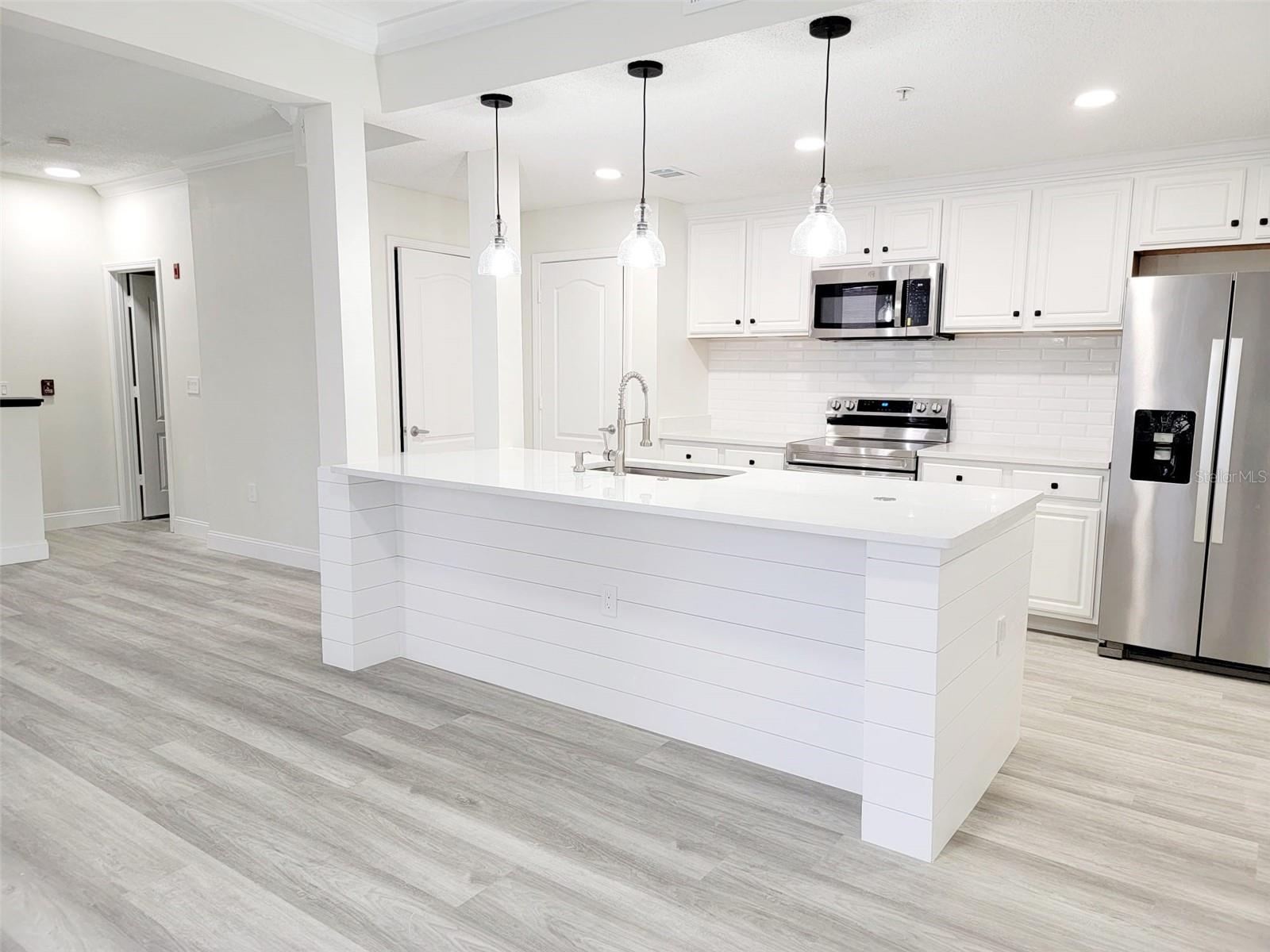 This is a truly RARE FIND! A completely and beautifully REMODELED 3 bedroom, 3 and 1/2 bathrooms TOWNHOUSE with attached garage in Hunters Creek! With 2 MASTER SUITES and a walk-in closet in every bedroom, you will marvel at the gorgeous modern kitchen featuring quartz countertops, eat in island, brand new stainless steel appliances, open floor plan, spacious and bright rooms and brand new bath cabinets. The home has 2 BALCONIES for those sunny mornings or glass of wine at the end of a busy day. One of the balconies has even a private entrance to the home! You will be within a couple blocks from Hunters Creek Elementary and Hunters Creek Middle Schools-all A+++ rated schools, as well as shops, restaurants, Publix, SEABRA, Deluxe Starbucks, drugstores and the brand new walking/biking trail along John Young pay and beyond. Villanova at Hunters Creek is a gated community featuring a resort style swimming pool and spa, gym and clubhouse. Hunters Creek is one of the highest rated communities in the entire country. Parks, playgrounds, lakes, sports activities for all ages, as well as community activities are all part of the Hunters Creek living experience. partner Realtor cooperation is welcome and appreciated.