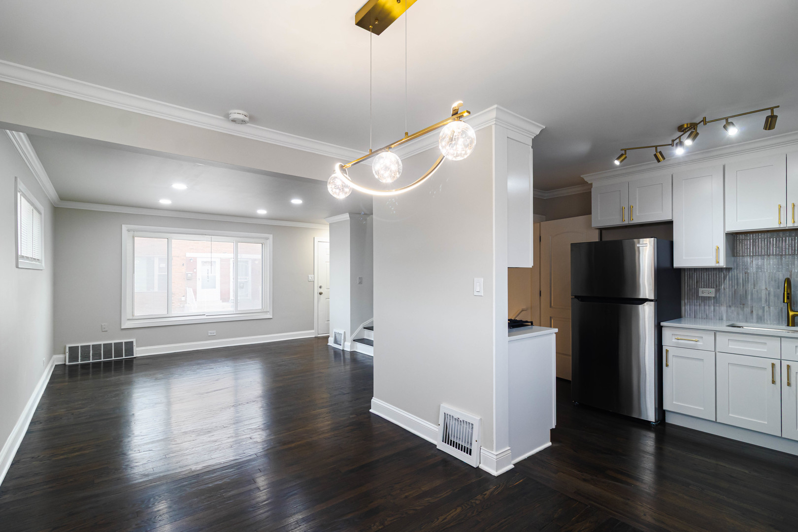 Don't miss the chance to make this beautifully remodeled spacious two-bedroom/two full bathroom townhouse yours! Refinished hardwood flooring throughout the main and second floors. The large sunny living room has recessed lighting while the separate dining room features a new modern chandelier. Enjoy cooking in your new kitchen with stainless-steel appliances, quartz countertops, and a stylish porcelain tile backsplash. Upstairs you'll find two large bedrooms with ample closet space and the first remodeled bathroom with new tile and fixtures. The finished basement features room to spread out in a family room, a second fully remodeled bathroom, and a laundry/mechanical room. Your new home is centrally located to shopping, schools, parks, and transportation. Sold as-is. Call your agent today to set up a showing before it's too late!