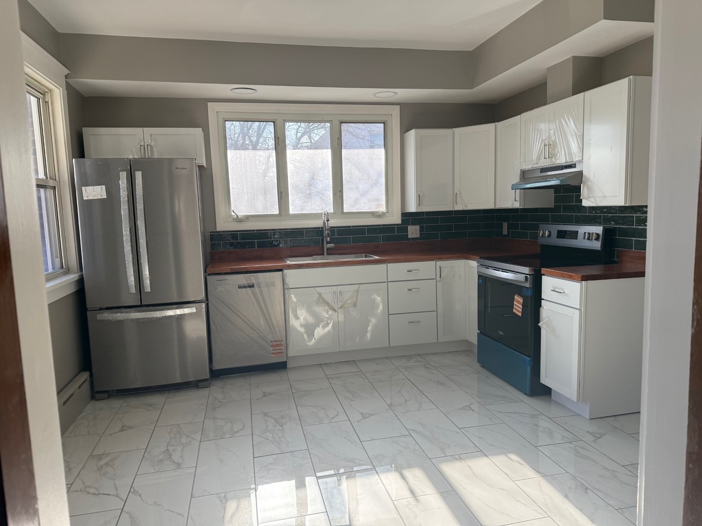 Beautifully renovated 5 bedroom, 2 bath brick bungalow offering space, character and modern updates throughout. Fully remodeled in 2025, this home blends timeless charm with today's conveniences. The main level features refinished hardwood floors, original woodwork and doors, and a cozy wood-burning fireplace. A new beautiful bath with tub and shower. This living area flows into a spacious 10x23 enclosed porch with all new windows-perfect for relaxing or entertaining. The brand-new kitchen showcases stainless steel appliances, new cabinetry, butcher block sealed countertops, porcelain tile flooring and updated fixtures and all new windows on the main level. The upper level offers three generously sized bedrooms, walk-in closets, a stunning new Jack & Jill bath with a walk-in shower. An unfinished bonus room adds additional storage. Extensive improvements include central air, carpeting, lighting, ceiling fans, plumbing, electrical and new windows. This move-in ready home is a rare find.