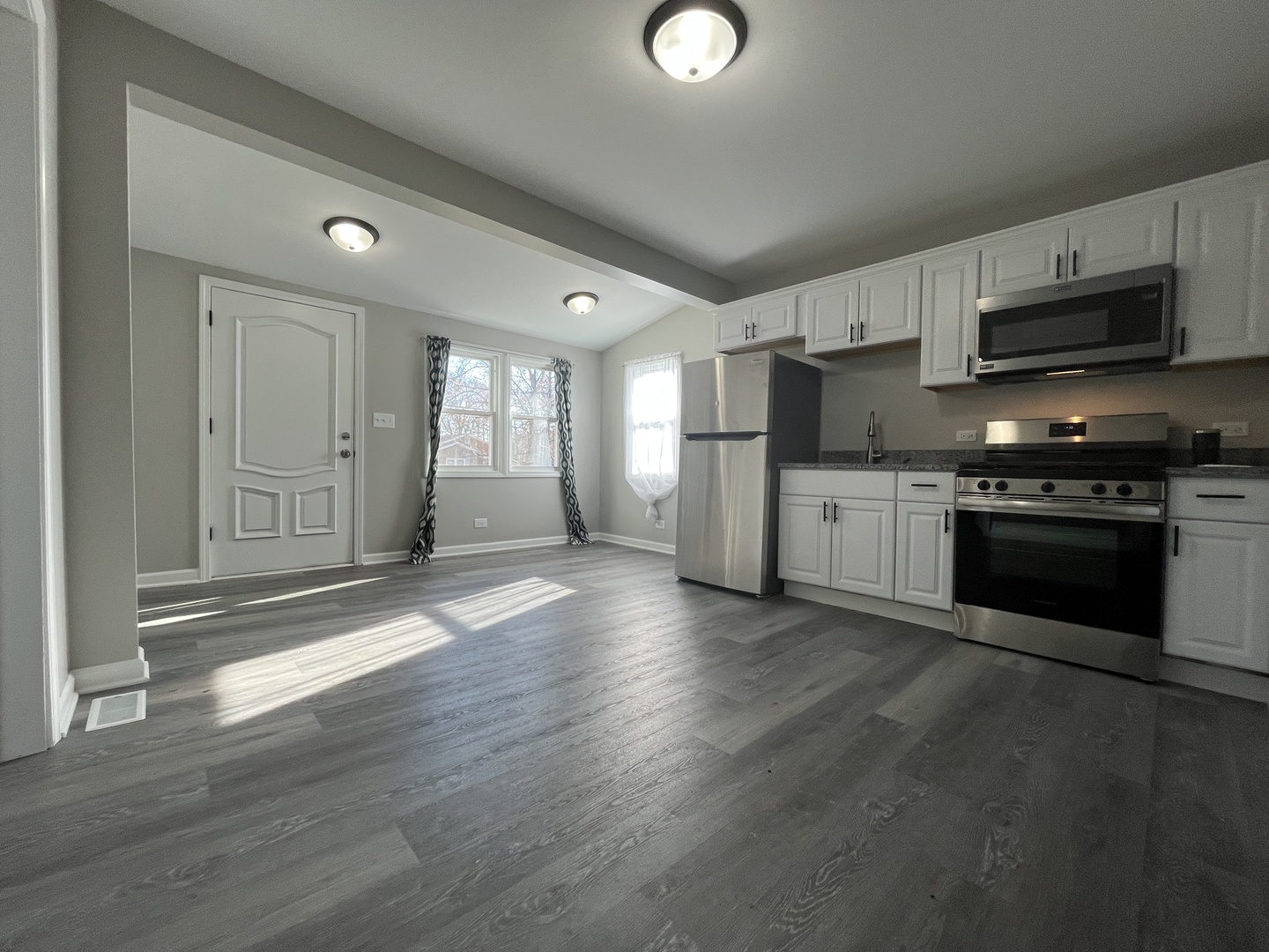 CUTE HOME IN TOP CONDITION! OPEN FLOOR PLAN WITH BRAND NEW KITCHEN WITH GRANITE COUNTER TOPS! EQUIPPED WITH STAINLESS STEEL APPLIANCES! A BEAUTIFULL BATHROOM! NEW PLANK FLOORING JUST INSTALLED! NEW ROOF AND WINDOWS! HOME COMES WITH NEW FURNACE AND WATER HEATER ALONG WITH ALL LIGHT FIXTURES! FRESHLY PAINTED INTERIOR AND EXTERIOR! GOOD SIZE BEDROOMS! COME AND SEE TODAY! ALL ROOM SIZES AND DIMENSIONS ARE ESTIMATED!