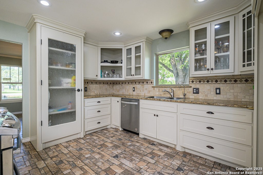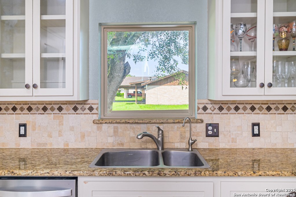 Welcome to your dream home! This charming 4 bedroom, 2 bath brick residence is perfectly situated on a corner lot, surrounded by mature trees that provide both beauty and shade. You ll love the spacious oversized lot, complete with a fenced back yard, perfect for outdoor gatherings or simply enjoying some peaceful time at home. Step inside to discover an inviting open floor plan that boasts high ceilings, allowing for an abundance of natural light and a fantastic view of your serene backyard. The heart of the home features stunning upgrades, including custom white cabinetry complemented by elegant accent glass door cabinets. You will appreciate the unique pantry door made of river glass, adding a touch of sophistication to your kitchen. The kitchen is a chef s delight, equipped with gorgeous granite countertops, a powerful gas range with four burners and a grill, along with not one, but two ovens for all your cooking adventures! Additionally, a convenient wine refrigerator and a reverse osmosis system are installed, ensuring your kitchen is both functional and stylish. The kitchen opens to the large living area with vaulted and beamed ceiling. 4 panels of glass overlook the patio and provide easy viewing of the private backyard. Both bathrooms have been upgraded with quality fixtures. A water softener system enhances the water quality throughout the entire house. Original MLS#: 113414 Deed Restrictions: Home Warranty: No Land Dimensions: .3507 Land Size Apx: .3507 Property Condition: Excellent Water District: Yes Water Heater: Electric Windows: Thermal Zoning: Residential