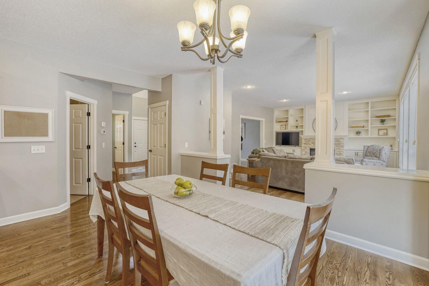 Set on a private half-acre lot backed by mature pines, this two-story home welcomes you with a covered front porch leading into a bright foyer with vaulted ceilings and hardwood floors that extend throughout the main level. The open living area features a gas fireplace with white built-ins and large windows that flood the space with natural light.The kitchen is designed for both everyday living and entertaining, offering new stainless steel appliances, a large center island, tile backsplash, walk-in pantry, and a casual dining area. Patio doors open to the deck, seamlessly extending the living space outdoors. A mudroom with custom built-in cubbies and a spacious closet connects to the insulated, attached three-car garage.New carpet has been installed on the stairs and throughout the second level. Upstairs youll find four bedrooms and two full bathrooms, including a private primary suite with a spa-inspired bath designed by HGTVs Bath Crashers. The bathroom showcases Carrara marble floors, a deep jetted tub, tiled shower, and a custom quartz double vanity with ample storage.The lower level offers an open and inviting space highlighted by a stone gas fireplace and large windows. French doors separate the fifth bedroom with a walk-in closet, making it ideal for guests, a home office, or workout space, along with generous storage.Outside, the landscaped yard provides privacy and lush grass supported by an in-ground sprinkler system. Conveniently located near walking and biking trails, schools, and shopping, with easy highway access, this home balances peaceful surroundings with everyday convenience.Multiple offers received. Highest and best offer due by 7:00 PM on 1/26/26.