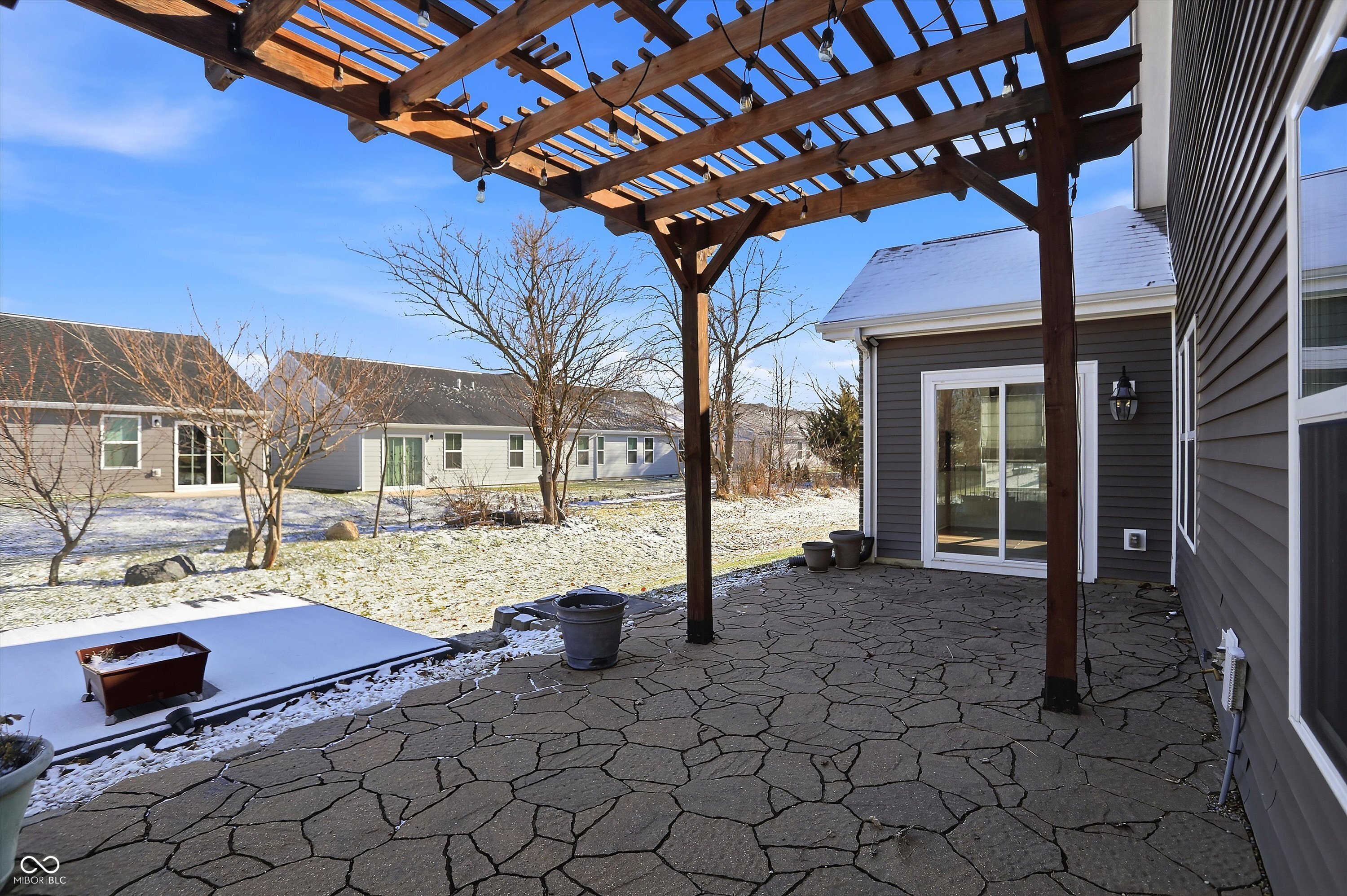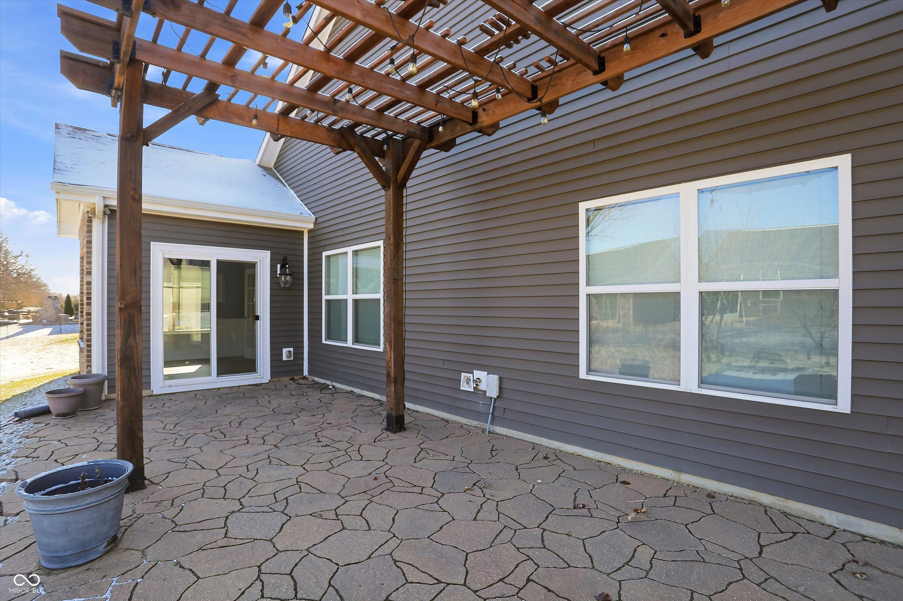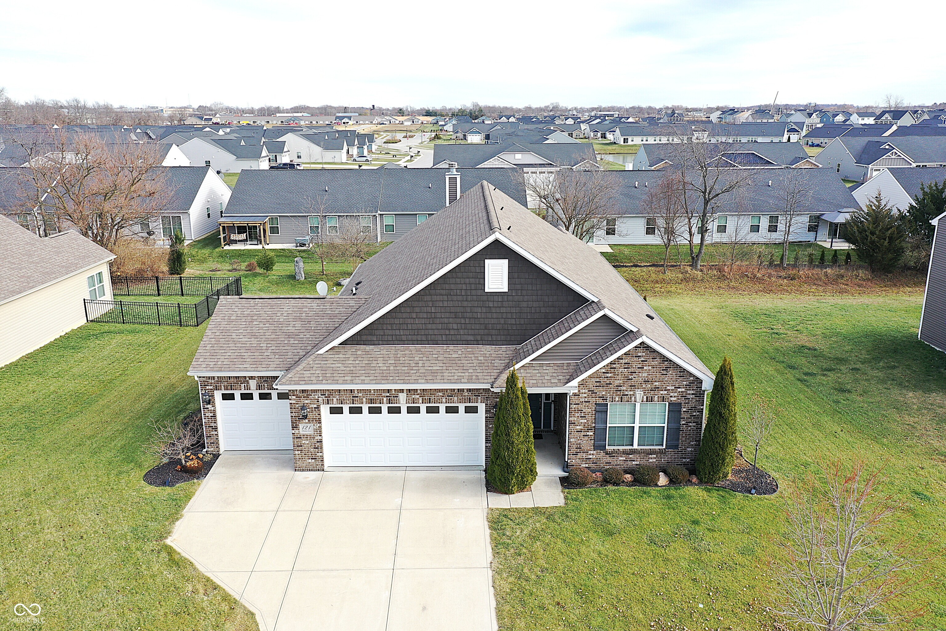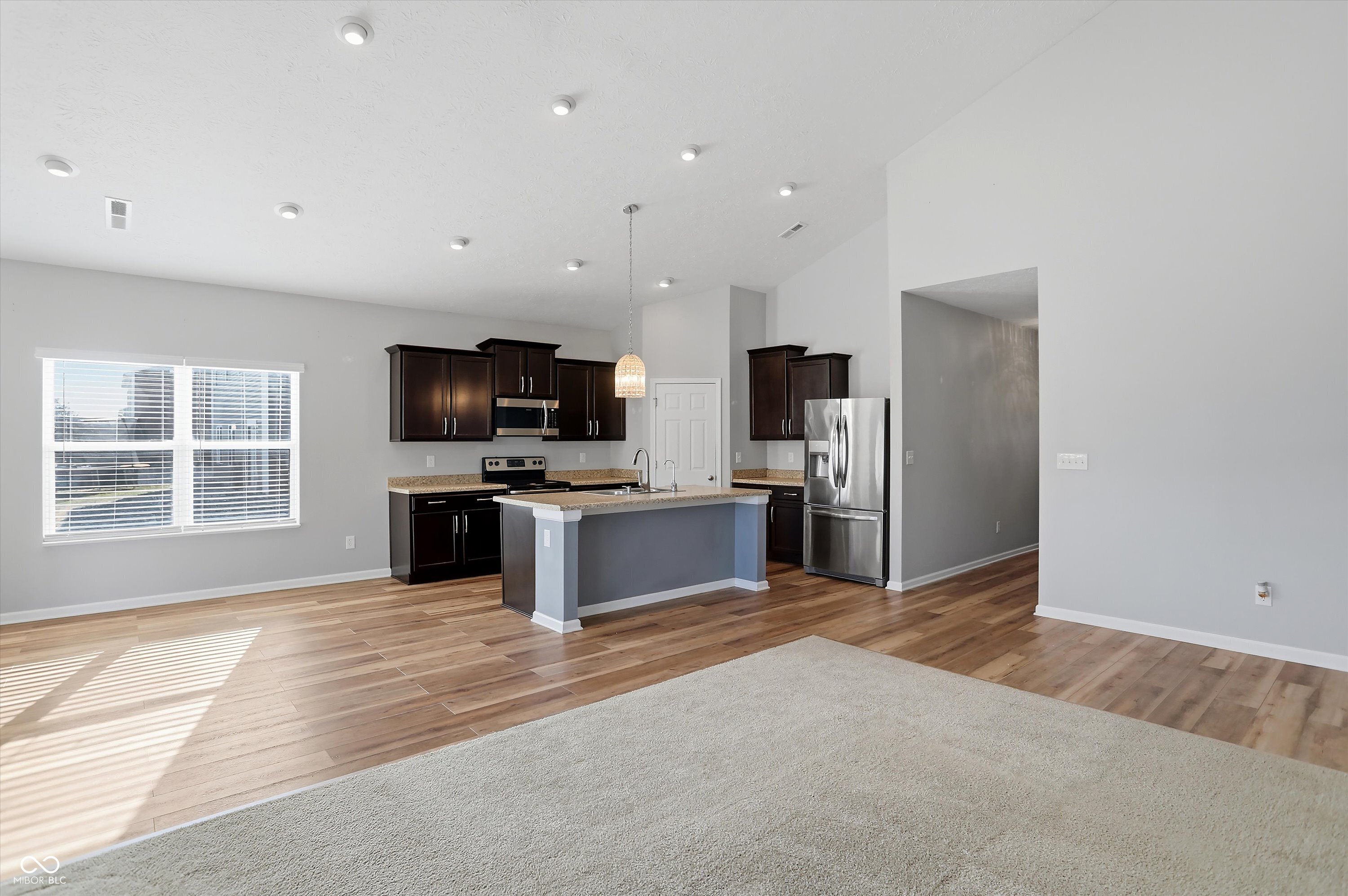 This move-in-ready 3-bedroom, 2-full bath home offers a desirable split-bedroom floor plan paired with a spacious open-concept layout designed for both everyday living and entertaining. Vaulted ceilings create volume and openness in the kitchen and living areas, while recessed lighting and abundant natural light give the home a bright, welcoming feel. Newer luxury vinyl plank flooring adds durability and modern appeal throughout much of the home, complemented by carpeted bedrooms and living room for added comfort. The sunroom provides a light-filled extension of the living space-ideal for relaxing, working from home, or gathering with guests. The primary suite is thoughtfully designed with an ensuite bathroom featuring a double vanity, private toilet area, full shower, and a generous walk-in closet. The kitchen is equipped with stainless steel appliances, under-cabinet lighting, kitchen island with reverse osmosis water filtration, offering both style and function. A large 3-car garage provides ample room for storage, hobbies, or additional vehicles, and a bonus - the washer and dryer are included. Step outside to a backyard built for enjoyment, featuring a paver patio, pergola, and island deck, all surrounded by professionally landscaped grounds that enhance the home's outdoor appeal. This Whiteland property combines comfort, thoughtful design, and inviting spaces inside and out.