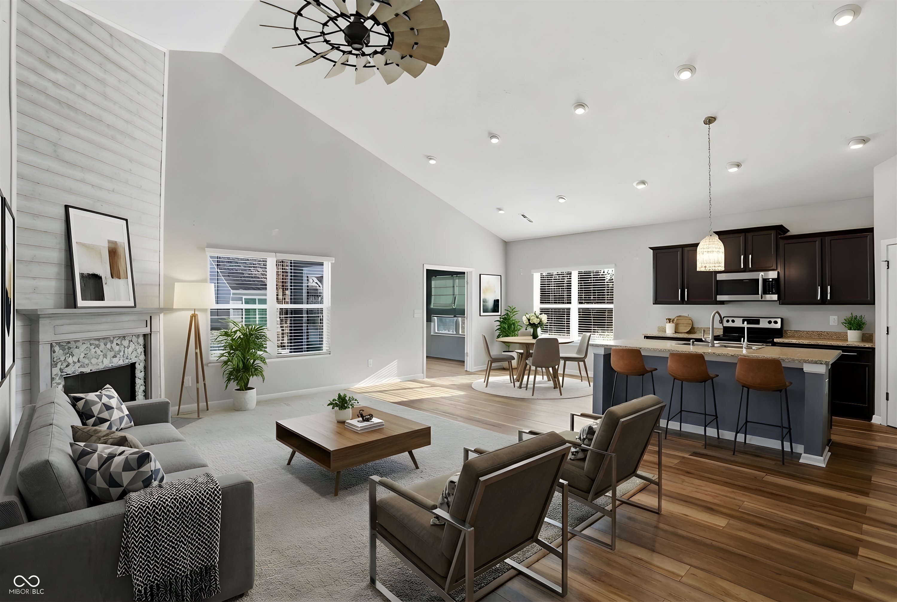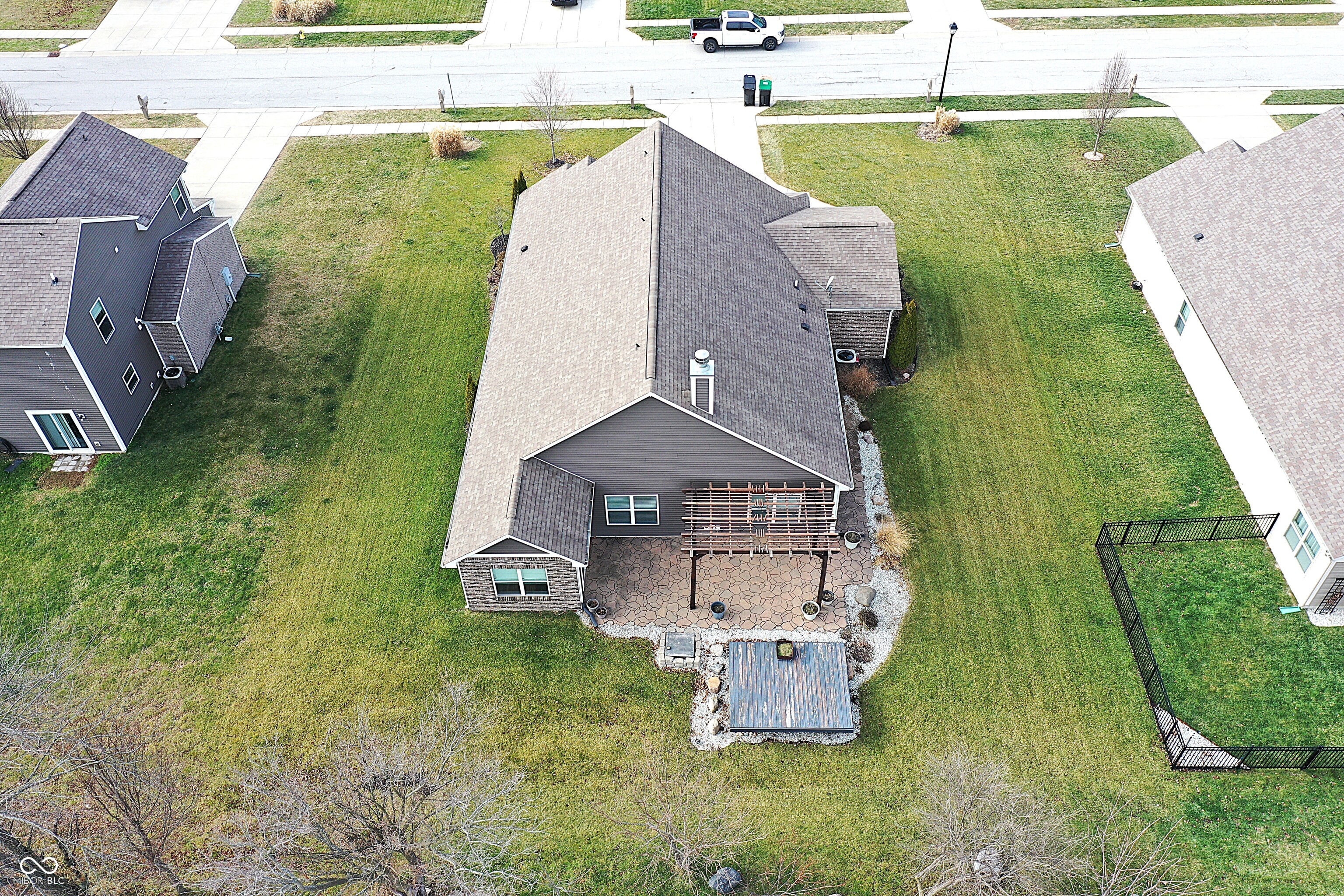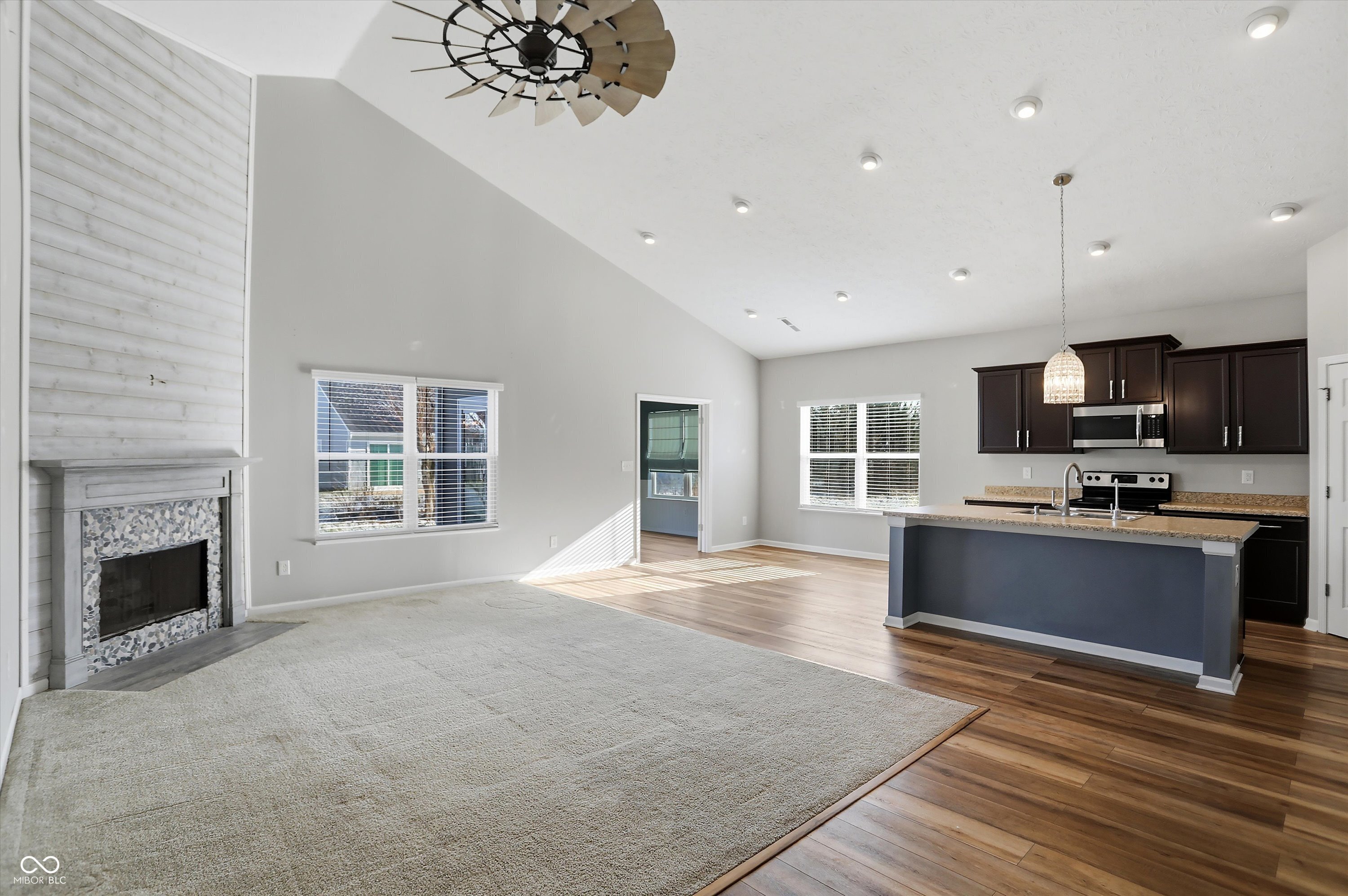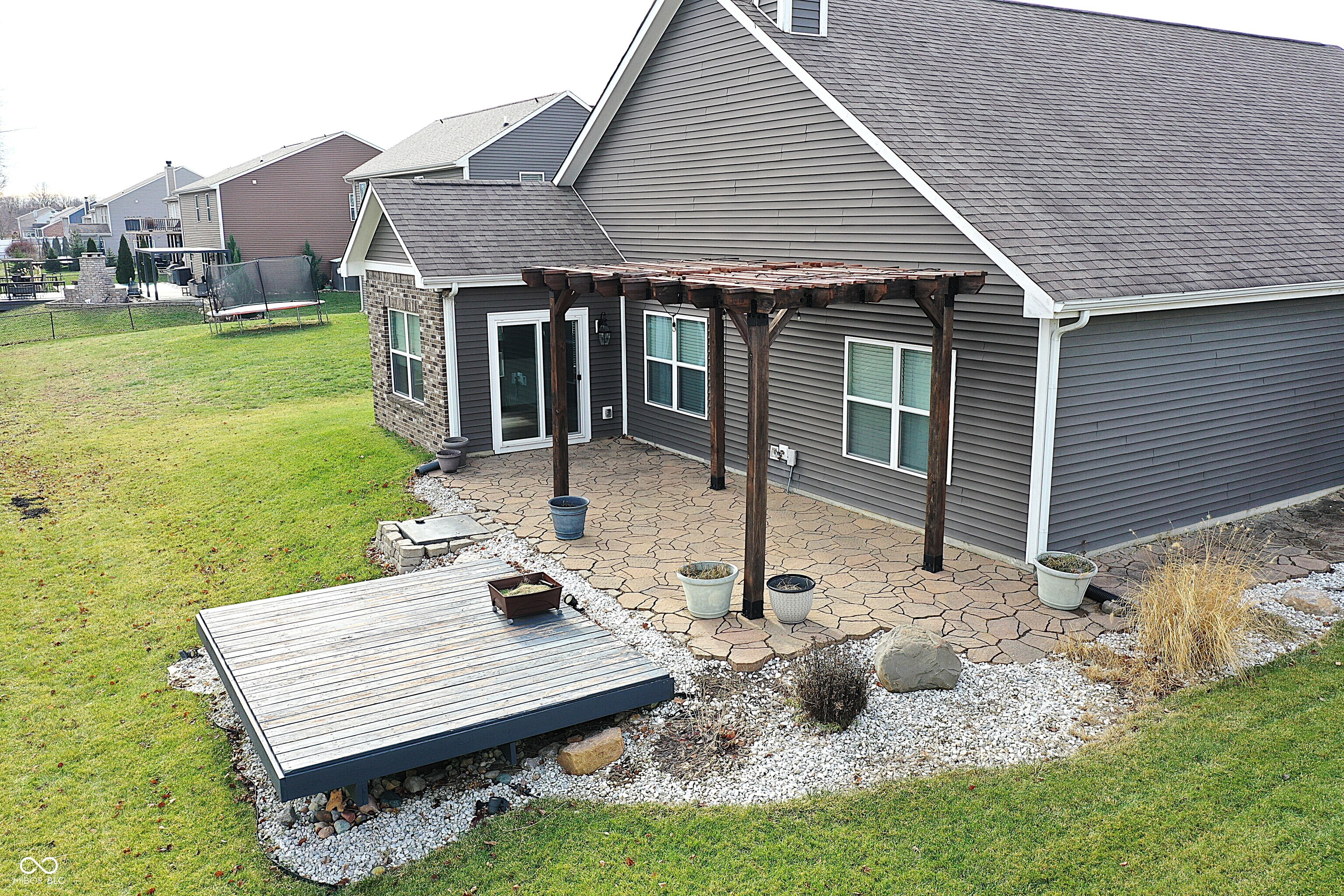 This move-in-ready 3-bedroom, 2-full bath home offers a desirable split-bedroom floor plan paired with a spacious open-concept layout designed for both everyday living and entertaining. Vaulted ceilings create volume and openness in the kitchen and living areas, while recessed lighting and abundant natural light give the home a bright, welcoming feel. Newer luxury vinyl plank flooring adds durability and modern appeal throughout much of the home, complemented by carpeted bedrooms and living room for added comfort. The sunroom provides a light-filled extension of the living space-ideal for relaxing, working from home, or gathering with guests. The primary suite is thoughtfully designed with an ensuite bathroom featuring a double vanity, private toilet area, full shower, and a generous walk-in closet. The kitchen is equipped with stainless steel appliances, under-cabinet lighting, kitchen island with reverse osmosis water filtration, offering both style and function. A large 3-car garage provides ample room for storage, hobbies, or additional vehicles, and a bonus - the washer and dryer are included. Step outside to a backyard built for enjoyment, featuring a paver patio, pergola, and island deck, all surrounded by professionally landscaped grounds that enhance the home's outdoor appeal. This Whiteland property combines comfort, thoughtful design, and inviting spaces inside and out.