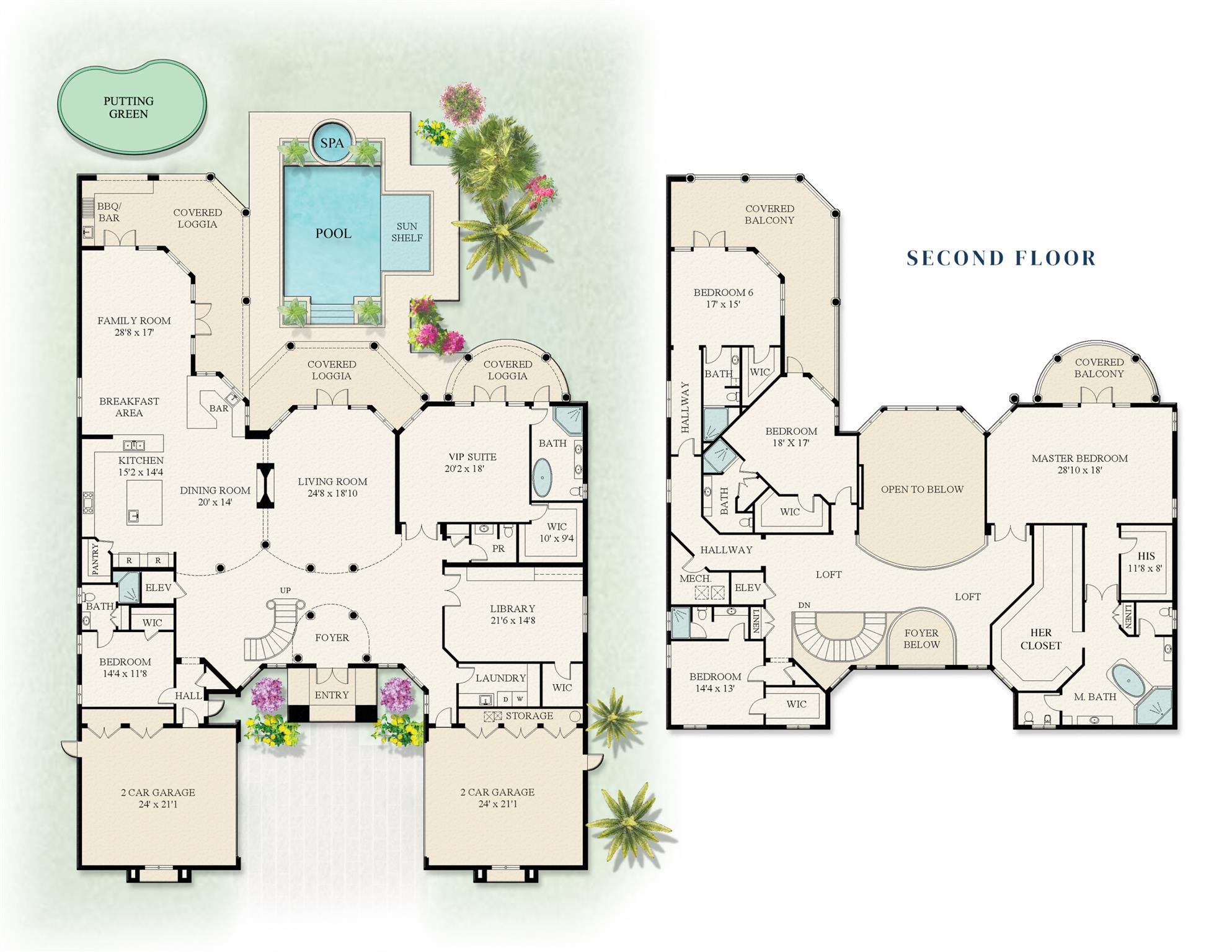 Beyond the gates of a private motor court, this six-bedroom golf course estate offers a lifestyle defined by elegance, privacy, and sweeping views of the Jack Nicklaus Signature Course. From the moment you arrive, the sense of quiet prestige is undeniable. Inside, light pours into the soaring two-story living room, where walls of glass dissolve the boundary between indoors and out. The chef's kitchen, outfitted with professional-grade appliances, becomes the heart of the home--its open layout flowing seamlessly into a sunlit dining space where conversations linger late into the evening by the two-sided fireplace.