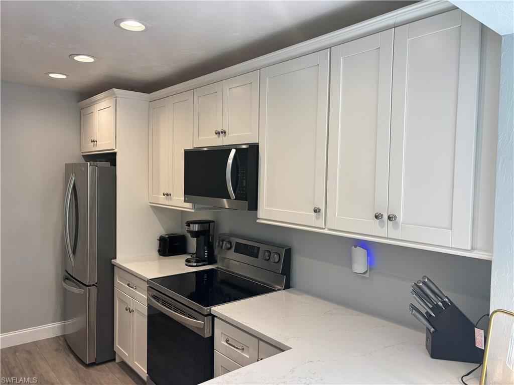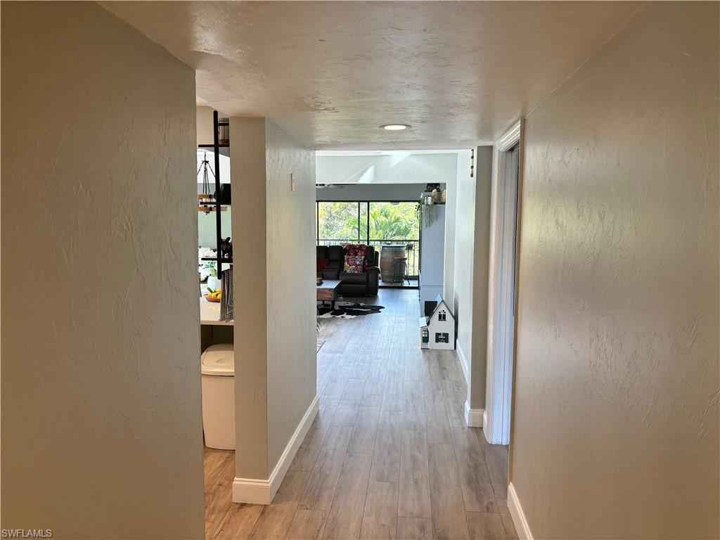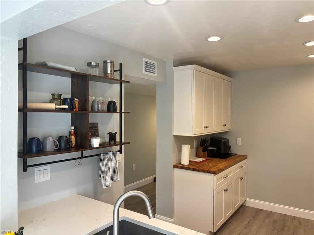 This inviting second-floor end-unit condo offers comfortable living with two bedrooms and two bathrooms. Filled with natural light. The kitchen is beautifully designed with butcher block and quartz countertops, all-new white soft-close cabinetry, a convenient lazy Susan, new dishwasher, and newer stainless steel appliances. Both bathrooms have been tastefully renovated, and the home features upgraded paint and an ultra violet system for the A/C. Relax and unwind on the private lanai while enjoying peaceful canal views. The living area showcases stylish laminate flooring, and the home also includes updated plumbing for added peace of mind.