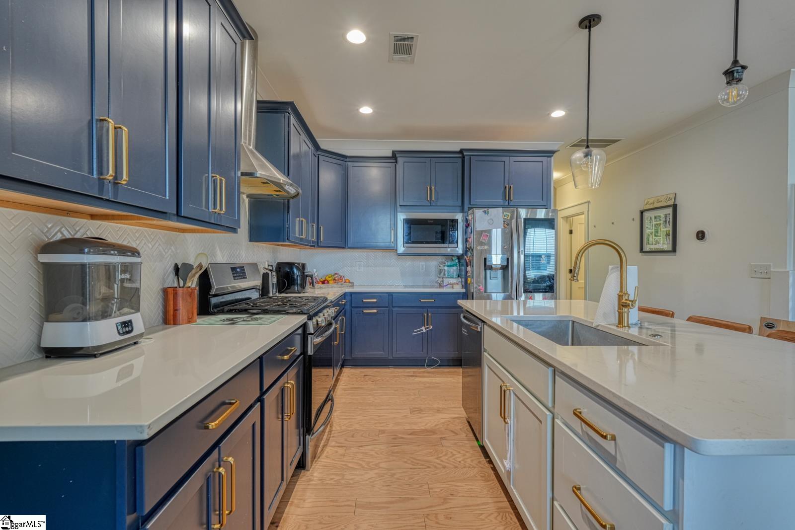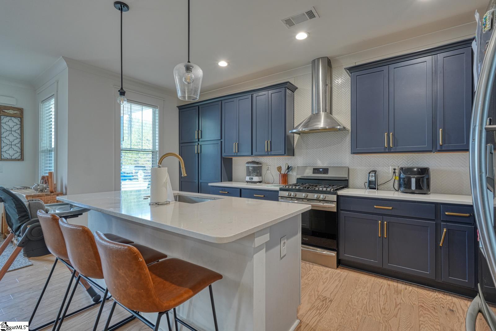Welcome to 1216 N Pinot Road, a rare end-unit Craftsman-style townhouse located in the highly desirable Townes at Squires Pointe community in Duncan, South Carolina. Built in 2022 and offering approximately 2,590 square feet, this home stands apart with its end-unit positioning, enhanced natural light, and a thoughtful collection of builder and owner upgrades. The main level features a bright, open-concept layout accented by upgraded flooring and an enhanced trim package, creating a polished, high-end feel throughout. The spacious great room is centered around a gas fireplace and flows effortlessly into the dining area and kitchen, making the space ideal for entertaining and everyday living. The kitchen is both stylish and functional, showcasing custom cabinetry, solid surface countertops, a large center island, and a full suite of included appliances, including a gas cooktop stove, refrigerator, dishwasher, built-in microwave, and electric oven, offering true move-in-ready convenience. As an end unit, the home benefits from additional windows and increased privacy, delivering a more single-family-home feel. Step outside to enjoy the covered patio and balcony, perfect for relaxing mornings or unwinding in the evenings. Upstairs, the expansive owners suite serves as a private retreat with a walk-in closet and a spa-inspired ensuite featuring double vanities and a large walk-in shower. Secondary bedrooms are generously sized and versatile, ideal for guests, home offices, or family needs. A second-floor walk-in laundry room adds everyday functionality. Additional highlights include 9-foot ceilings, smooth ceilings, ceiling fans, ceramic tile, carpeted bedrooms, an attached two-car garage with side and rear entry, architectural and metal roofing, a full-yard sprinkler system, and efficient natural gas heating paired with central electric cooling. The HOA covers exterior maintenance, lawn care, trash service, street lighting, and common areas, providing a truly low-maintenance lifestyle. Conveniently located near SC-290,this home offers quick access to Spartanburg, Greenville, and major employers, while being zoned for River Ridge Elementary, Florence Chapel Middle, and Byrnes High School. End units with this level of customization, included appliances, and condition are rarely available in Duncan. If you are searching for an upgraded end-unit townhouse for sale in Duncan SC, with custom finishes, included appliances, and low-maintenance living, this home delivers.