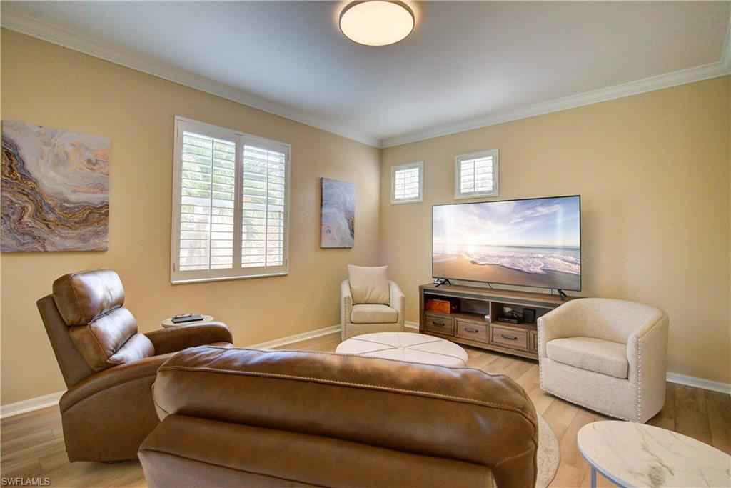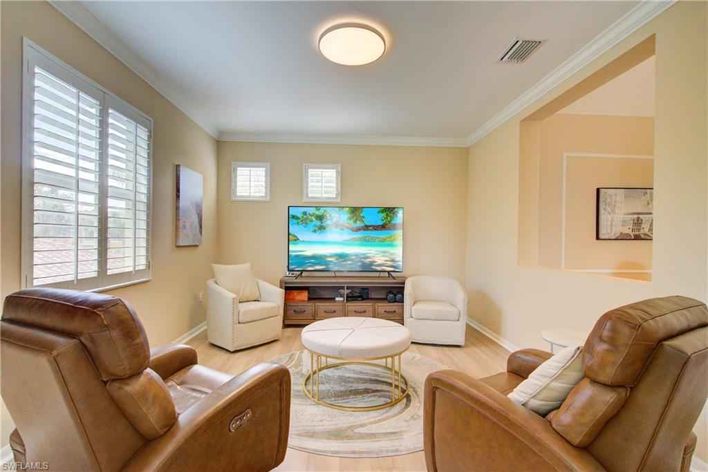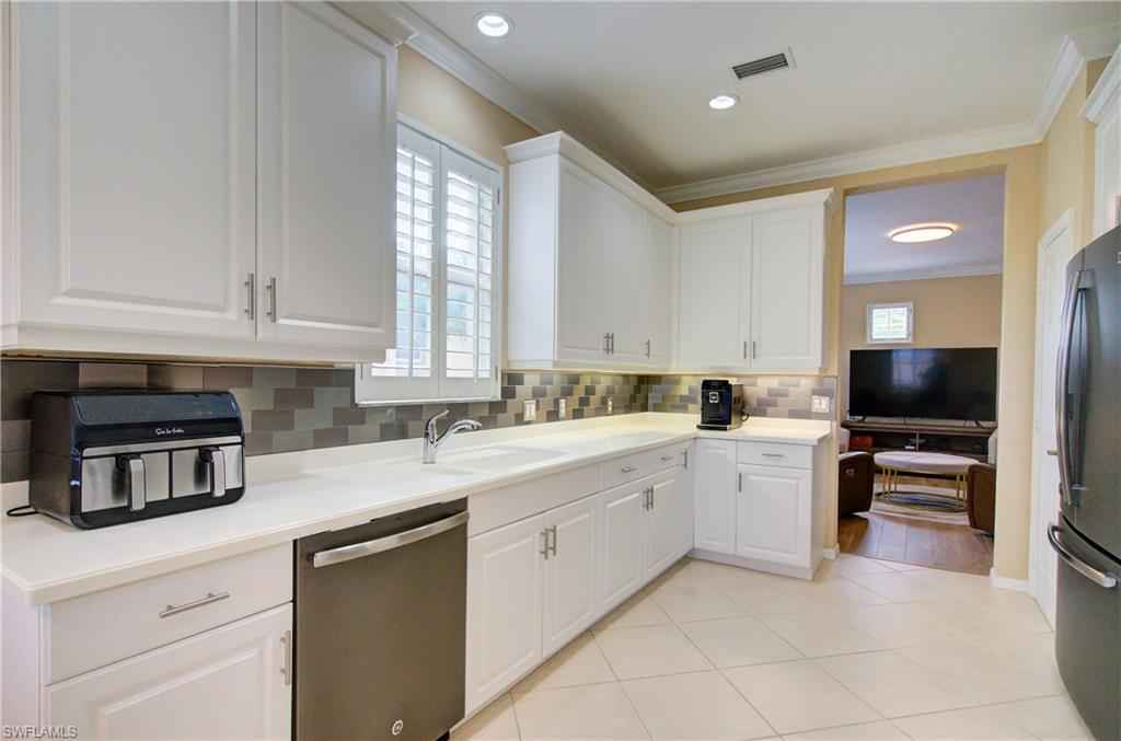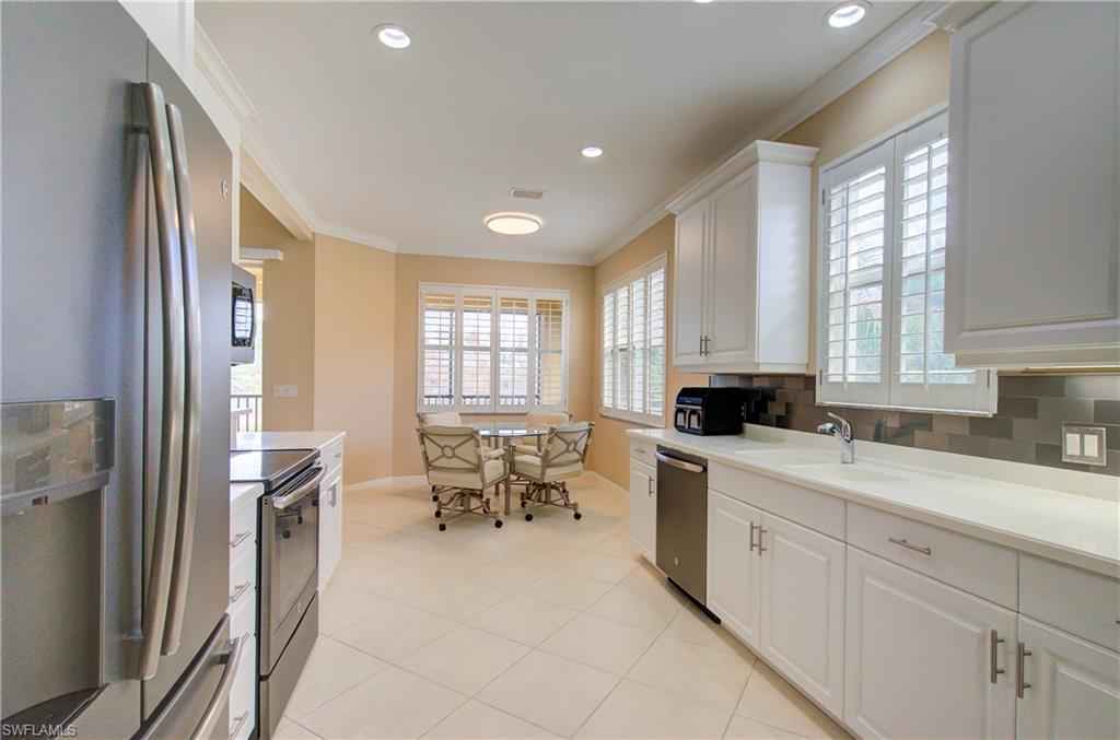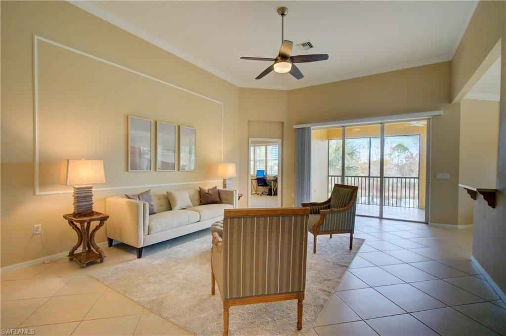 Over 2300 sqft, this beautifully maintained 3-bedroom + den, 2-bath carriage home offers serene lake and golf course views and is being sold turnkey, making it truly move-in ready. Tastefully decorated throughout, the residence features an updated kitchen with crisp white cabinetry, creating a bright and welcoming space ideal for everyday living and entertaining.xD;xA;xD;xA;As the best value end unit, the home enjoys added privacy, abundant natural light, and the convenience of a private garage. The split-bedroom floor plan provides excellent separation for guests, while the den offers flexibility as a home office, media room, or additional sleeping space. Plantation shutters throughout add timeless style and charm.xD;xA;The primary suite serves as a relaxing retreat, featuring two walk-in closets and an ensuite bath with dual vanities. Ideally situated within the community, the home offers a fantastic location close to amenities, with easy access to the community pool, golf course, and social activitiesx2014;perfect for enjoying the Vasari lifestyle without long walks or drives.xD;xA;xD;xA;Residents enjoy beautifully maintained landscaping, a welcoming neighborhood atmosphere, and one of the areax2019;s top bundled golf communities. Vasari offers an 18-hole championship golf course, resort-style pool, tennis, bocce, pickleball (coming soon), fitness center, on-site dining, and a vibrant social calendar. Ideally located near world-class beaches, shopping, dining, and RSW Airport, this home delivers the perfect blend of comfort, convenience, and the Southwest Florida lifestyle.