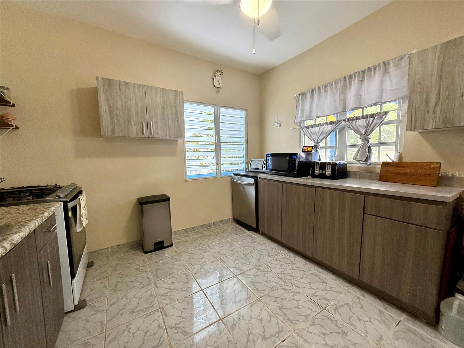 One or more photo(s) has been virtually staged. Welcome to this versatile and well-appointed residence located in the heart of Fajardo, Puerto Rico, just minutes from the coast. This 3-bedroom, 2-bathroom home offers an ideal layout for primary living, a second home, or an income-producing rental property.One of the bedrooms features a private ensuite bathroom, providing added comfort and privacy. The home boasts an open floor plan that seamlessly connects the living, dining, and kitchen areas, creating a bright and functional space ideal for everyday living and entertaining. Newer split-unit air conditioning systems are installed in every bedroom and the main living area, ensuring year-round comfort.Enjoy both front and back porch areas, perfect for relaxing or hosting guests. The backyard features mature fruit trees, including banana and plantain, offering a true Caribbean lifestyle experience.The property is equipped with leased solar panels, which can be assumed by the buyer, helping reduce energy costs. Additional features include a security system, internet and cable readiness, and full utilities in place.Located on a quiet cul-de-sac with no zoning restrictions, the property allows for short-term rentals such as Airbnb, long-term leasing, or personal use. The beach is only a 15-minute drive away and is also easily accessible by bike or on foot, adding to the homes lifestyle appeal.This is a rare opportunity to own a flexible, move-in-ready property in one of Fajardos most desirable and accessible locations. Call us today!