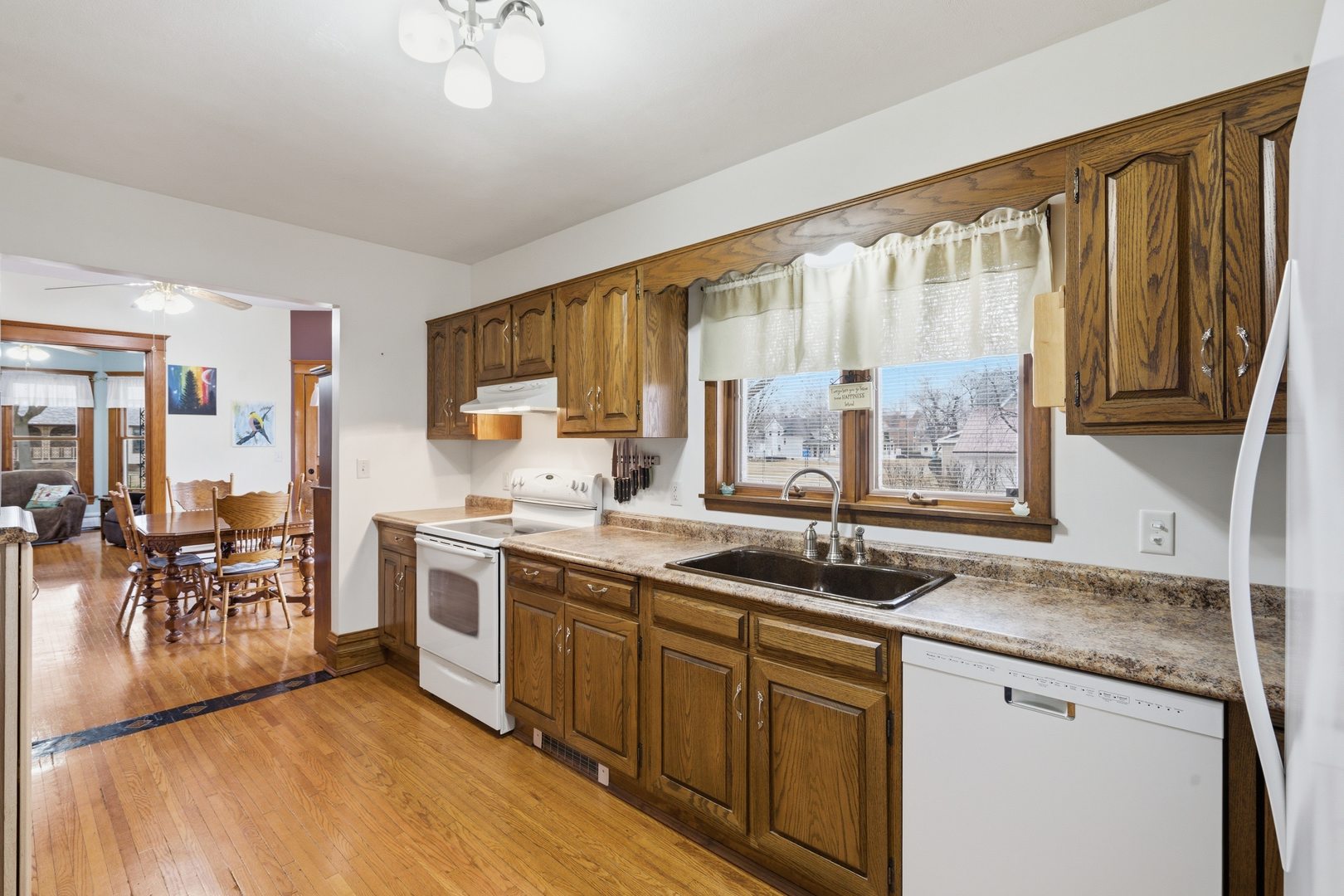 Step into timeless charm with this beautifully preserved two-story historic home in DeWitt, perfectly located near parks, recreation, DeWitt Schools, and community activities-yet privately tucked away on a rare double lot. The outdoor space is truly special, offering a private backyard retreat filled with perennials galore (apple trees, honeysuckle, tulips, bridal veils, iris, ferns, and more!), mature landscaping, and a stunning stone patio complemented by additional stamped concrete, creating the perfect setting for relaxing evenings, entertaining, or enjoying the seasons. Inside, historic character shines throughout the main level with gorgeous original hardwood floors flowing through the living room, dining room, main-level office/bedroom, and kitchen. Elegant and functional pocket doors and remarkable original woodwork along the staircase highlight the craftsmanship rarely found today. The upstairs features four nicely sized bedrooms and a large full bathroom, providing plenty of space for family or guests. The main level also includes a full bathroom with a classic clawfoot tub, along with the added convenience of main-floor laundry. You'll love the convenient ATTACHED 2 car garage, large storage shed, and a 2nd set of stairs leading directly to the dry basement. A rare opportunity to own a historic home that blends character, space, and privacy-all within minutes of everything quaint DeWitt has to offer! Roof all NEW in 2021, updated 200-amp electrical service, floored walkup attic with extra insulation.