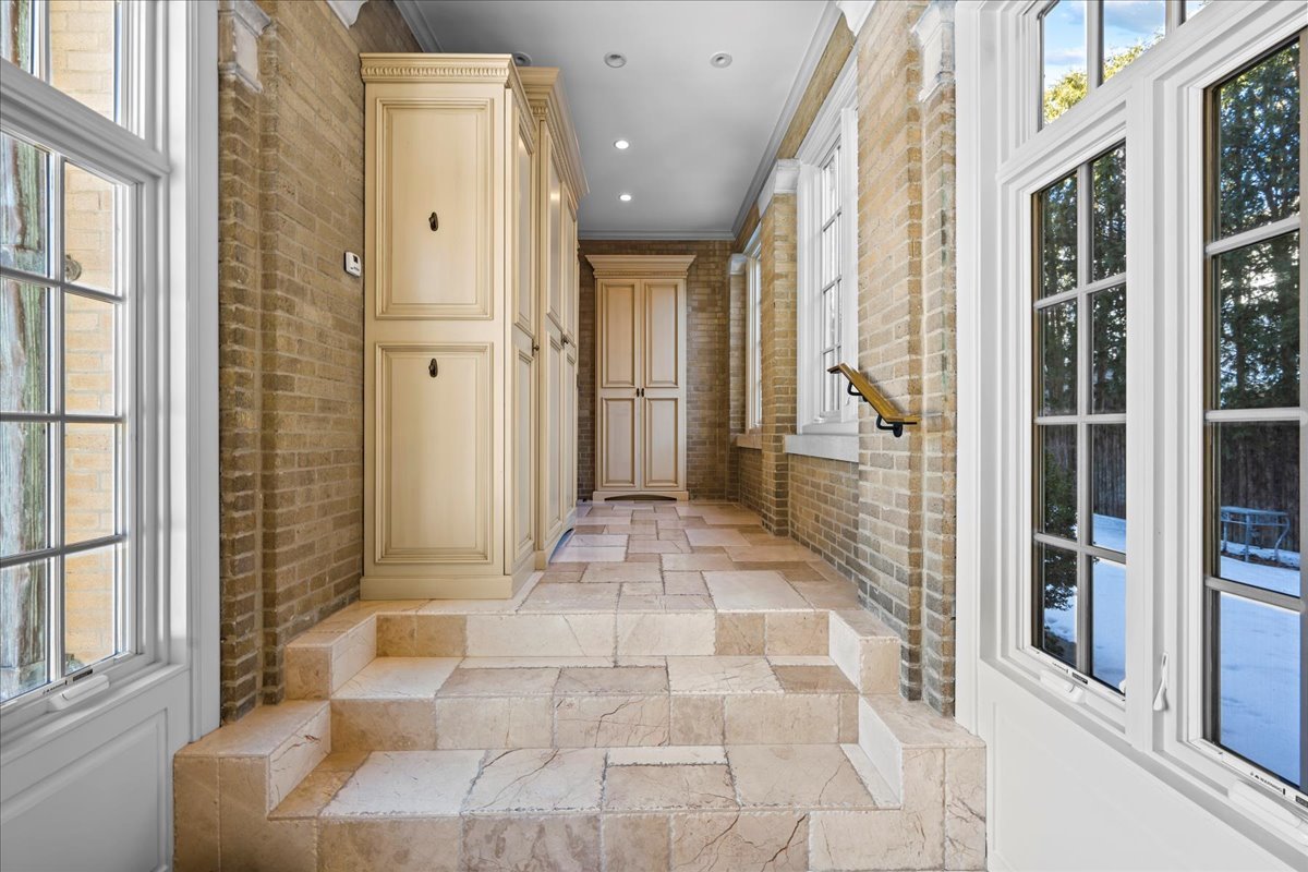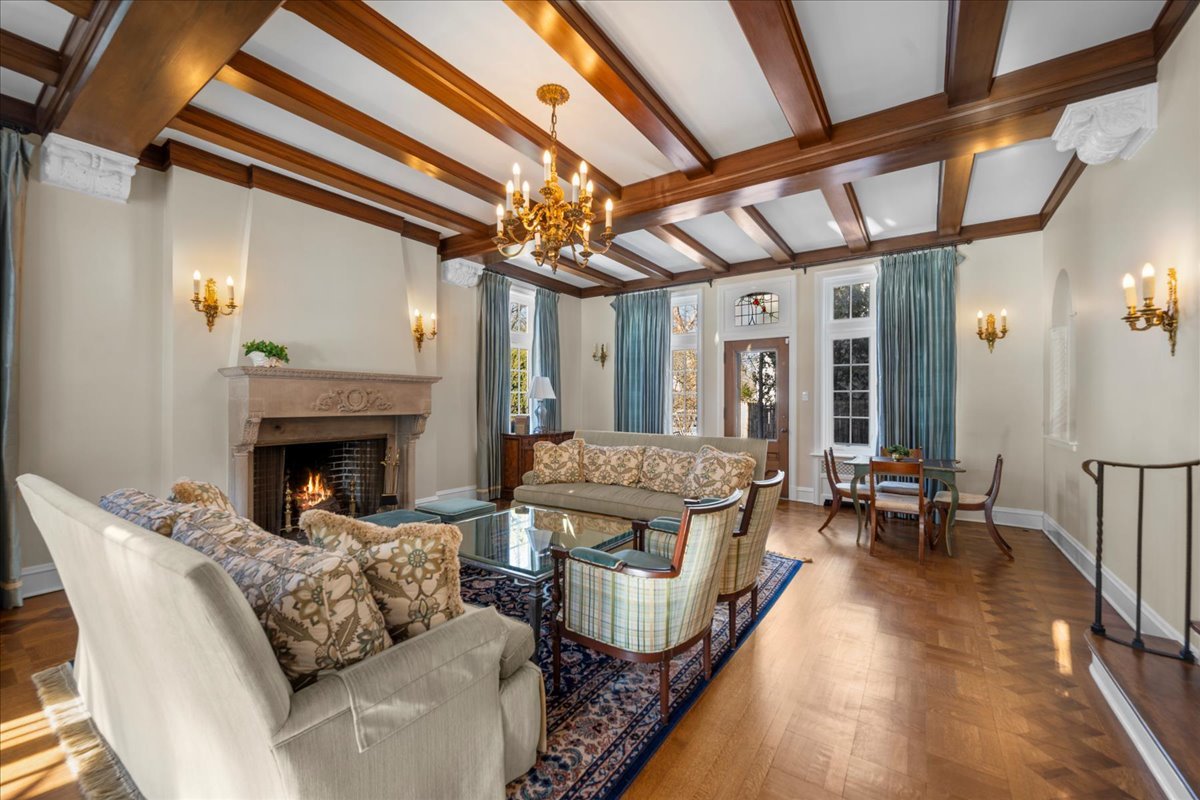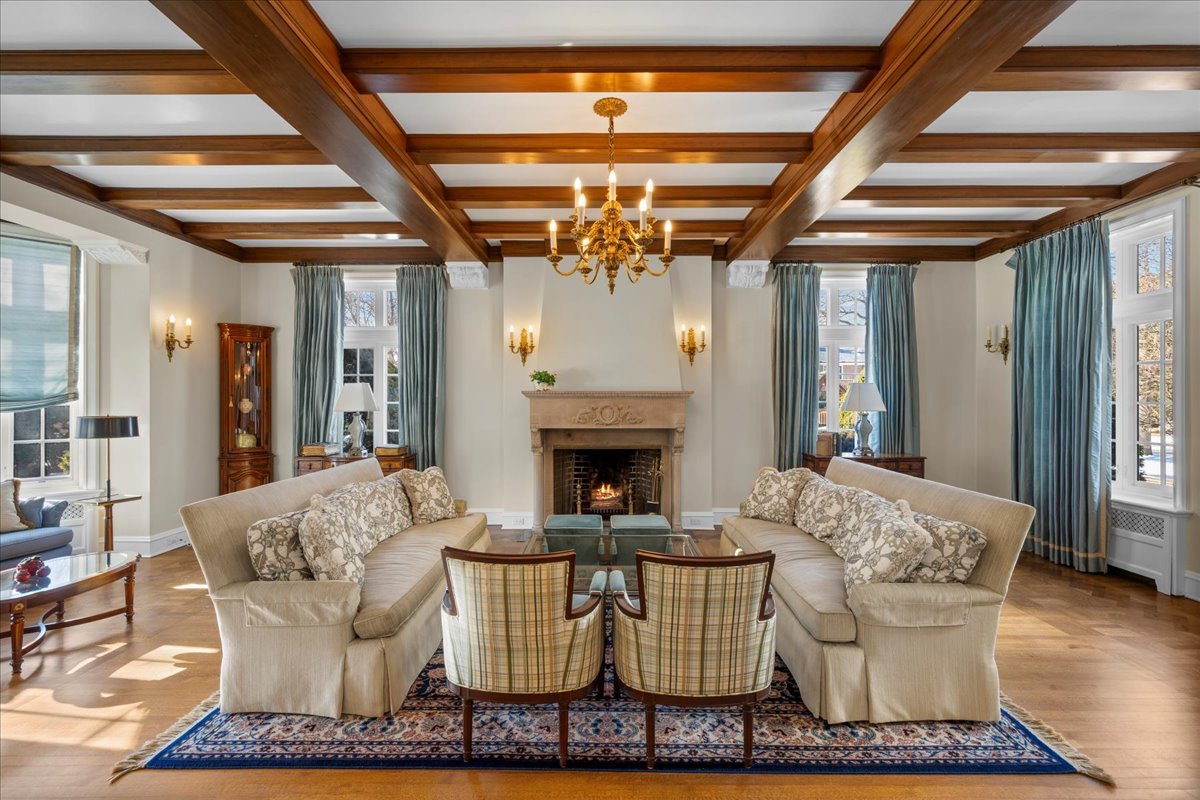 Sought after brick and limestone Georgian on 100 x 175 lot in East Kenilworth. tile roof on Timeless architectural details abound in this exceptional home in East Kenilworth. Plaster cast ceilings, leaded and stain glass windows are just some of the one of kind features that make this home unique in its construction and details. First floor features stunning two-story foyer with iron rail. A step-down living room includes inlaid wood floor, beamed ceiling and bay, and an elegant limestone fireplace. Handsome paneled library with fireplace. An open floor plan creates great spaces for family living and entertaining. Tile roof. Fabulous East location being the third house from Lake Michigan.