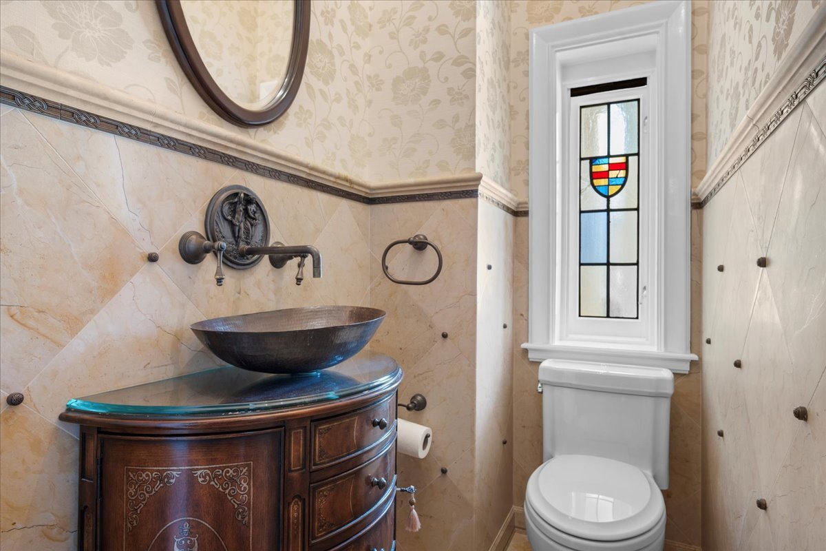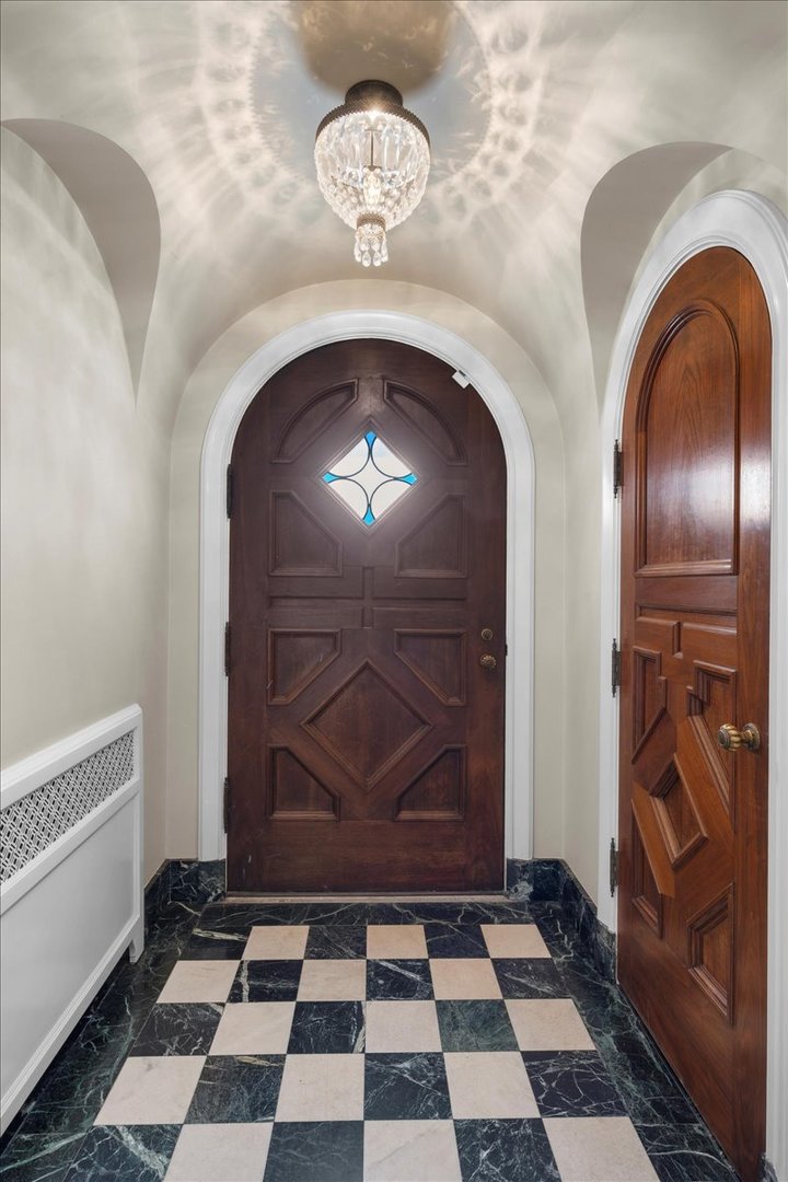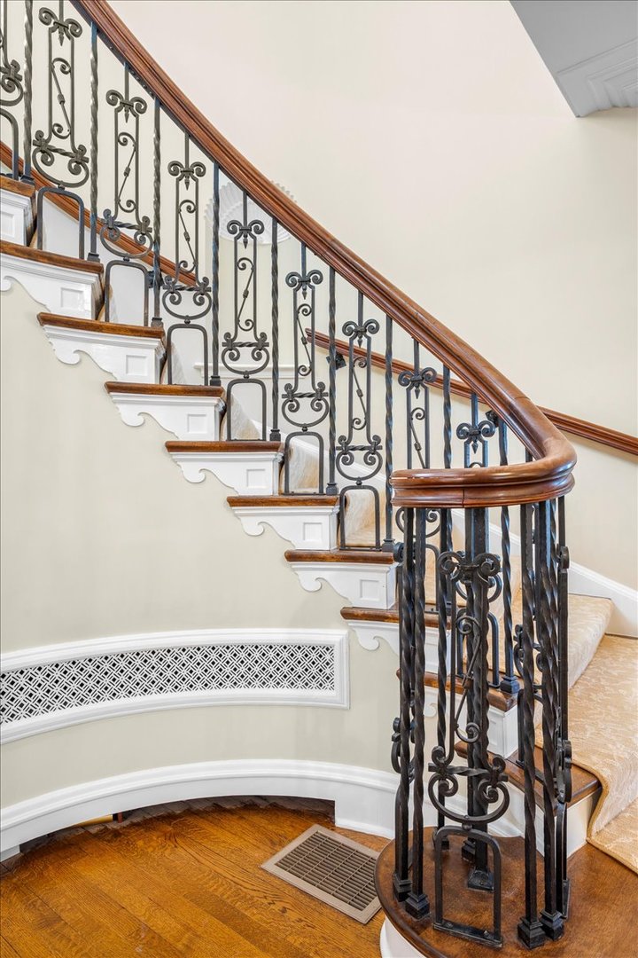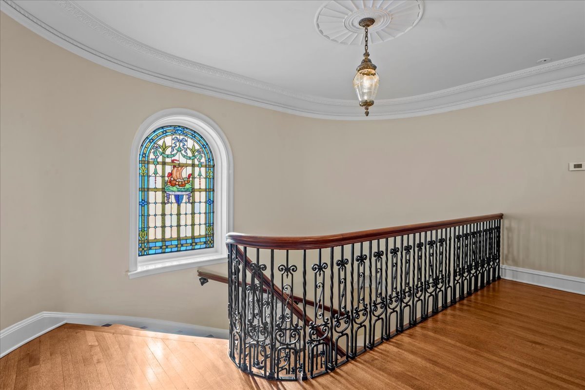 Sought after brick and limestone Georgian on 100 x 175 lot in East Kenilworth. tile roof on Timeless architectural details abound in this exceptional home in East Kenilworth. Plaster cast ceilings, leaded and stain glass windows are just some of the one of kind features that make this home unique in its construction and details. First floor features stunning two-story foyer with iron rail. A step-down living room includes inlaid wood floor, beamed ceiling and bay, and an elegant limestone fireplace. Handsome paneled library with fireplace. An open floor plan creates great spaces for family living and entertaining. Tile roof. Fabulous East location being the third house from Lake Michigan.