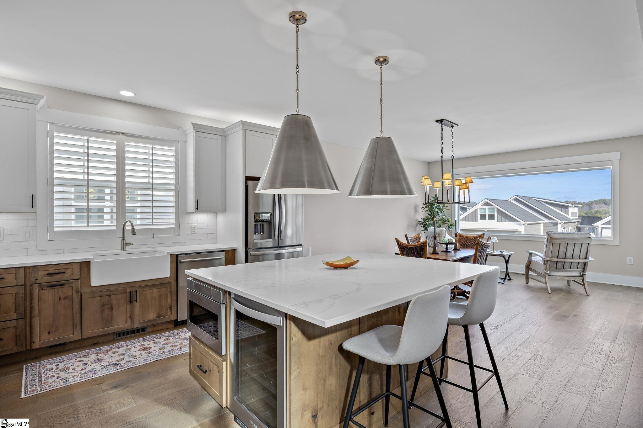 NEW BOAT SLIPS! Experience the ultimate Lake Keowee lifestyle in this beautifully appointed luxury lake home, perched atop The Ridge at Lake Keowee. Enjoy scenic lake views, refined finishes, and the ease of low maintenance living in a private, gated setting. Designed for relaxed lakeside living and effortless entertaining, the open-concept floor plan features a chefs kitchen with stainless steel appliances, gas range, built-in undermount microwave, tile backsplash, under-counter beverage refrigerator, oversized island, and spacious dining area. Wide-plank hardwood floors flow into the inviting living room and lake-watch keeping room. A screened, covered front porch with EZE-Breeze windows, privacy shades, and ceiling fan offers year-round enjoyment of the lake views. An elevator from the garage to the main level provides convenient access for groceries and daily living. The main-level primary suite features dual sinks, added cabinetry, a walk-in closet, and a large tiled walk-in shower. A second main-level bedroom easily serves as a guest room or private study. Upstairs, a generous second primary suite offers flexibility as a bonus room or media space. The private covered back porch is ideal for quiet evenings and relaxed barbecues. Residents of The Ridge enjoy access to the exceptional amenities of Backwater Landing, including walking trails, boardwalks, waterfront lodge, pool, beach area, fitness center, library, billiards room, and marina. A boat slip is available for lease with this home, and newly constructed slips are expected to be boat-ready soonmaking it easy to enjoy the emerald waters of Lake Keowee. Conveniently located near shopping, grocery stores, and medical facilitiesyet tucked away in a serene enclavethis home offers a rare balance of luxury, privacy, and convenience. The modified tax structure and low-maintenance lifestyle associated with the land lease make this an exceptional opportunity on Lake Keowee. The 2026 monthly regime is $660, which includes the land lease, landscaping maintenance, gated community access, pool, clubhouse, walking trails, fitness center, lighting, and more. There is no traditional HOA. Monthly fees vary based on individual usage, including boat slip rental, storage units, and whether the owner is a full-time or part-time resident. Please contact your real estate agent for a full breakdown of fees and services. Due to septic capacity, the home is suitable for two full-time residents, with visitors' welcome. Schedule your private tour today and experience luxury lake living at its finest.