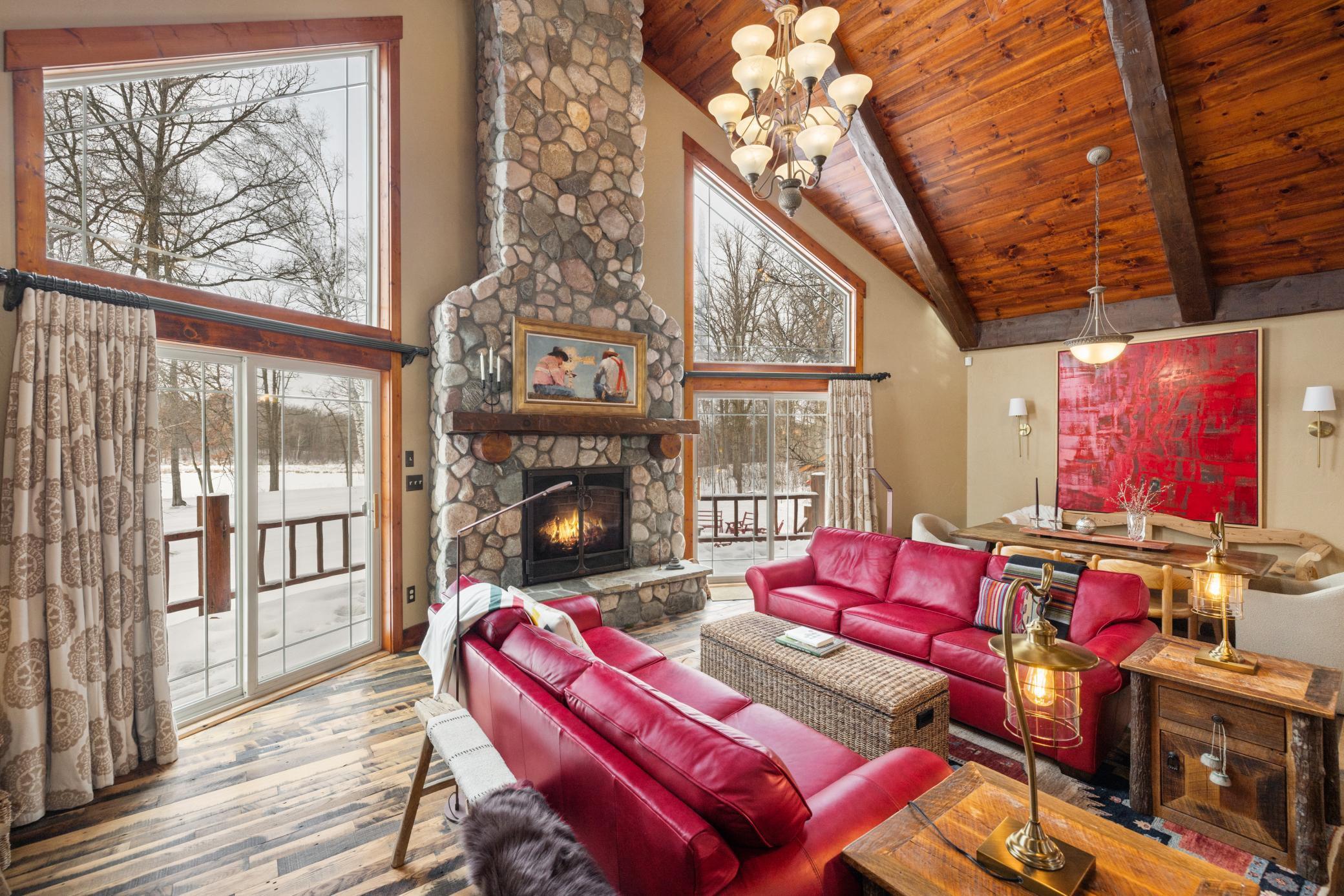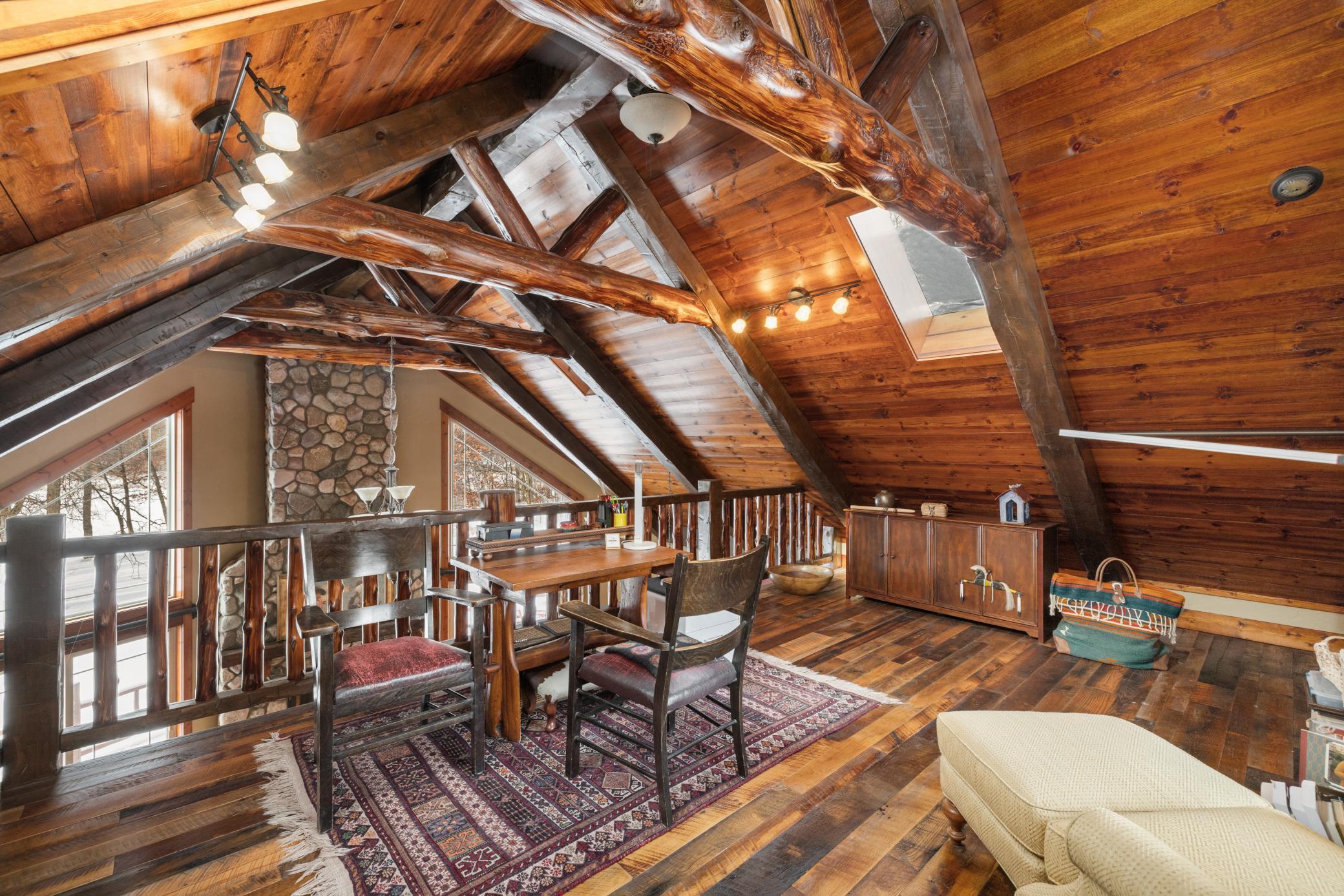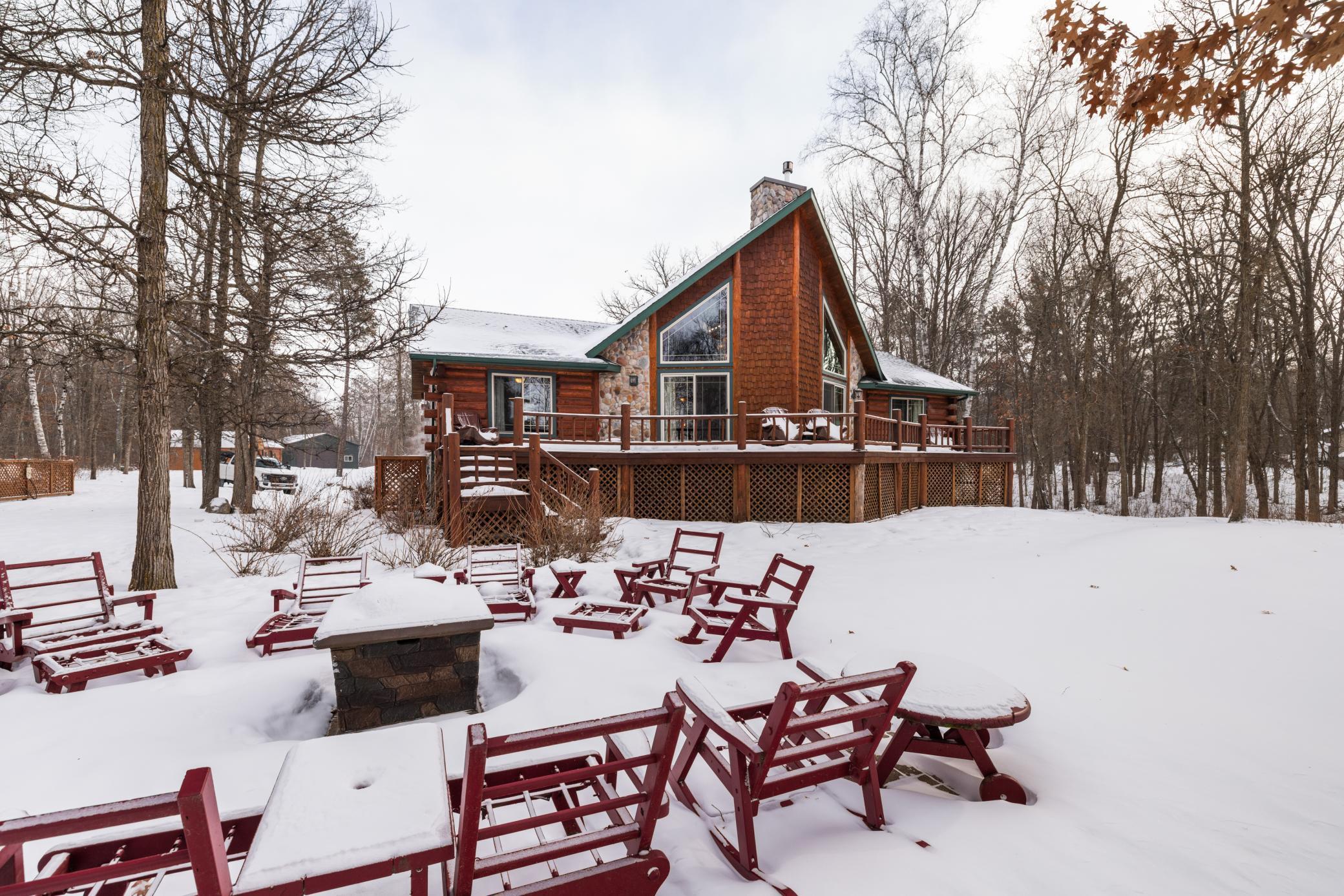 When you imagine your next Northern Minnesota adventure, this is it. Nestled on a tree-studded 5-acre lot, this gorgeous lakefront home offers the perfect blend of comfort and craftsmanship, featuring log beams and natural beauty.Featuring 3 bedrooms, 3 bathrooms, plus an office and loft, this home boasts a thoughtfully designed floor plan and a warm, inviting feel throughout. Custom reclaimed oak flooring flows through the main living spaces, while a stunning 22-foot stone fireplace anchors the great room, framed by lakeside windows with breathtaking views.Enjoy outdoor living at its finest with a lakeside deck, covered front entry deck, custom patio, and granite steps that lead down to the water's edge. The fully finished basement adds flexible living space, and the attached two-stall tuck-under garage offers abundant storage. Outbuildings include a 32x40 pole building, a one-of-a-kind garden shed with a sink and running water, an insulated shed, and a chicken coop.The kitchen features new stainless steel appliances, and the beautifully landscaped grounds attract abundant wildlife. Lord Lake has a multitude of fish species, including crappie, bluegill, northern pike, pumpkinseed, white sucker, and perch. Swans and loons frequent the lake, adding to the peaceful, retreat-like atmosphere.This is more than a home - it's a lifestyle.