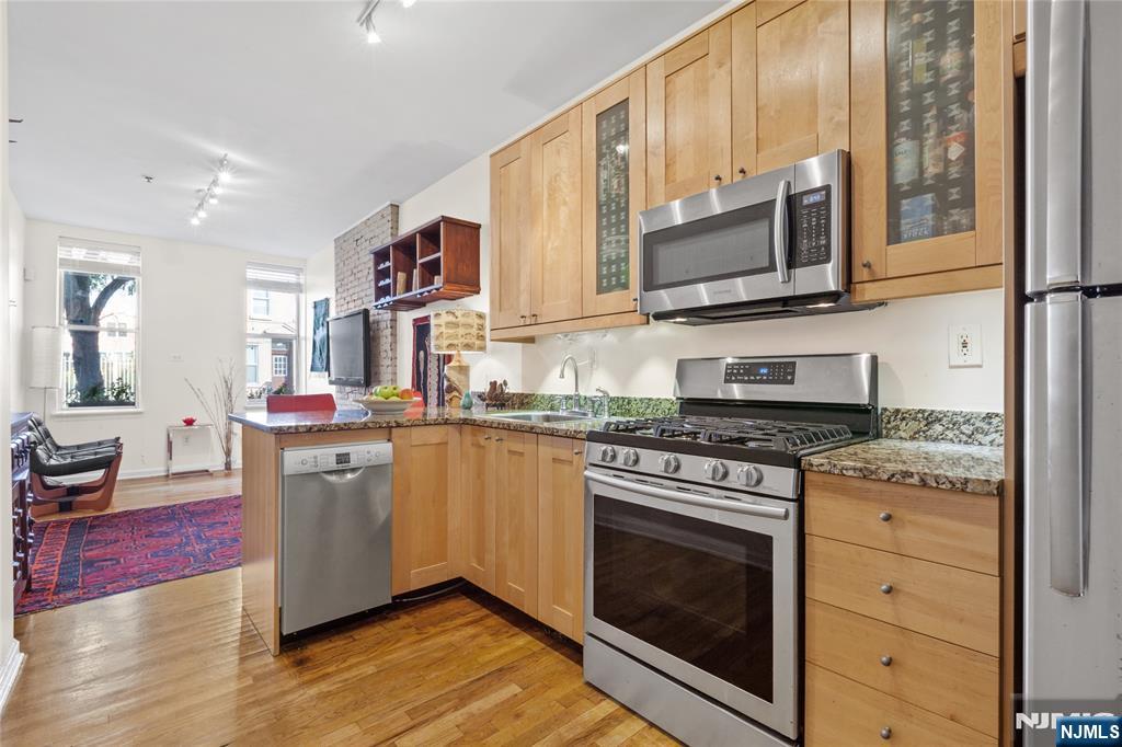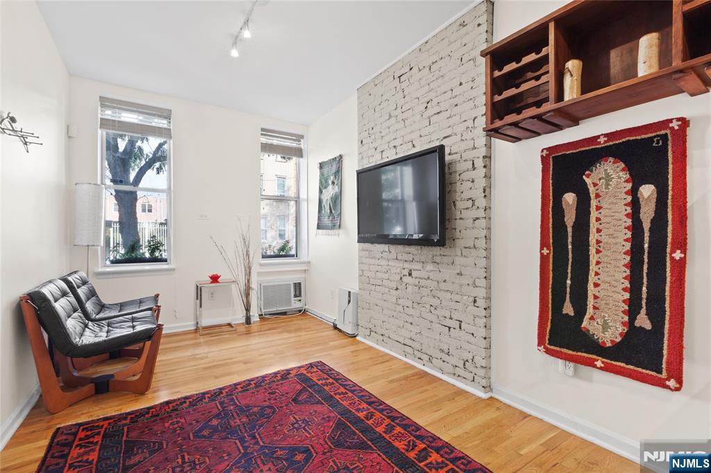 A rare find is this very special One Bedroom/One Bath offering a secluded private deck that descends to your very own private yard! This charming home is a rare Hoboken gem as it is a phenomenal way to get the kind of outdoor space youd only expect to get with a much larger condo or even a single family home. Private deck off of rear bedroom descends to patio and fence enclosed backyard haven. If you are a dog owner, barbeque specialist, or a serious garden or outdoor space lover you need not look any further! Part of the comfort and attributes that make this home appealing include stainless/granite kitchen with breakfast bar, attractive lighting, lovely and quiet comfortably sized bedroom overlooking your outdoor oasis. Also boasts hardwood floors throughout, charming exposed brick in living area and bedroom, new mini-split heat/cooling system, washer/dryer and storage in building. Among Hoboken's shops, eateries, parks, 1st Street pubs, nightlife, and nearby Sky Club gym. Easy commute- with buses to NYC, near 2nd St Light Rail, Blue Hop shuttle at your corner to PATH and NJ transit trains. A one bedroom home that has a lot going on at a superb downtown location near all Hoboken has to offer.