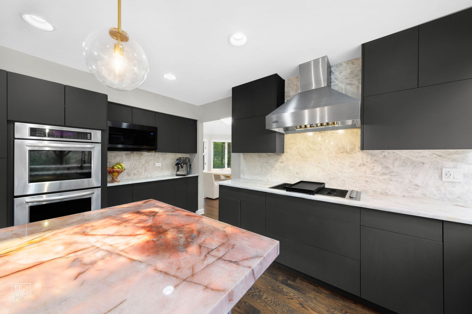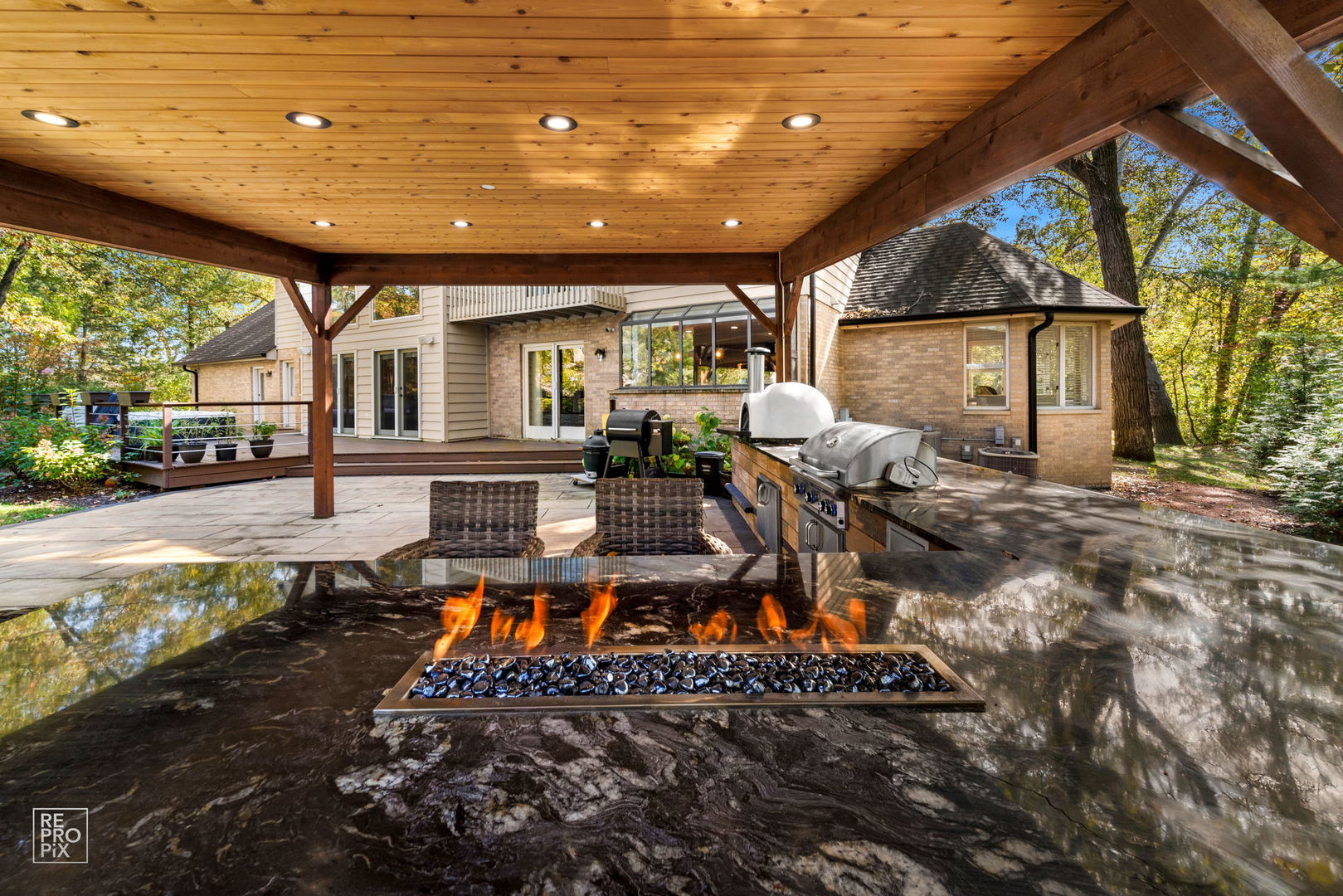 Welcome to your very own slice of paradise! Nestled on 1 acre in the heart of nature, this spacious 6 bedroom 7 full bathroom home is surrounded by lush woods and serene parks and offers ultimate privacy. Designed for those who appreciate both comfort and sophistication, this residence blends modern luxury with the tranquil beauty of the great outdoors. Step inside to find expansive, sun-drenched living spaces featuring soaring ceilings, large windows, and exquisite finishes throughout. Whether you're entertaining guests in the gourmet kitchen or curling up by the cozy fireplace in the grand living room- every corner exudes elegance. The kitchen features modern push-to-open cabinets, high-end appliances, build-in wine cooler, island with translucent quartzite counter top that lights up for mesmerizing visual effect, and atrium window for picturesque views of the wooded backyard. The main floor also offers office, second living room and in-laws bedroom with full bathroom. Gorgeous stairs lead to the second floor where 4 bedrooms located. The luxurious master suite features a steam shower, free standing bathtub, and the California custom walk-in closet with scenic views from the balcony. Every bedroom has its own bathroom and walk-in closet. Fully finished basement offers plenty of entreatment featuring wet bar and cinema room. The true highlight, however, is the extraordinary outdoor living area. With plenty of space for cooking and lounging this backyard is ideal for hosting gatherings or enjoying quiet moments of reflection. Featuring granite island with build-in modern fire pit, grill, and even pizza oven. For those seeking ultimate relaxation, jacuzzi and a separate sauna house with full bathroom and relaxation room awaits - your personal oasis where you can unwind in total peace all year round. Home backyards to the gorgeous park surrounded by lakes. Whether you enjoy hiking, cycling, or simply basking in the natural world, this location offers it all. Many upgrades in past few years: just freshly painted; roof, gutters and skylights 2025; fully resurfaced driveway 2025; second floor HVAC 2025, first floor HVAC 2021; built-in high-end stereo system throughout 2023, fully remodeled kitchen with high-end appliances and quartzite counter tops 2022, backyard fully remodeled and landscaped 2022 (250k investment), sauna house 2023, windows 2022, new steam shower system 2022.