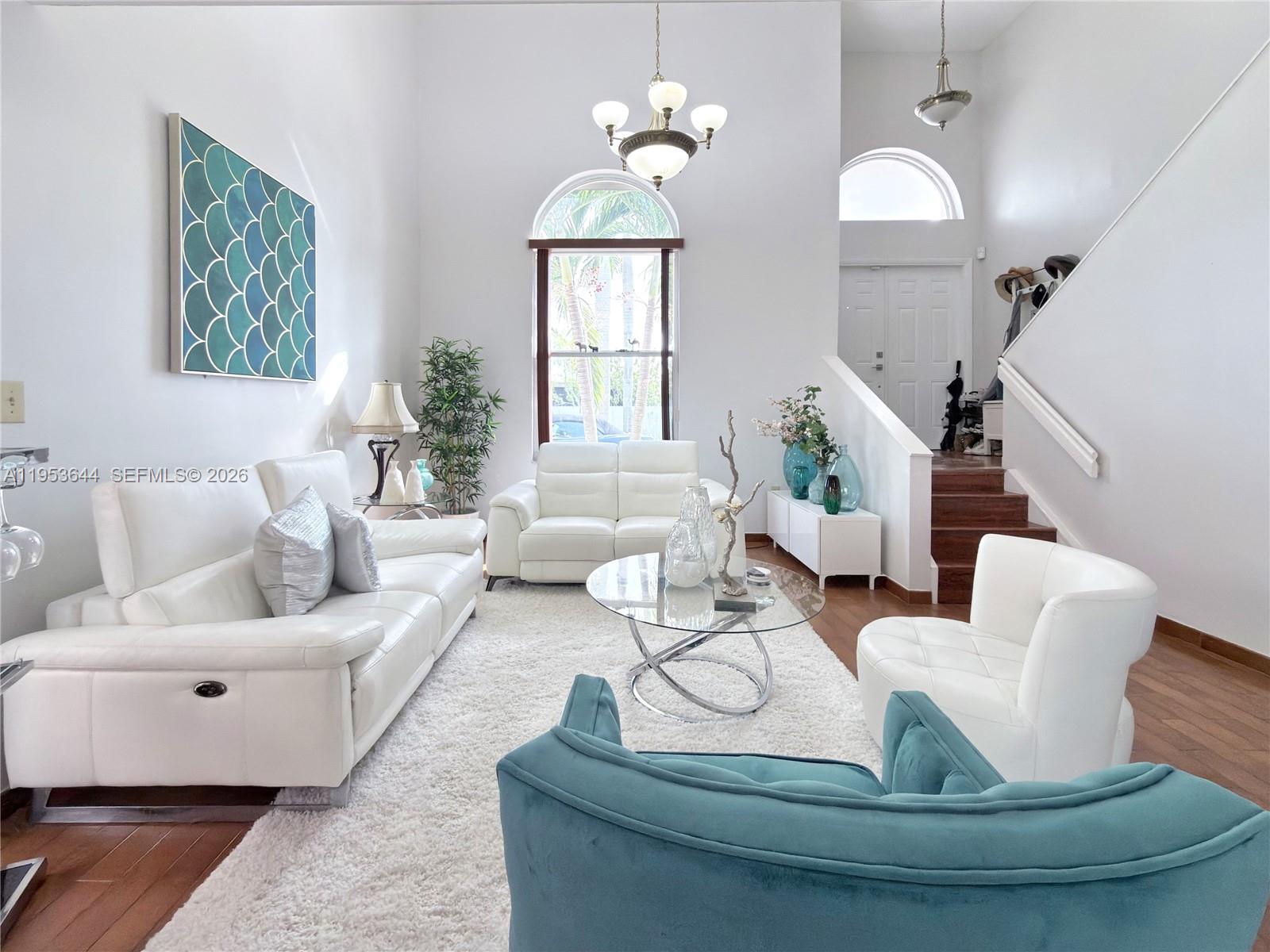 Stunning 4-bedroom, 3-bathroom residence featuring a convenient first-floor bedroom with a full bathroomideal for in-law quarters or potential efficiency for additional income. The home boasts soaring ceilings and abundant natural light throughout.Recent upgrades include a newer roof (2019) and A/C (2014). Equipped with full impact windows, an impact garage door, and additional electric shutters for enhanced safety. The kitchen showcases beautiful granite countertops.This home includes a spacious 2-car garage and a generous backyard with low-maintenance synthetic grass, a metal fence, and a side awning, perfect for outdoor living and entertaining. Located in a No-Flood zone within a quiet residential neighborhood.Enjoy serene Lakeview and access to the community pool and fully equipped gym. The community offers a very low and stable HOA, with no increases in over 10 years. Close to excellent schools, parks, and just minutes from the Turnpike, Dolphin Mall, and other major shopping and dining destinations.
