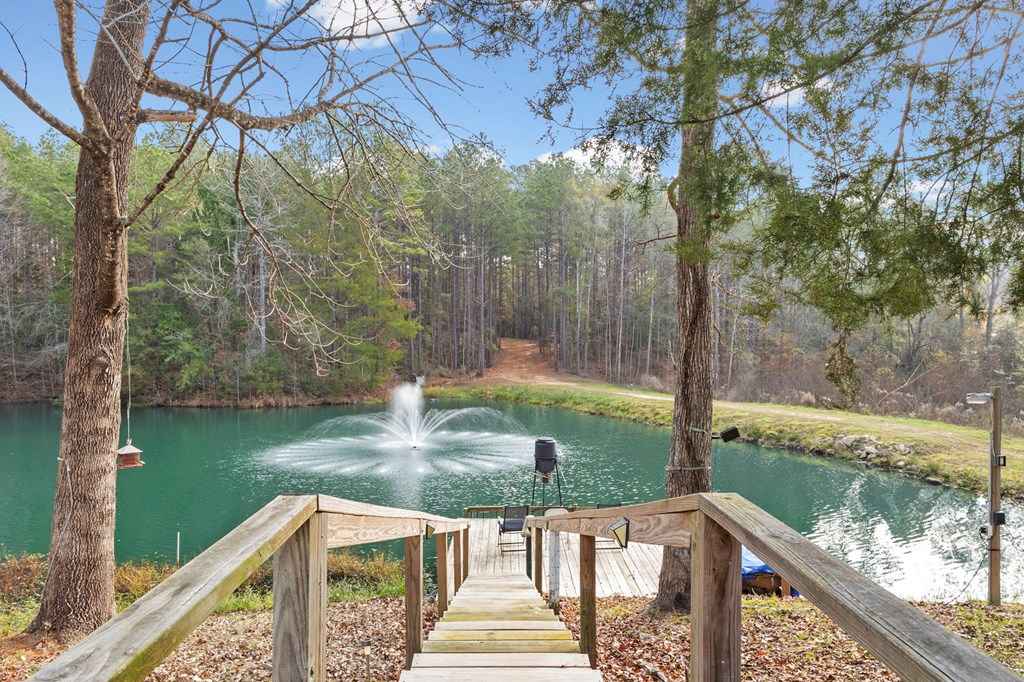 33+ unrestricted acres of premier East Texas recreational property offering the ultimate private retreat. The main residence overlooks a stunning clear-water lake and features 4 bedrooms, 2.5 baths, with three bedrooms designed for bunk-style accommodations ideal for hosting family & guests. A separate guest house provides space for a minimum of 4 beds, a small kitchenette, & full bath. The garage includes an attached apartment with living area, space for kitchenette, full bath, & oversized bedroom suitable for multiple beds. All structures enjoy scenic views of the pond with a beautiful fountain, private pier, & outdoor entertainment pavilion overlooking the water. 2 gated entrances provide excellent access; the second entrance off the highway includes water and electric. The property showcases rolling terrain, mostly wooded acreage, extensive trail system, multiple deer stands & feeders, & abundant wildlife. A true hunter's paradise or secluded getaway in peaceful rural surroundings.