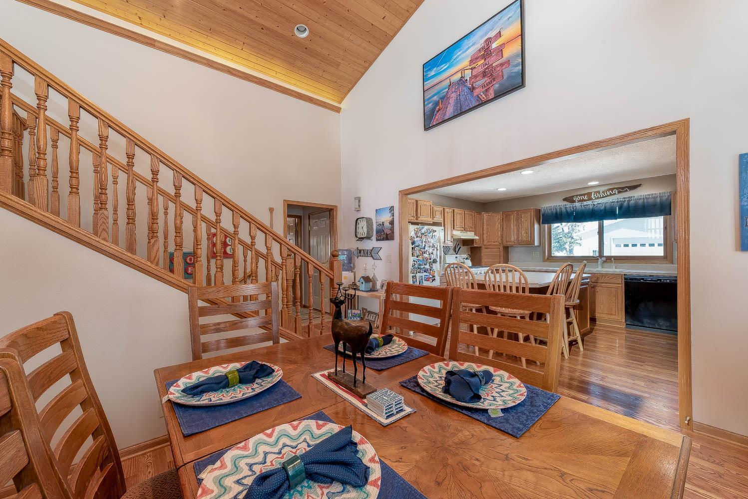 Welcome to one of the most desirable stretches of shoreline on Lake Francis, located on prestigious Willow Point Dr. Known for its premier water quality and vibrant lake lifestyle, this property offers breathtaking sunset views and the ultimate setting for making memories. Just steps from your door, enjoy lake days at the dock, relaxing in the sun, and evenings taking in the captivating sunsets over the water. The home features 3 bedrooms, including a spacious primary suite with walk-in closet and private bath complete with soaking tub and separate shower. Vaulted wood-finished ceilings highlight the living room and overlook the dining area and eat-in kitchen, creating a warm and inviting atmosphere. The main level also offers a generous pantry, laundry room with bath, and convenient access to the attached 2-stall garage. The lower level provides additional living space with a cozy gas fireplace and bar areaperfect for entertaining. Two additional bedrooms, a full bath, and a large utility/storage room complete the lower level. Outdoor amenities truly set this property apart. A 35 x 32 detached garage provides ample room for lake toys and storage. Enjoy stunning lake views from the deck off the living room, and appreciate the charm and function of the wraparound porch with covered entry. A new hot tub is ready for year-round enjoyment. Offered Fully Furnished. The dock and electric boat lift are also included. Recent updates include; deck and stairs, powered deck awning, hot tub, AC, water heater, garbage disposal, dishwasher, garage refrigerator, and extended dock with bench and safety railing. Making this a true turnkey lake retreat. Experience premier lakeshore living on Willow Point.