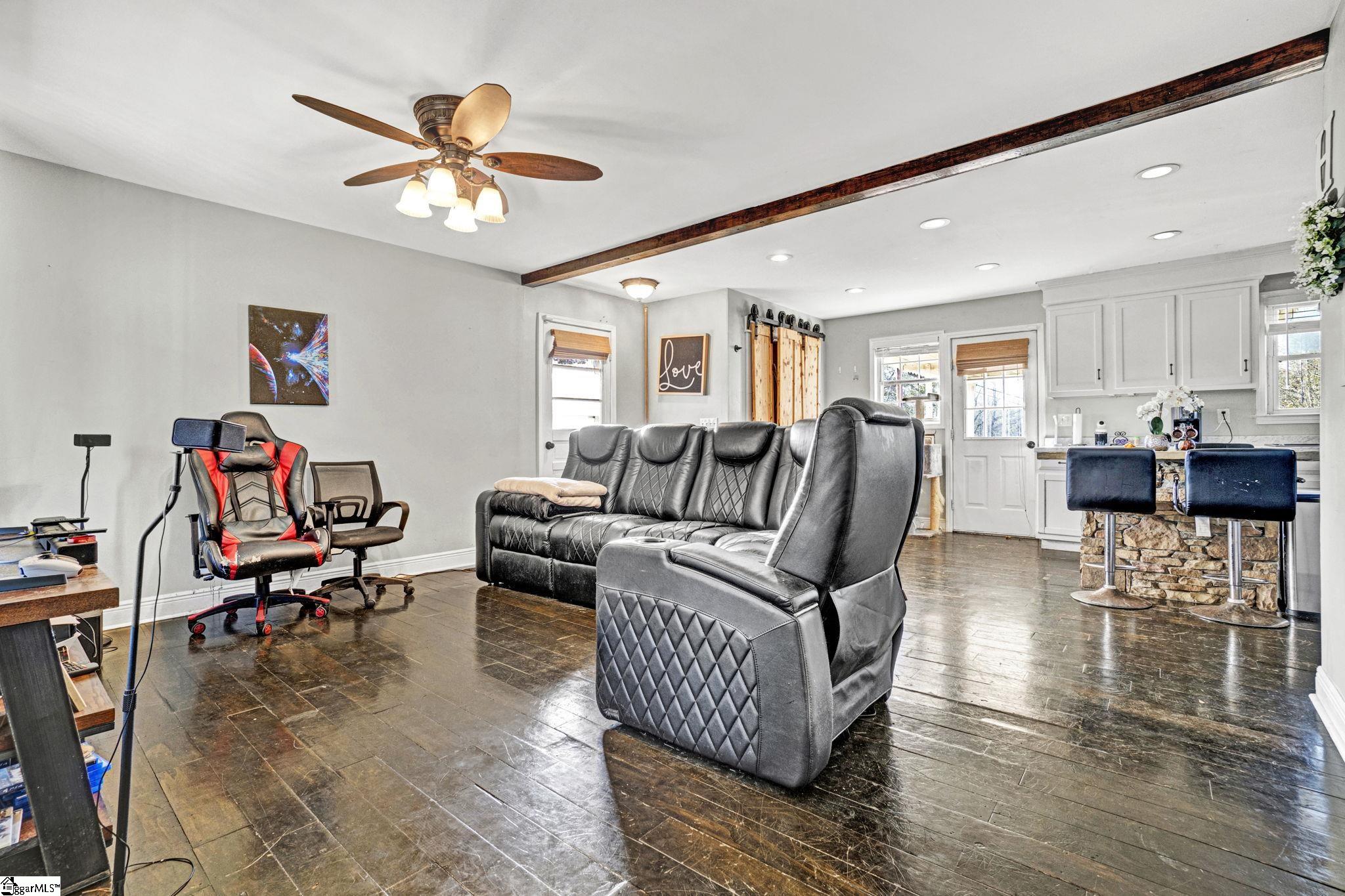 Welcome home to this cozy 3-bedroom, 1.5-bath ranch home set on just over half an acre on a corner lot with no HOA. This property offers comfortable one-level living with plenty of outdoor space to enjoy. A wide front porch creates a welcoming entry and a great spot for relaxing. Inside, the home features an open layout connecting the living room and the eat-in kitchen, making the space feel inviting and functional. The kitchen includes stainless-steel appliances, recessed lighting, and direct access to the covered back deck. A side entrance provides quick access to the detached carport. Down the hallway is a full bath along with two secondary bedrooms that offer flexible use with the primary bedroom located at the end of the hall. The home features real hardwood floors adding charm and character to the space. Neutral paint tones and practical storage throughout make the home easy to personalize. The covered back deck expands your living space outdoors and is perfect for grilling or gathering with friends. The large yard offers plenty of room for gardening, play, or future projects, and two outbuildings provide additional storage or hobby space. Just minutes from Travelers Rest and the Swamp Rabbit Trail this home offers the location you want with the space to make it your own. With a little TLC, this property can truly shinemaking it an excellent option for both homeowners and investors alike. Don't miss out on this opportunity and schedule your private showing today! Down the hallway is a full bath along with two secondary bedrooms that offer flexible use with the primary bedroom is located at the end of the hall. The home features real hardwood floors adding charm and character to the space. Neutral paint tones and practical storage throughout make the home easy to personalize. The covered back deck expands your living space outdoors and is perfect for grilling or gathering with friends. The large yard offers plenty of room for gardening, play, or future projects, and two outbuildings provide additional storage or hobby space. Just minutes from Travelers Rest and the Swamp Rabbit Trailand an easy drive to downtown Greenvillethis home offers the location you want with the space to make it your own. Don't miss out on this opportunity and schedule your private showing today! Home is being sold AS-IS.