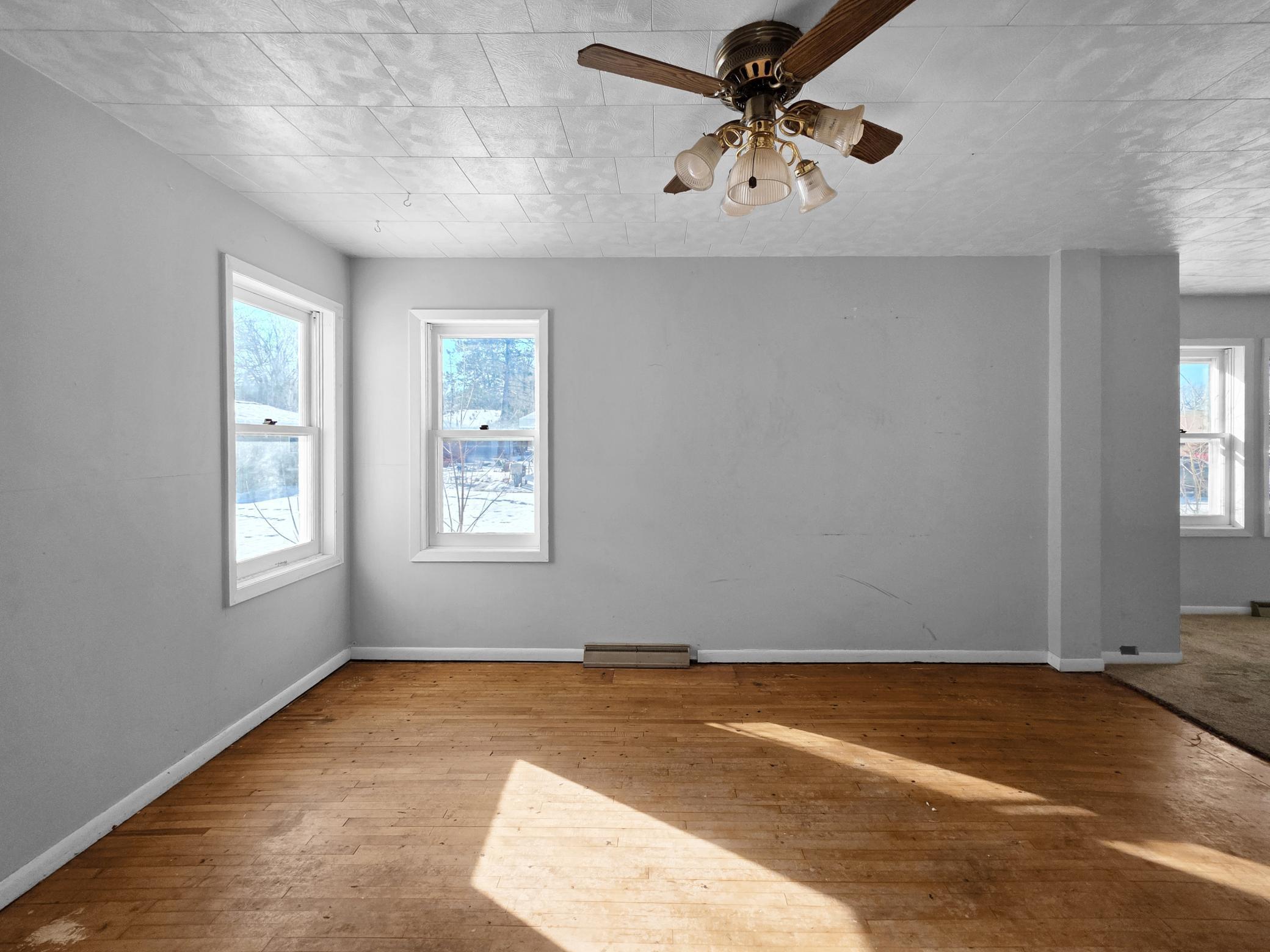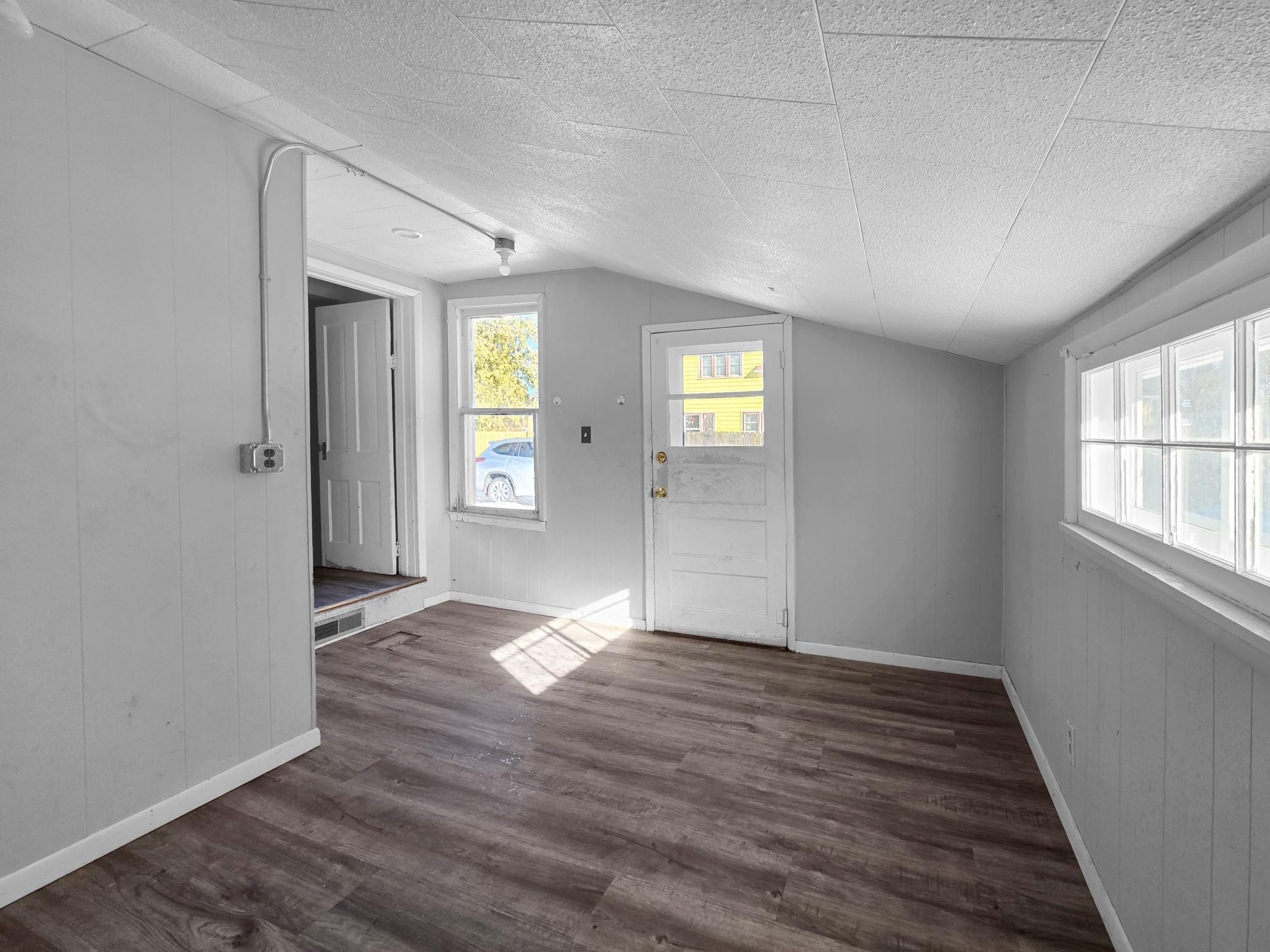 2-bedroom, 1-bath home situated on a 0.34-acre lot in New York Mills. The property offers over 1,000 finished square feet, a detached 1-stall garage, enclosed front porch, and rear mudroom entry. Interior features include hardwood floors along with spacious living and dining areas. Unfinished basement provides additional storage space. City water and sewer services are connected. Convenient in-town location with access to local amenities, schools, and employment centers.