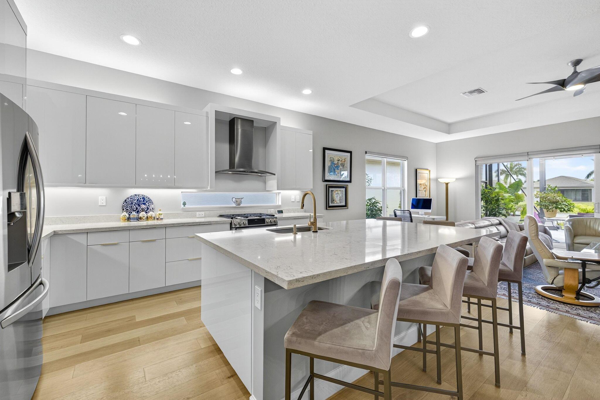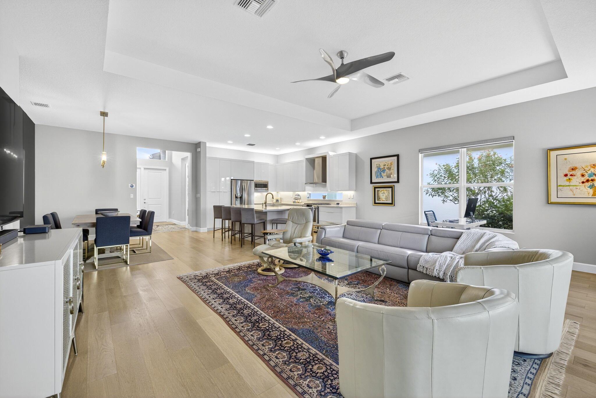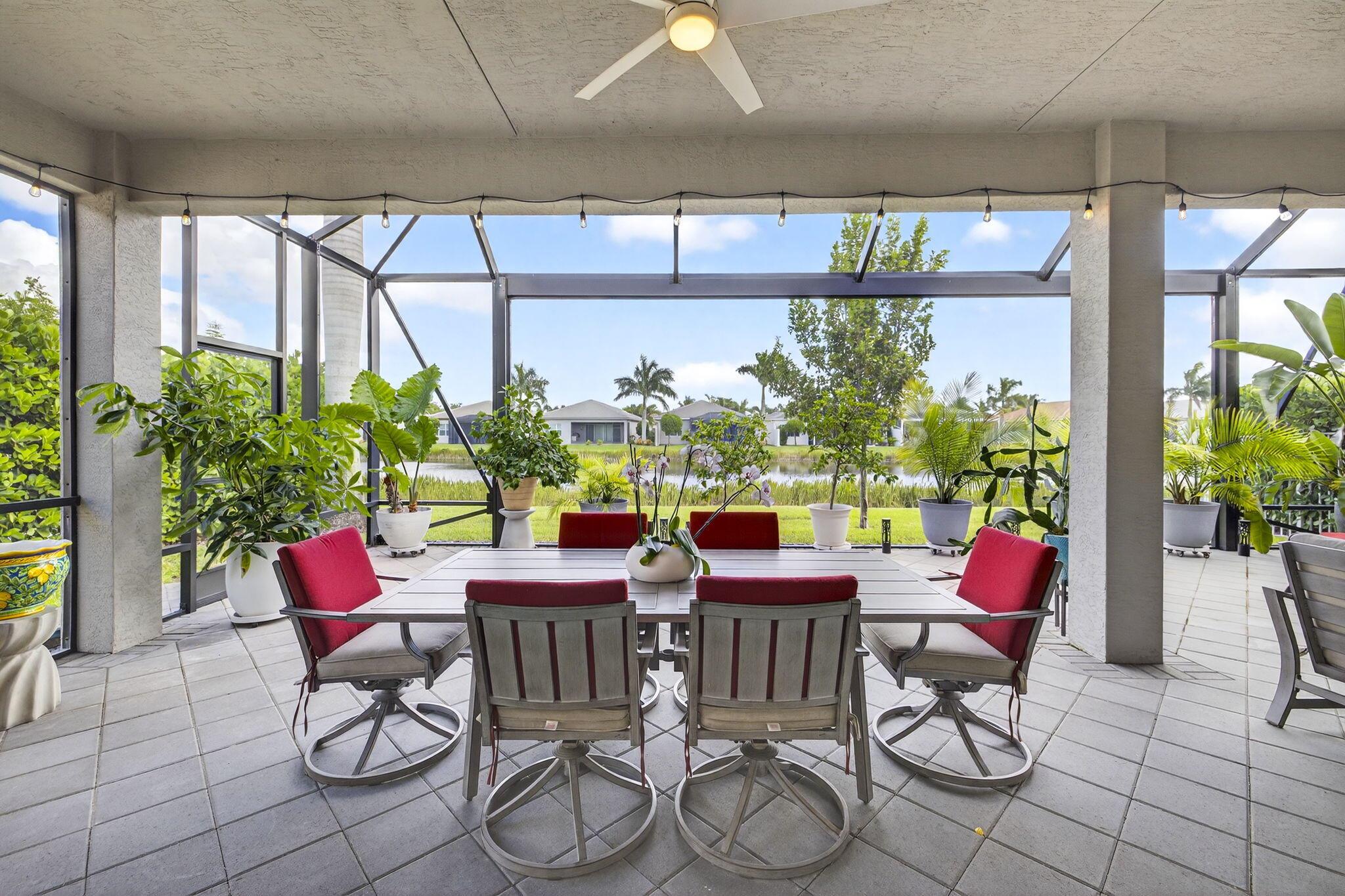 Welcome to this elegant 3 bedroom, 3 bath residence nestled in one of the areas most desirable active adult community of Valencia Sound. Thoughtfully designed for comfort, convenience and style, this home offers a perfect blend of sophistication and low maintenance living. Step inside to find an open concept layout with volume ceilings, sun filled living spaces and high end finishes. The gourmet kitchen features upgraded cabinets, counter tops and stainless steel appliance. The oversize kitchen island is ideal for entertaining or creating a cooking masterpiece. The ensuite guest area is ideal for short stay or long stay guests. Enjoy year round relaxation in the expanded outdoor living space complete with picture screen viewing screen enclosure.