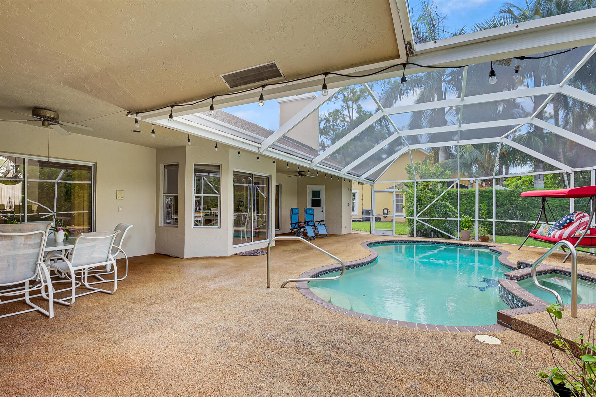 Discover this spectacular 4 bedroom 3.5 bathroom home located in the heart of Wellington.The island is a private community enclave of less than 100 homes set on lake of Wellington. The spacious home features fresh exterior and interior paint, a bright and airy layout and an abundance of natural light. Cozy nook area with great outdoor views.The beautiful kitchen showcases top of line appliances and elegant countertops.Step outside to your private oasis with a heated saltwater pool.Could-de-sac with entrance thru the main road allowing our home to have the largest front yard in the neighborhood.Very low HOA and best schools in the area. Upgrades include new sprinkles pomp, new A/C, new screened patio. Roof 2016Schedule your private tour today!!