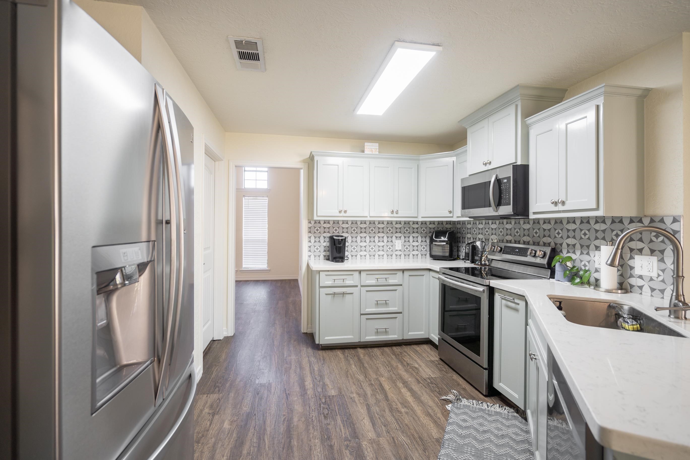 Location, location, location! This charming 3-bedroom, 2-bath home sits on 0.63 acres steps away from Hamshire-Fannett High School. Inside, you will find an open and inviting floor plan with quartz countertops, a spacious kitchen, and plenty of natural light throughout. The primary suite offers a relaxing retreat with a private bath and ample closet space. Enjoy peaceful mornings or evenings on the back patio overlooking the large open yard. Ready for your own design or fence addition. With its convenient location, modern finishes, and country feel, this one checks all the boxes.