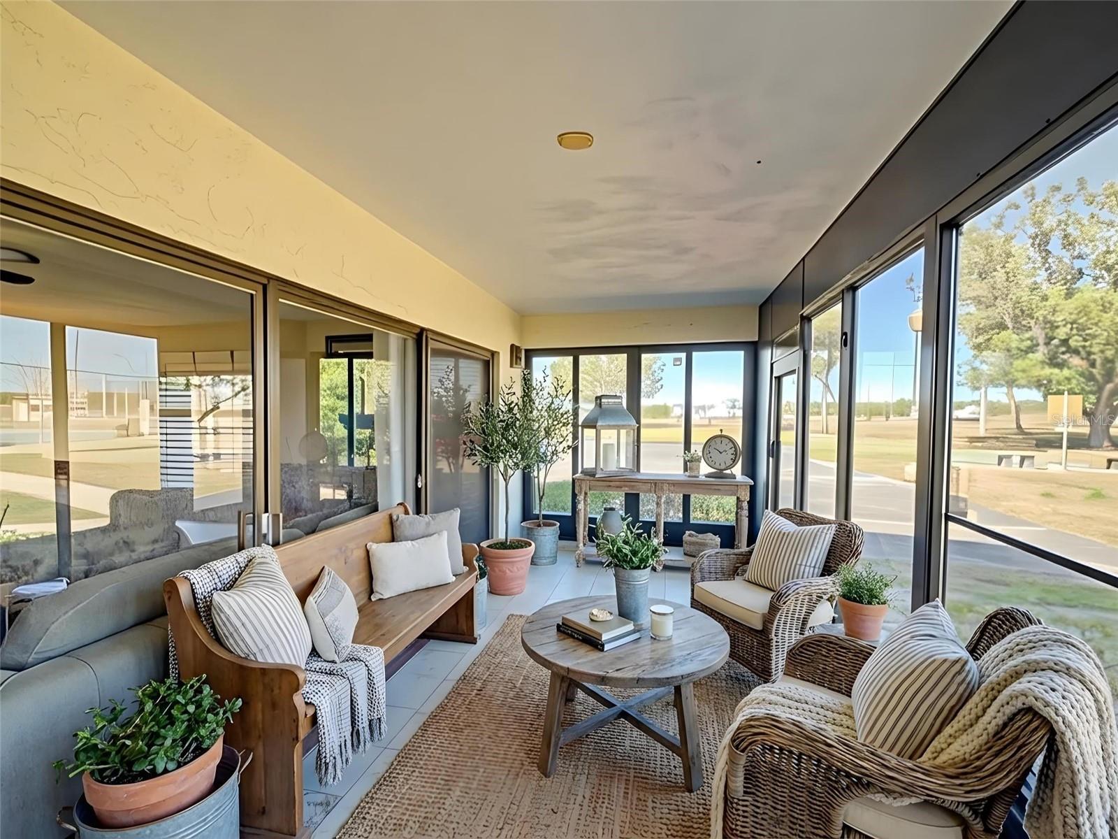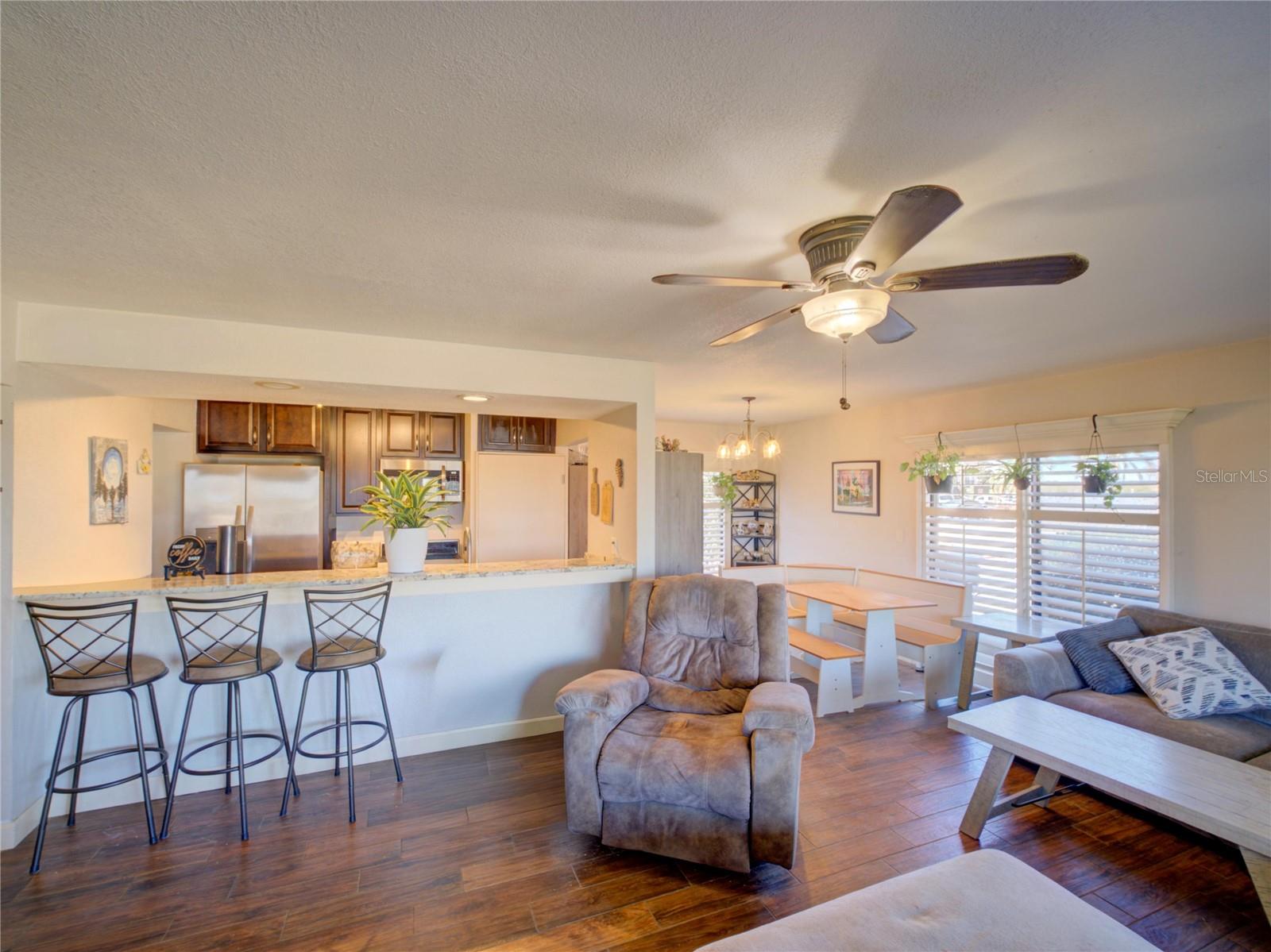 One or more photo(s) has been virtually staged. Welcome to this beautifully updated 1,120 sq. ft. condominium offering ground-floor convenience and modern style in the serene La Casa community of Lake Wales. This end unit provides the perfect blend of open-concept living and low-maintenance comfort.The heart of the home features a sleek kitchen with stainless steel appliances, granite countertops, and a wide breakfast bar that overlooks the main living area ideal for entertaining or everyday living. Modern wood-look tile flooring runs throughout, creating a clean, cohesive, and contemporary feel.Both bedrooms are generously sized with ample closet space, making this an ideal primary residence, investment opportunity, or stress-free seasonal retreat. The primary bathroom features a walk-in shower while the second bathroom offers a bathtub.One of the standout features is the massive, fully enclosed patio space. Lined with floor-to-ceiling windows, this versatile area serves as a second living space perfect for relaxing, entertaining, or enjoying Florida sunshine year-round.Living at La Casa means enjoying a resort-style lifestyle without the hassle. The monthly HOA fee covers water, sewer, trash, and exterior maintenance. Residents enjoy access to a sparkling community pool, clubhouse, tennis courts, and shuffleboard all just a short walk from your back patio.Conveniently located just outside city limits, youre minutes from local shopping, dining, and have easy access to US Hwy 27 and State Rd 60.This move-in-ready unit is priced to sell and ready for its new owner. Schedule your private tour today. One or more photos have been virtually staged.