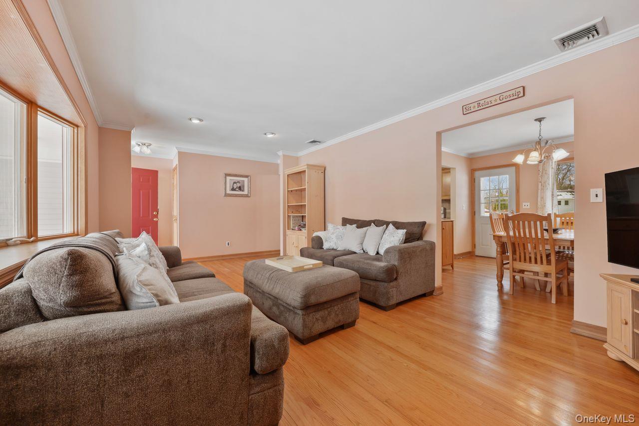 Welcome to this pristine and completely turn-key 3 bedroom, 2 full bath ranch set on a level ½-acre corner lot . Lovingly maintained and thoughtfully updated, this home offers exceptional comfort, charm, and convenience. A welcoming front porch sets the tone as you step inside to gleaming hardwood floors throughout. The fantastic floor plan offers a spacious living room featuring wood-burning fireplace and a large picture window that fills the space with natural light. The dining room with door to deck flows seamlessly into the updated eat-in kitchen, complete with granite countertops and ample cabinets perfect for everyday living and entertaining. Down the hall, you will find the generous primary bedroom with two closets for ample storage, updated hall bathroom and two additional bedrooms, all nicely sized and move-in ready. The finished lower level expands your living space with a large family room, an office area, a second full bathroom, laundry, door to yard and direct access to the 2-car garageideal for work, play, or extended living needs. New A/C in 2025 and MANY other recent improvements! While the property is currently snow-covered, spring brings beautiful perennials and vibrant landscaping. A wonderful deck and spacious yard provide the perfect backdrop for outdoor relaxation, play, and gatherings once warmer weather arrives. Lake Rights to Tonetta Lake Private Beach for Swimming, Kayaking and More! Located just 1.5 miles to the train and I-84 and only 3 miles to I-684, this home is a commuters dream with easy access to everything. Located in the heart of the community, close to Shopping, Schools, Restaurants and MORE! Truly nothing to do but move right in!