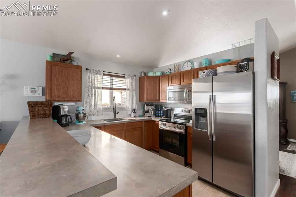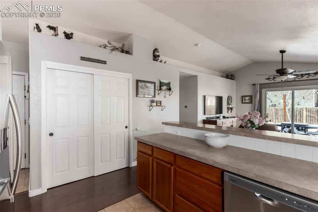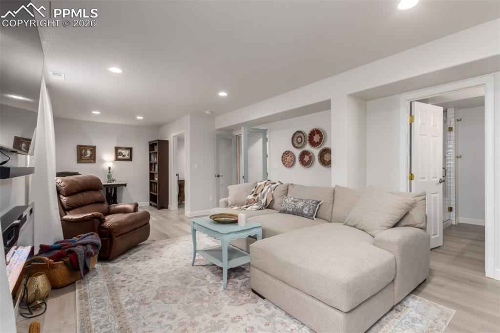 This beautifully remodeled single-story home is now on the market! Thoughtful upgrades in a quiet setting just off the main drag and near a neighborhood park. Curb appeal shines with easy-care landscaping, a 2-car attached garage, a brand-new roof, solar panels, and a finished, fenced backyard with a sprinkler system and newly added garden beds. Inside, vaulted ceilings and all-new higher-end LVP, Pergo, or tile flooring flow throughout the home, complemented by a soothing color palette. The cozy living room invites relaxation, while the family room features a charming bay window that fills the space with natural light. Immaculate kitchen offers stainless steel appliances, honey oak cabinetry, ample counter space, a two-tier peninsula with a breakfast bar, and a pantry. The finished basement expands the living space with French doors that open seamlessly to an extra family area! Downstairs, youx2019;ll find a nice-sized bedroom, a full bathroom with a tiled shower and dual-sink vanity, a dedicated laundry room, and an unfinished gym that can easily be converted into a fifth bedroom if desired. Tha k you fornyour time and understanding. This home truly offers it all! Act now!