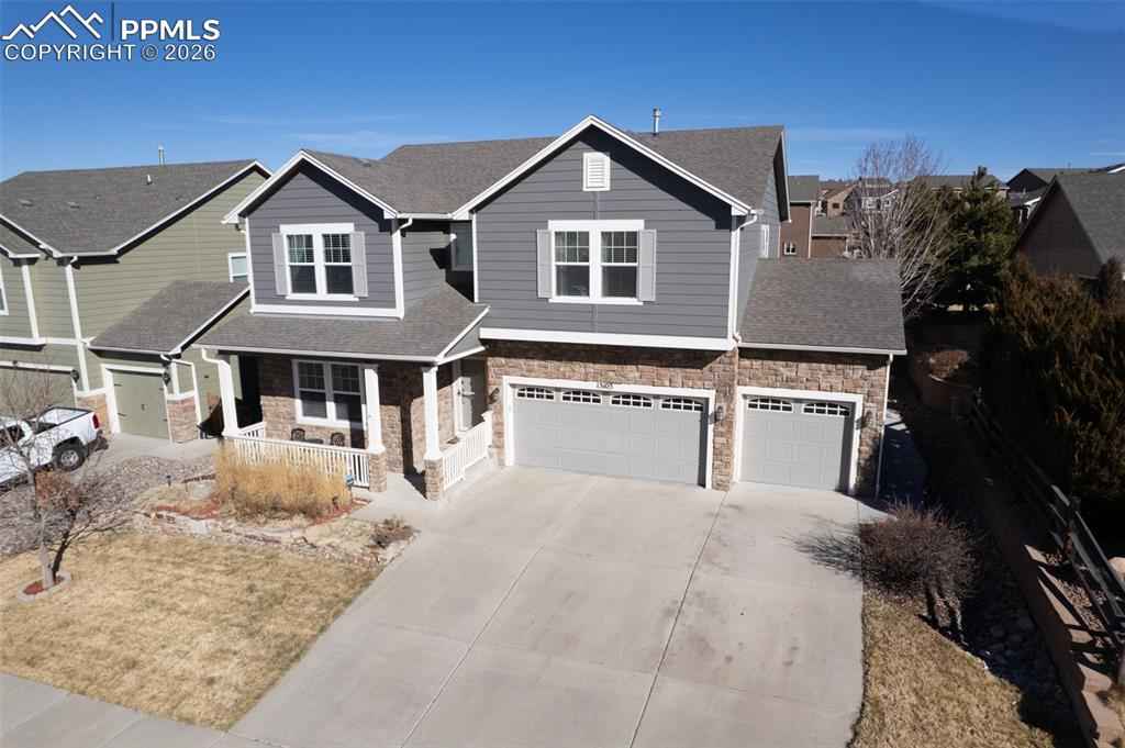 Welcome Home to one of the most beautiful and meticulously maintained properties in Northgate! Located just minutes from all of the Shopping, Entertainment and Restaurants on Northgate Blvd OR Interquest Parkway- this home is really located in a prime position to take advantage of all the newest and best that North Colorado Springs has to offer. You are minutes to Bass Pro, the Ford Amphitheater, or the US Air Force Academy. This home was built in 2012, and features a ton of curb appeal with charming porch, three car garage and meticulous landscaping. The home's interior makes a dramatic first impression, with a wide entry and Luxury Vinyl flooring that runs throughout the majority of the Main Level, including the dedicated Study. The heart of the home is the Gourmet Kitchen. Featuring staggered-white cabinets with crown molding, a huge kitchen pantry, quartz countertops, stainless steel appliances and stone backsplash. The home features a very charming and stylish farmhouse lighting in the Kitchen and Dining Area, and the personality in this house continues into the Great Room, with a stone surround and Hickory mantle. The Upper Level offers a giant Loft area, and a Master Suite truly fit for a King. It features a 5 piece bath with soaking tub and separate shower, as well as a huge walk-in-closet. There are three bedrooms total on the Upper Level, and two more in the finished Basement. You'll also find a large Rec Room- perfect for a theater room and pool table. This home is clean as any whistle you'll find, and must be seen in person to be truly appreciated. Welcome Home.