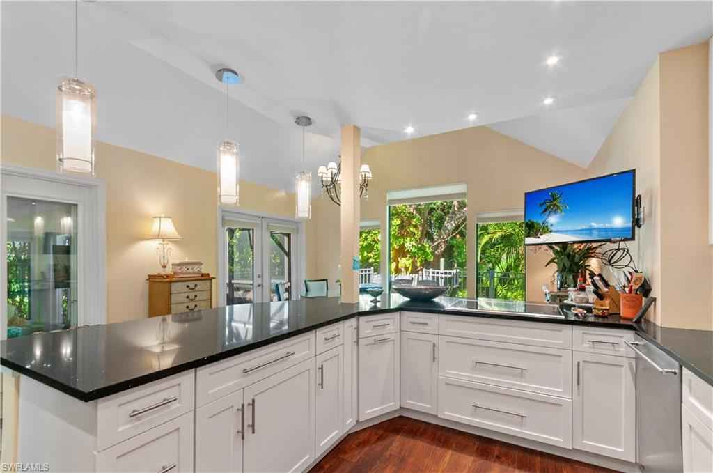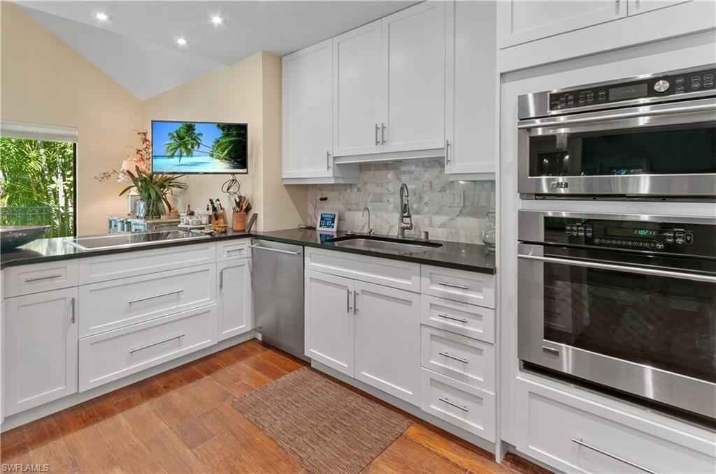 BENT PINES VILLAS IN NAPLES IS A PRIVATE SANCTUARY IN THE HEART OF NAPLES TUCKED AWAY WITH LUSH LANDSCAPING AND PATHS TO WALK TO THE LAKE AND POOL. 2 STORY VILLA WITH A MAIN EN-SUITE BEDROOM ON THE 2ND LEVEL WITH NUMEROROUS CLOSETS AND STORAGE AND EXQUISITE REVOVATED BATHROOM SPA-LIKE. FIRST FLOOR IS LIVING ROOM, GLASSED IN GARDEN ROOM, LARGE BEDROOM, DELIGHTFUL SITTING ROOM/ OFFICE, FULL BATHROOM, AND LARGE GOURMET KITCHEN AND DINING ROOM OVERLOOKING FROM LARGE WINDOWS THE BACK DECK AND MATURE TREES, FERNS, AND FOILAGE. SCREENED IN PORCH AND OPEN DECK FOR DINING AND RELAXING IN NATURE. FURNISHED EXQUISITE RENO STYLE WITH COMFORT AND DESIGN FOR THIS UNUSUAL VILLA IN THE MIDDLE OF NAPLES, CLOSE TO SHOPPING, DINING, BEACH ONLY 1 MILE AWAY. 1 DOG ON APPROVAL