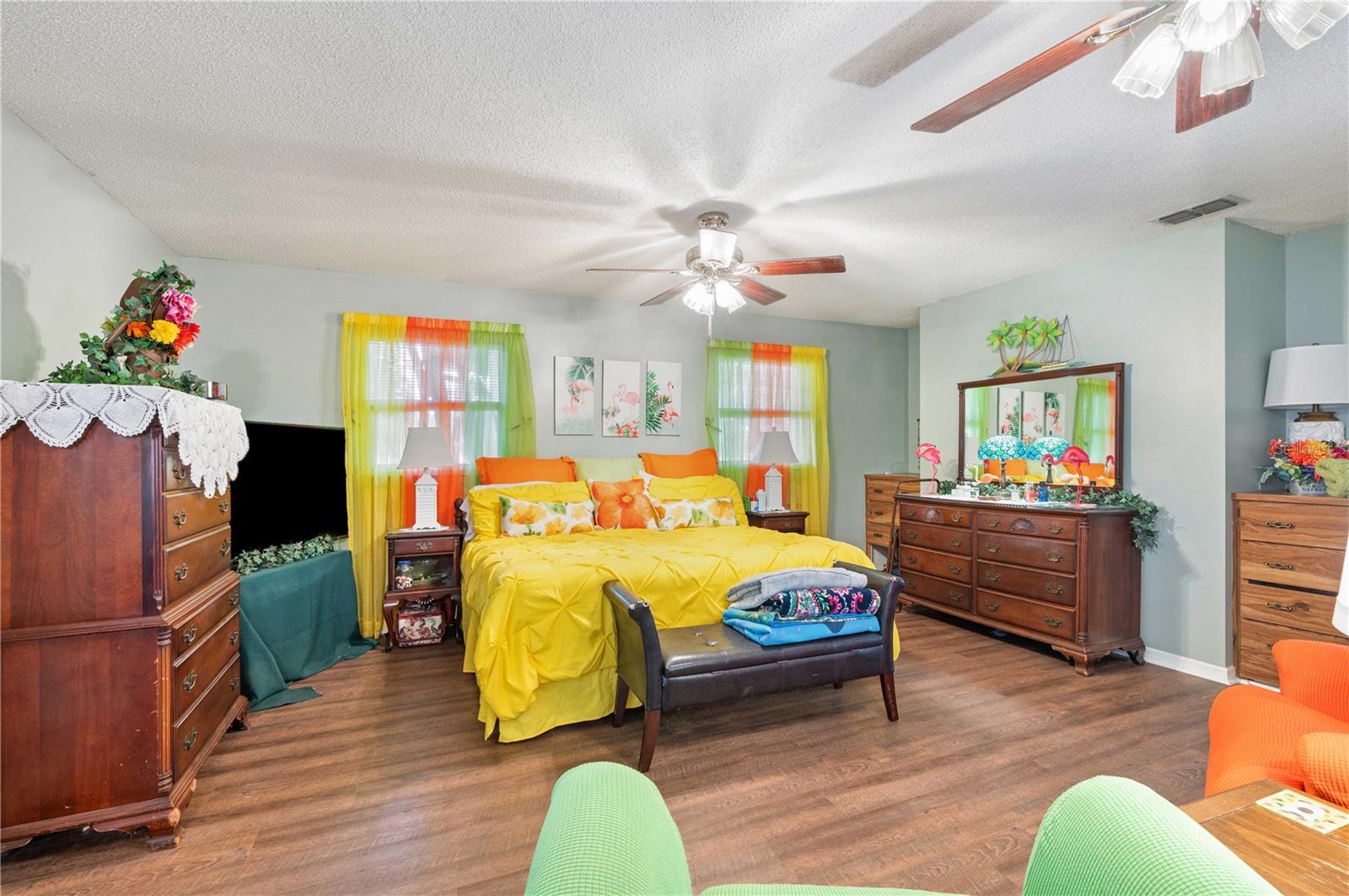Nestled in the heart of Bushnell, this delightful 3-bedroom, 2-bathroom home offers comfortable living on nearly half an acre of beautifully landscaped property. Built in 1982, this 1344 square foot residence features modern laminate flooring and a cozy fireplace, perfect for creating a warm and inviting atmosphere. The expansive master bedroom includes direct access to a huge screened-in porch, providing a serene space to relax and enjoy the outdoors. The front of the home also includes a large covered porch with plenty of room for rocking chairs. This property also boasts a large workshop with tons of space for storage, ensuring you have plenty of room for all of your belongings and a space to be creative.