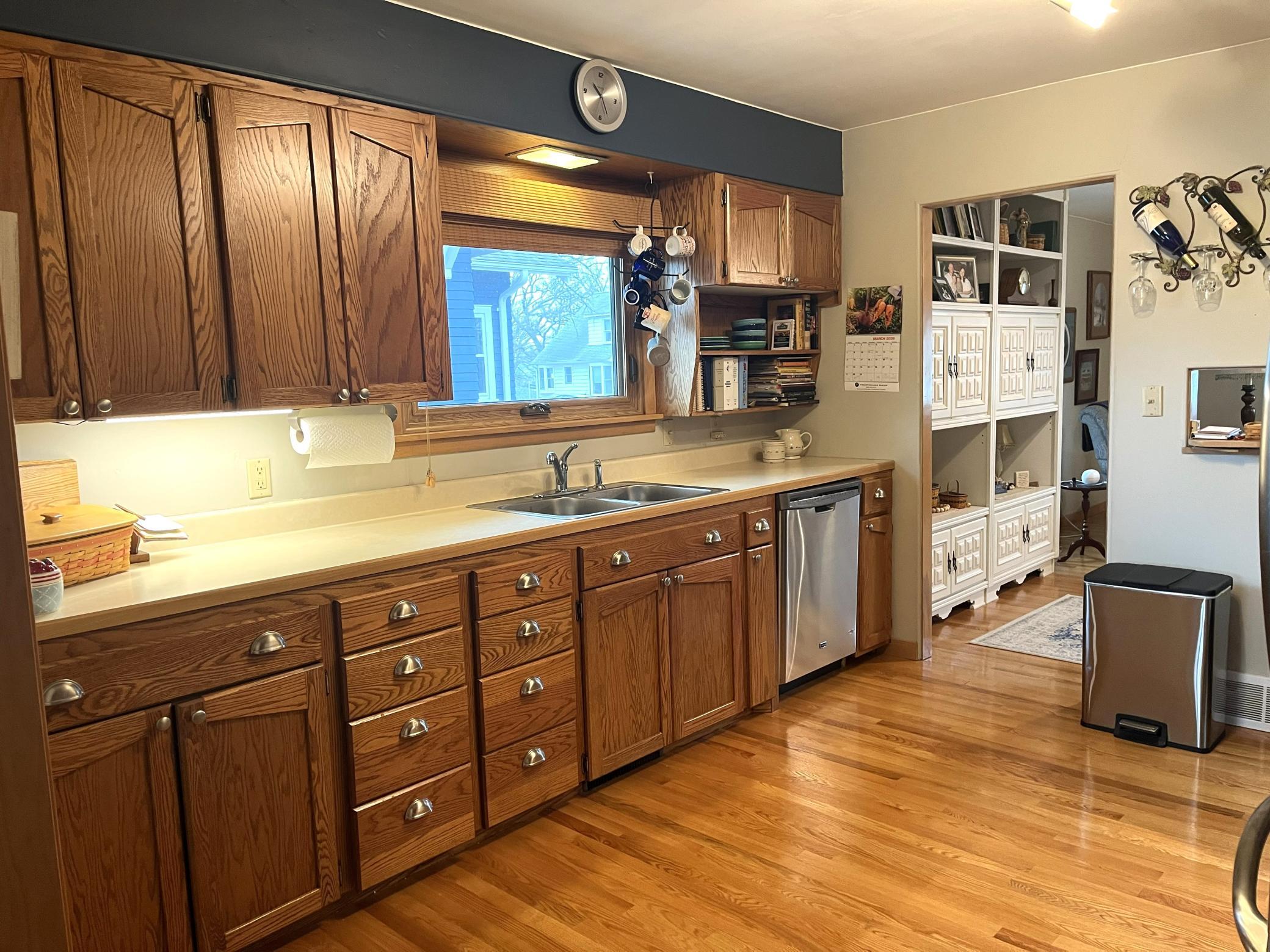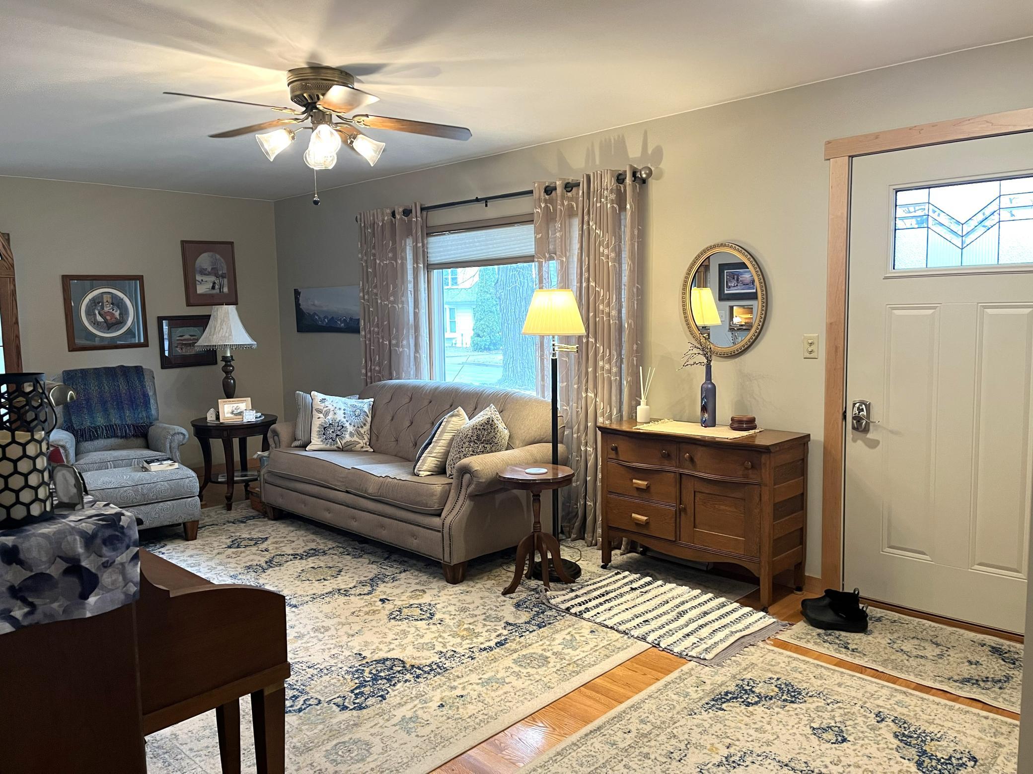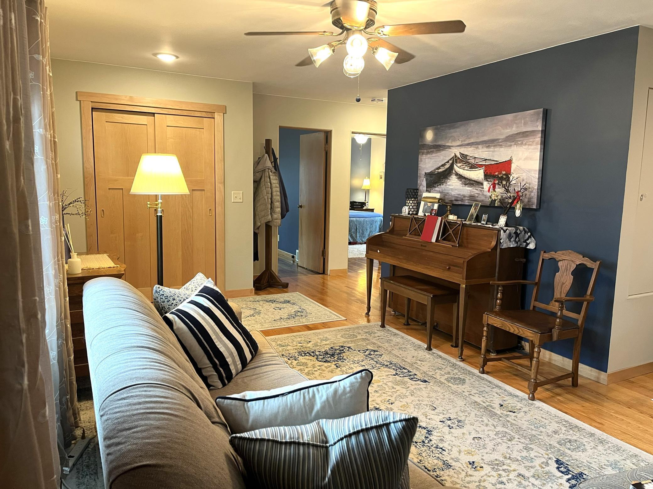 Located right across the street from Budd Lake just a short walk from Gomsrud park. This warm & inviting 2 bedroom 2 bath home has been lovingly maintained and updated. Entering the front door you will note the beautiful hardwood floors, and large living room space. Nice flow into the kitchen & dining room/back den area. Updated cabinetry in kitchen, with many special touches. Main level has two bedrooms, and fully updated full bathroom which includes a stackable laundry set. Head downstairs and find room for additional living space. Basement was tiled, has sump pump, and stays dry. Also downstairs is a 3/4 bathroom, and utility area, with updated furnace (2024). Walk right into your tuck-under attached garage. Additional parking pad out front of the home as well.