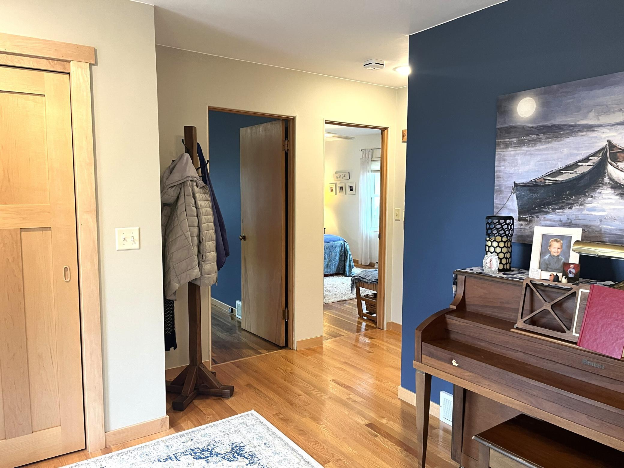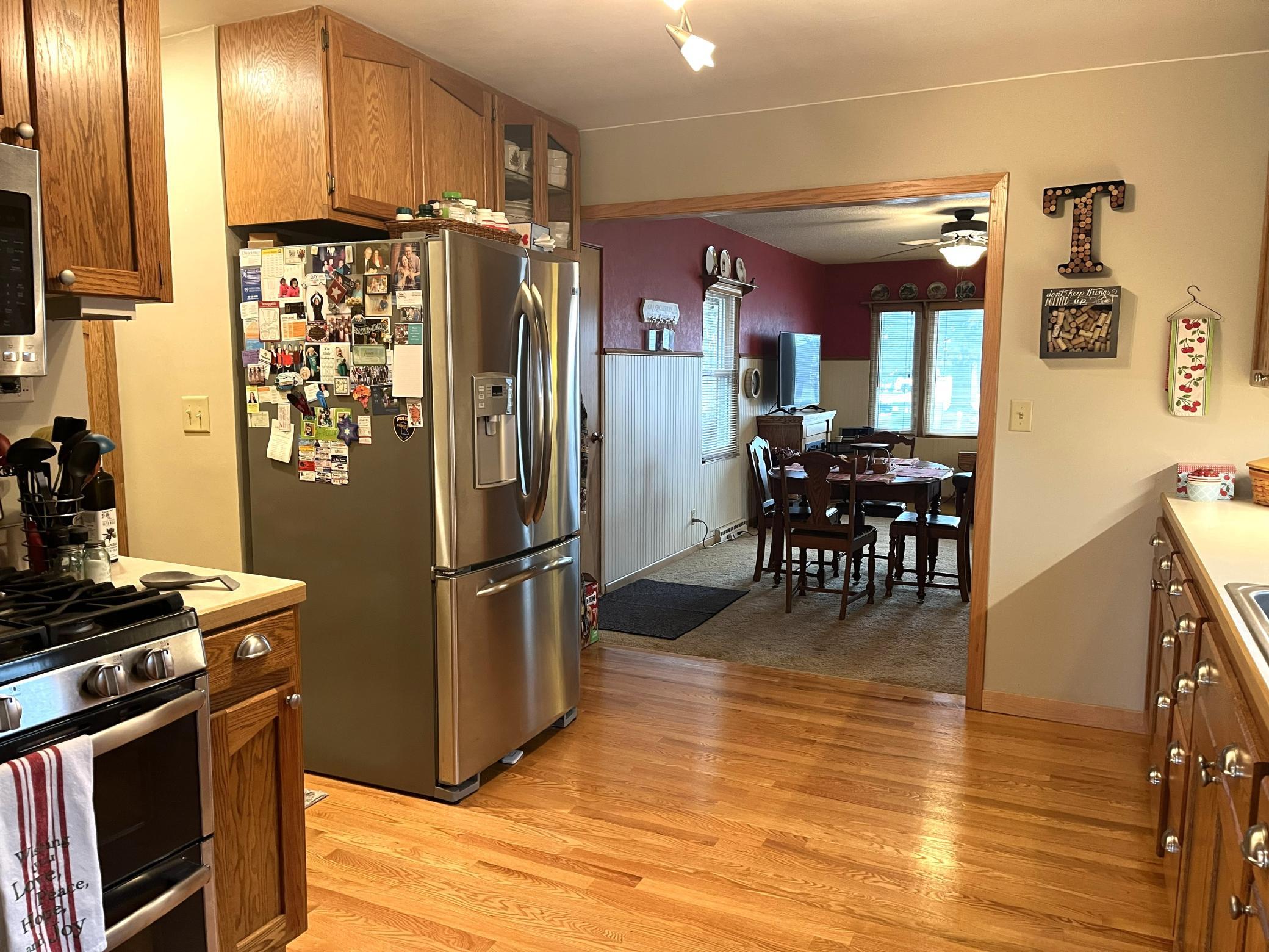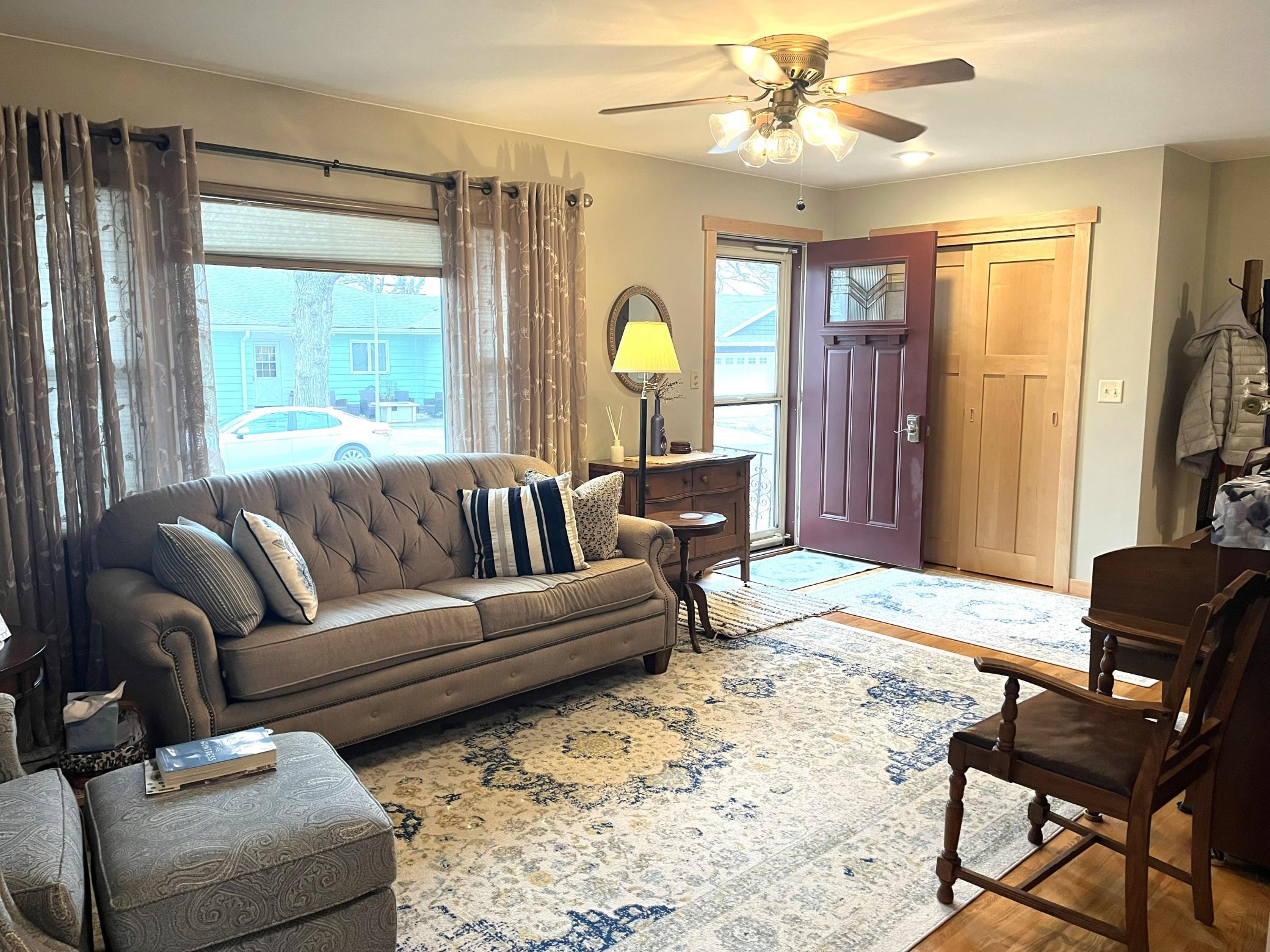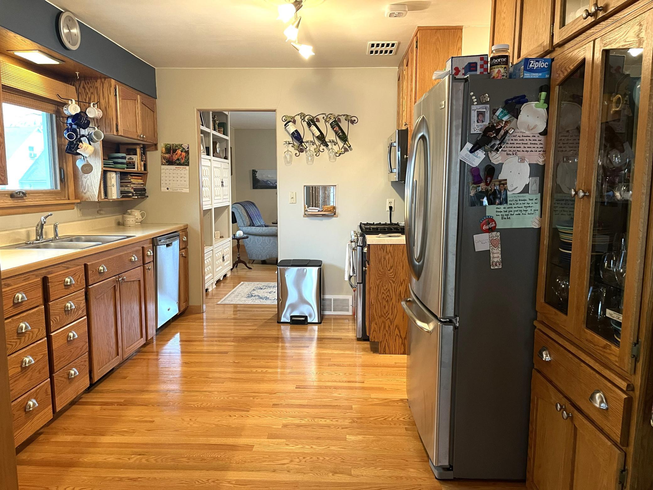 Located right across the street from Budd Lake just a short walk from Gomsrud park. This warm & inviting 2 bedroom 2 bath home has been lovingly maintained and updated. Entering the front door you will note the beautiful hardwood floors, and large living room space. Nice flow into the kitchen & dining room/back den area. Updated cabinetry in kitchen, with many special touches. Main level has two bedrooms, and fully updated full bathroom which includes a stackable laundry set. Head downstairs and find room for additional living space. Basement was tiled, has sump pump, and stays dry. Also downstairs is a 3/4 bathroom, and utility area, with updated furnace (2024). Walk right into your tuck-under attached garage. Additional parking pad out front of the home as well.