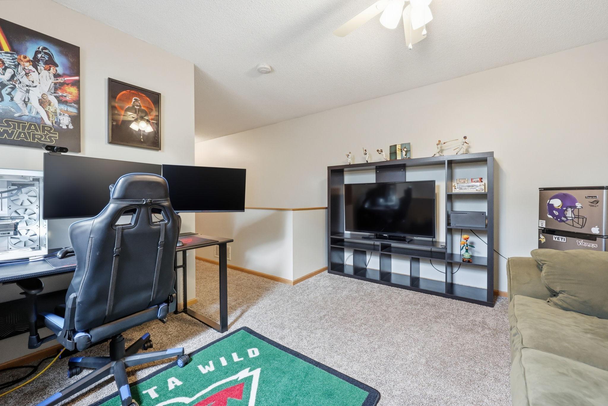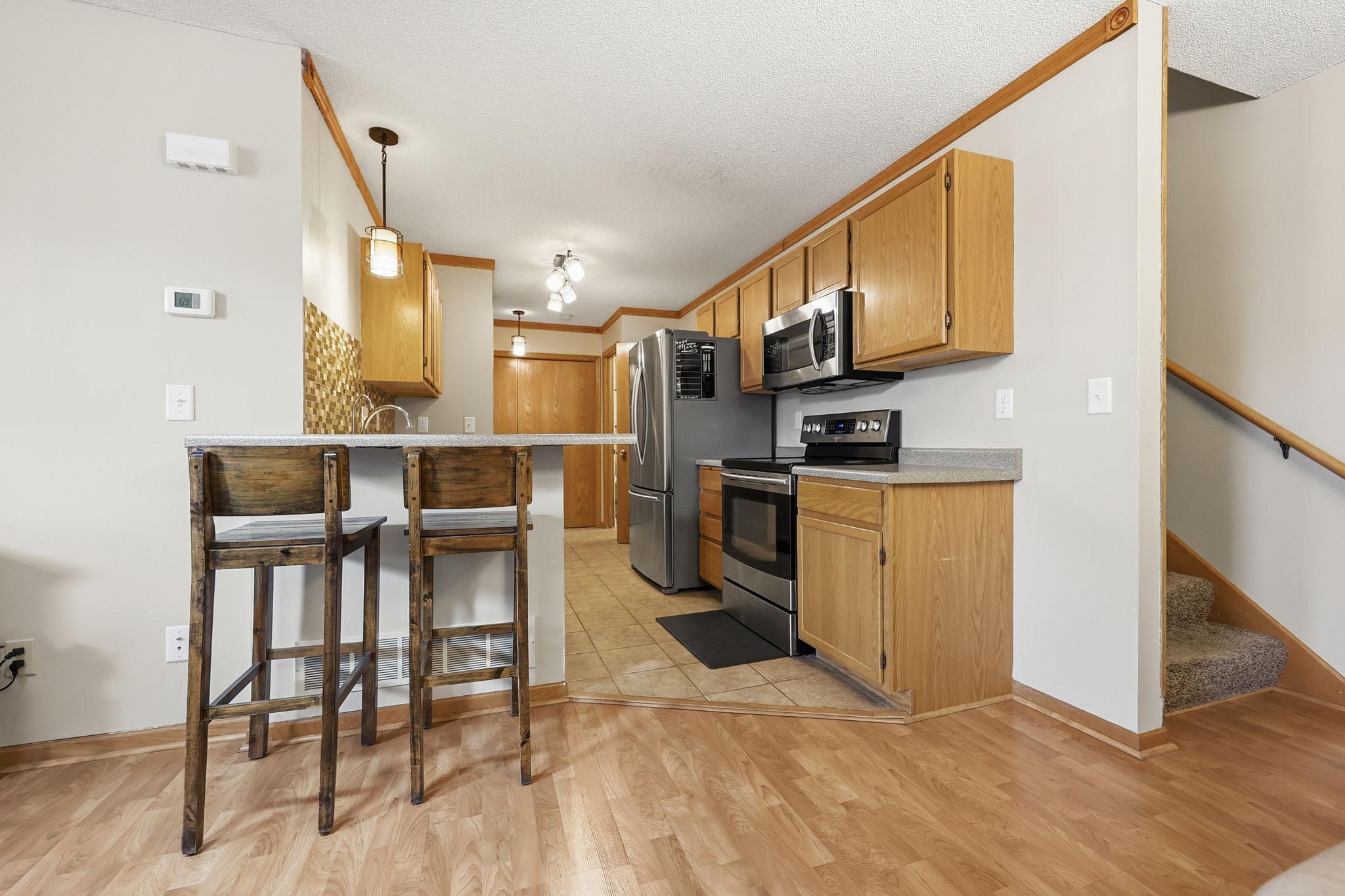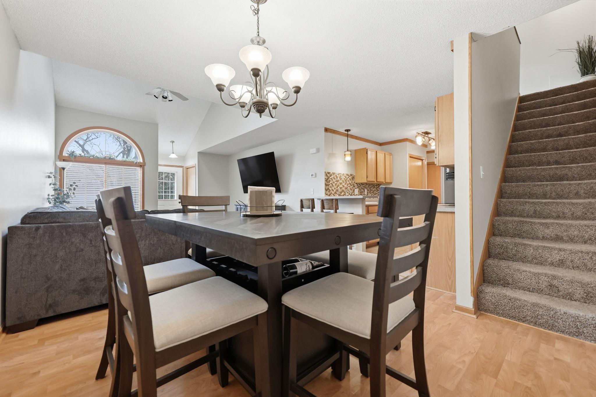 There's No Place Like This Home! Enjoy a kitchen with a functional layout and an abundance of cabinets and food prep space. The pantry offers ample storage, ensuring you have plenty of space to keep organized. The small breakfast bar is perfect for quick meals or a cup of coffee, adding a delightful touch to the space. The high ceilings and expansive windows flood the home with tons of natural light, creating a warm and happy atmosphere. Freshly painted and did I mention a 2 stall heated garage? The versatile loft space adds a touch of flexibility to the layout, allowing you to customize it to suit your lifestyle, whether it's a home office, entertainment area, or a gym. The lower level is a rare find, providing an excellent opportunity for a third bedroom with existing egress or an additional family room. Enjoy evenings relaxing on the front porch as the sun sets. Fantastic Blaine location close to shopping, restaurants, trails, parks and easy highway access! Be sure to add this one to your list! Lastly, some of the updated mechanicals include: new AC installed in 2025, water heater in 2024, ~7 years on the roof, furnace in 2017.