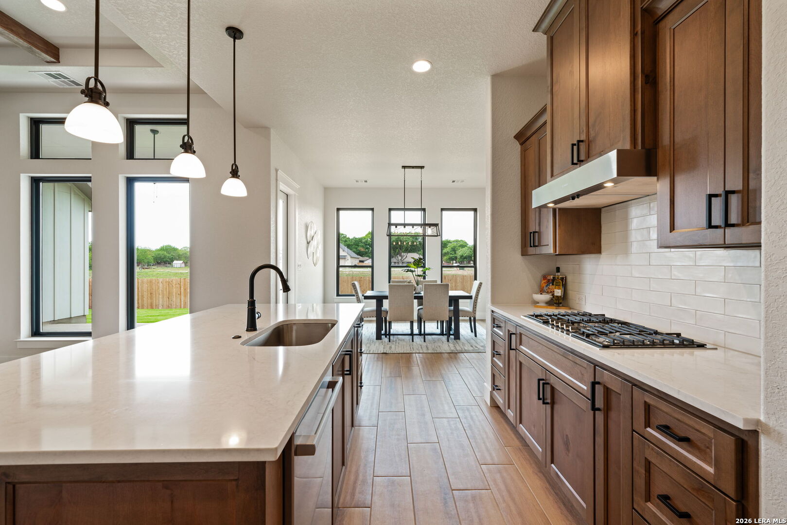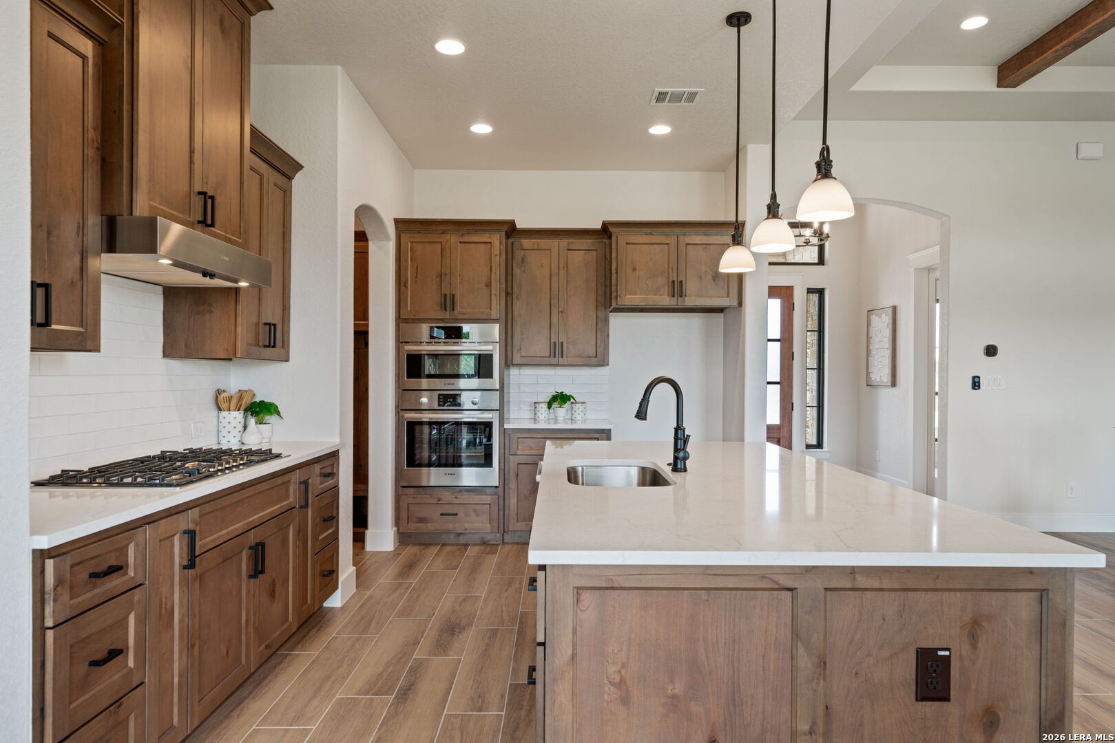 Welcome to luxury living at its finest in the serene and highly sought-after Country Village Estates of charming Castroville, Texas. This newly constructed custom residence by the esteemed Etter Custom Homes is a true showcase of superior craftsmanship, timeless design, and modern comfort. From the moment you step inside, you are welcomed by an atmosphere of sophistication and warmth. Impressive 8-foot shaker-style solid core doors, soaring ceilings, custom wood beam accents, and elegant judge s paneling and shiplap wall treatments create a refined yet inviting aesthetic throughout the home. At the heart of the residence is a stunning chef s kitchen thoughtfully designed to combine beauty and functionality. Outfitted with upgraded stainless steel Bosch appliances, this space features meticulously crafted custom cabinetry with dovetail drawers, hidden hinges, soft-close doors, convenient pull-out racks, and bespoke pantry cabinets that provide exceptional storage while maintaining a sleek, upscale look. The kitchen flows effortlessly into the spacious dining area and expansive living room, where a dramatic full-height stone fireplace serves as a striking focal point, making the home ideal for both entertaining guests and enjoying quiet evenings in. The private primary suite is a true retreat, offering a peaceful escape at the end of the day. The spa-inspired primary bath is equally impressive, featuring a freestanding oval soaking tub, separate vanities, and upgraded designer fixtures that blend luxury with everyday convenience. Adding to the home s versatility is a thoughtfully designed flex space with endless possibilities such as a 4th bedroom. Outside, the home continues to impress with inviting outdoor living spaces, including a spacious covered patio and a welcoming front porch, both perfect for relaxing, entertaining, and enjoying the peace and privacy of this prestigious community. This is more than just a home-it is a statement of quality, elegance, and thoughtful design in one of Castroville s most desirable neighborhoods.