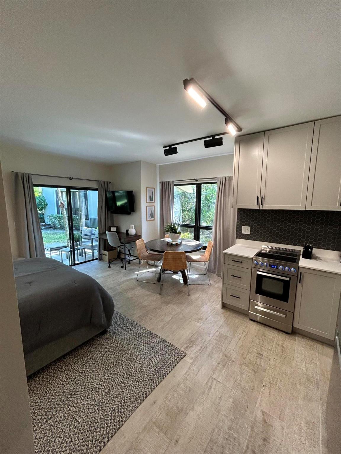 This one of a kind studio was recently renovated. It has a fully equipped kitchen with all utensils and a full size refridgerator. It also has custom lighting and sonos speakers. The Rent INCLUDES : Water, Electric and WiFI