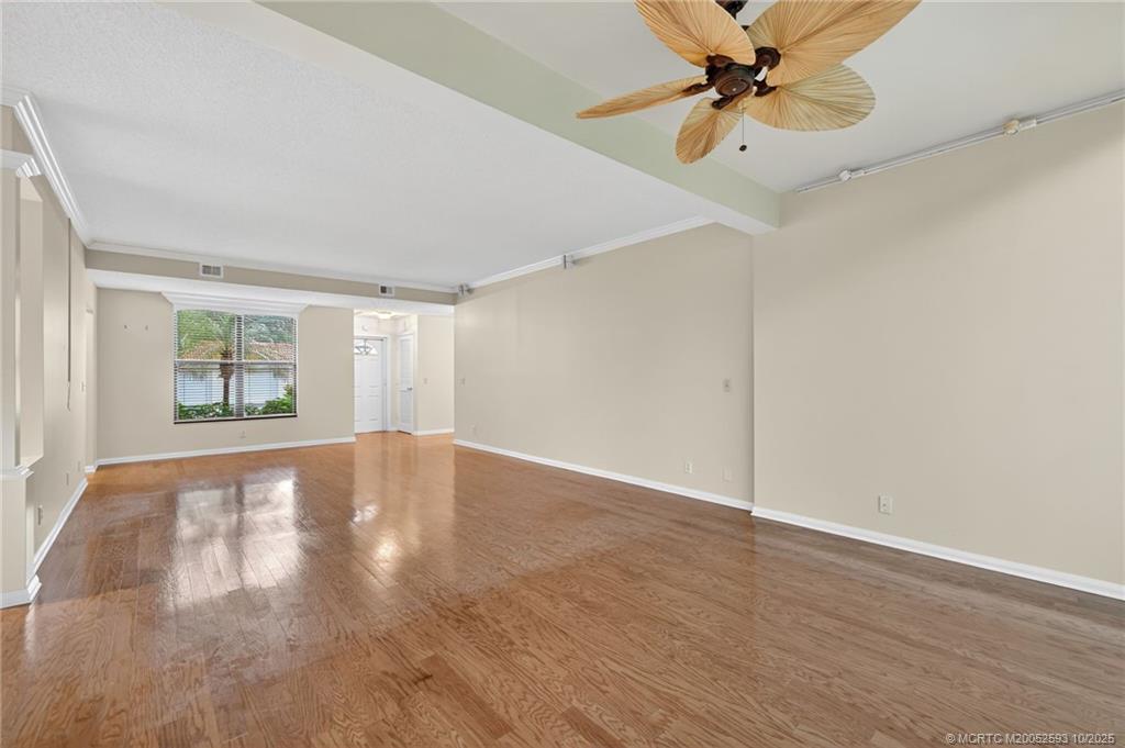 Beautifully renovated first-floor condo in Palmetto Village with peaceful golf course views. This 2-bedroom, 2-bath home features a bright living area that opens to an enclosed Florida room with wood flooring. The updated kitchen boasts stainless steel appliances, granite countertops, custom cabinetry, and a large island. Bathrooms include modern vanities and lighting, and impact windows are installed throughout (except Florida room sliders). Steps to the village pool and golf cart storage. Harbour Ridge is a private, mandatory membership community offering two 18-hole golf courses, 9 Har-Tru tennis courts, pickleball, fitness center with pool, waterfront clubhouse with dining, 2-mile riverfront path, yacht club, and marina. $125,000 joining fee due at closing; monthly HOA includes Club Dues, Trail Fees, POA, Village HOA, Capital Funds, and taxes.