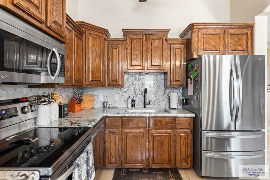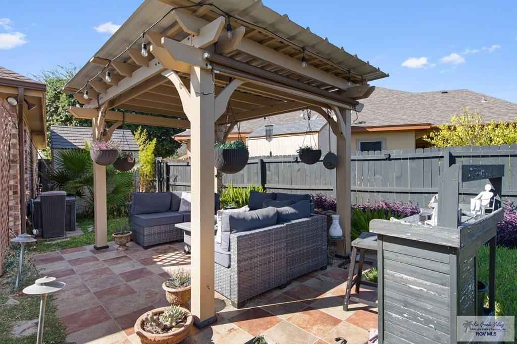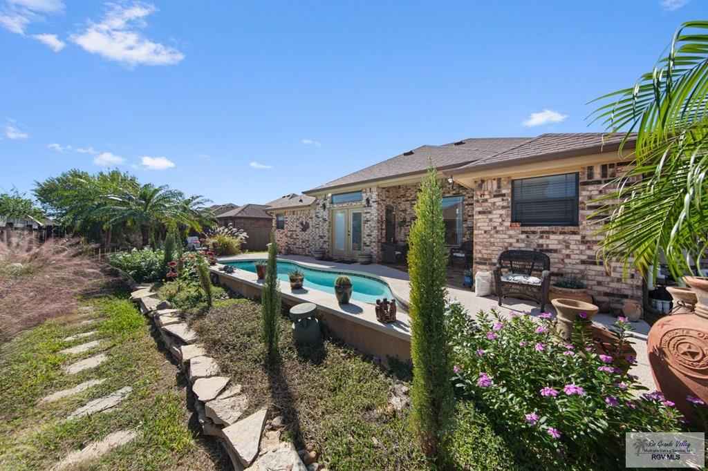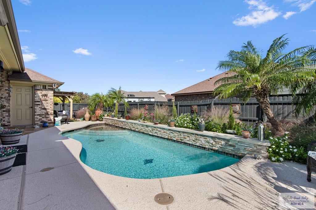 Welcome to this custom-built home featuring a sparkling saltwater pool and beautiful curb appeal. As you enter, you're greeted by a decorative pan ceiling and a modern open floor plan that creates a warm and welcoming atmosphere.The home also includes a built-in sound system both inside and out, perfect for everyday enjoyment & entertaining. The kitchen offers custom cabinets with pull-out shelves for all your storage needs, along with a breakfast nook, a pantry and new granite countertops. From the living room, you will enjoy views of the pool, adding a relaxing backdrop to your everyday living.The master bedroom is spacious.Step outside and enjoy your sparkling saltwater pool, complete with a waterfall feature and a pergola equipped with electricity, ideal for entertaining guests. Both the front and backyard feature lush landscaping, and the property includes a sprinkler system and two water metersone for the home and one dedicated to the pool.The Sonos system wil pass with the sale