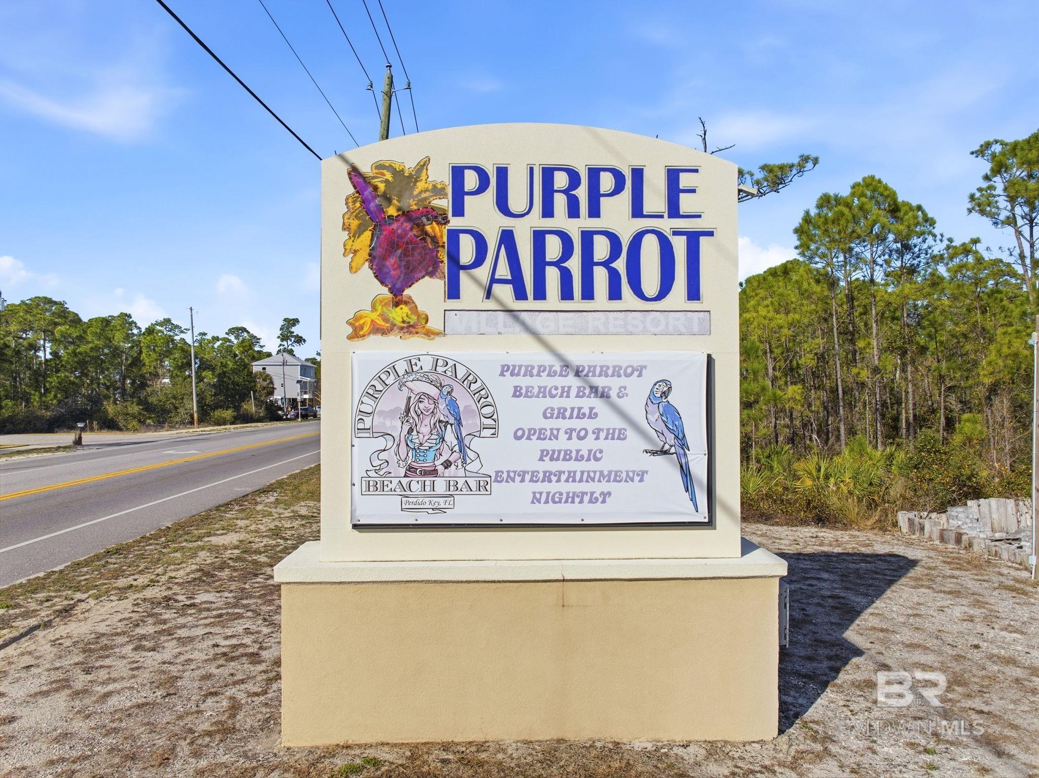 Great opportunity to own a one-bedroom, upstairs condominium in the gated community of Purple Parrot. Whether you are searching for a smart investment or a place to enjoy part time or full time coastal living, this condo at Purple Parrot offers an inviting opportunity on Perdido Key. Discover paradise inside a gated island resort community, where this residence delivers both comfort & flexibility for owners and guests alike. The interior is move in ready with tasteful furnishings, stainless steel appliances, sleek flat screen TVs, and a relaxed coastal feel that makes it easy to settle in and unwind. A 2023 HVAC system provides added peace of mind, while a new front load washer installed in 2025 makes everyday living and laundry a breeze. Ownership at Purple Parrot comes with access to resort style amenities that truly set it apart. Enjoy a heated indoor pool for year round use, multiple hot tubs, saunas, and a well equipped fitness center. The centerpiece of the community is the impressive 5,000 square foot free form outdoor pool complete with a swim up tiki bar, waterfall, and winding stream, creating a vacation atmosphere every day. All of this is just minutes from the Gulf, sugar white sand beaches, and the Gulf Islands National Seashore. From rental income potential ranging from $26,385-$38,500 to laid back island living, this condo offers a lifestyle that feels like a getaway whenever you arrive. Schedule your showing today and experience Purple Parrot ownership for yourself. Buyer to verify all information during due diligence.
